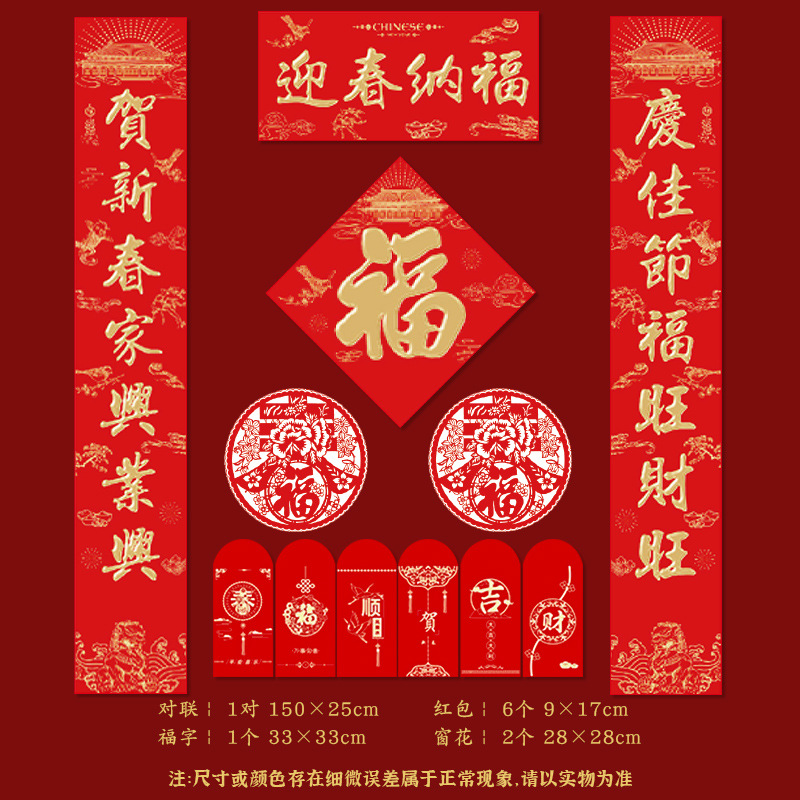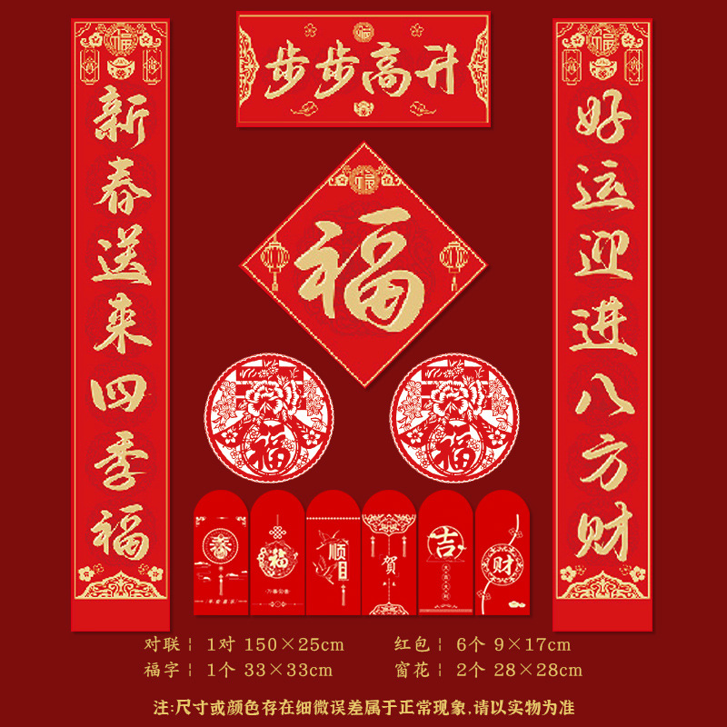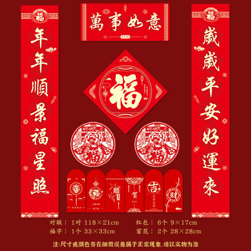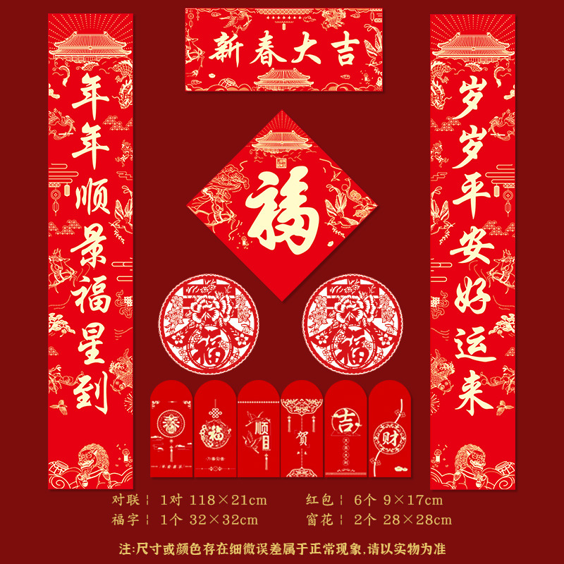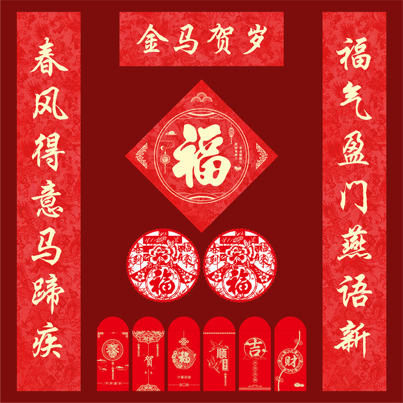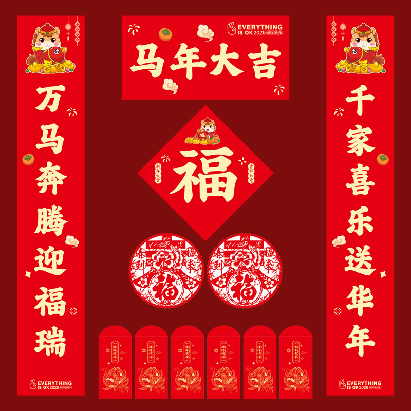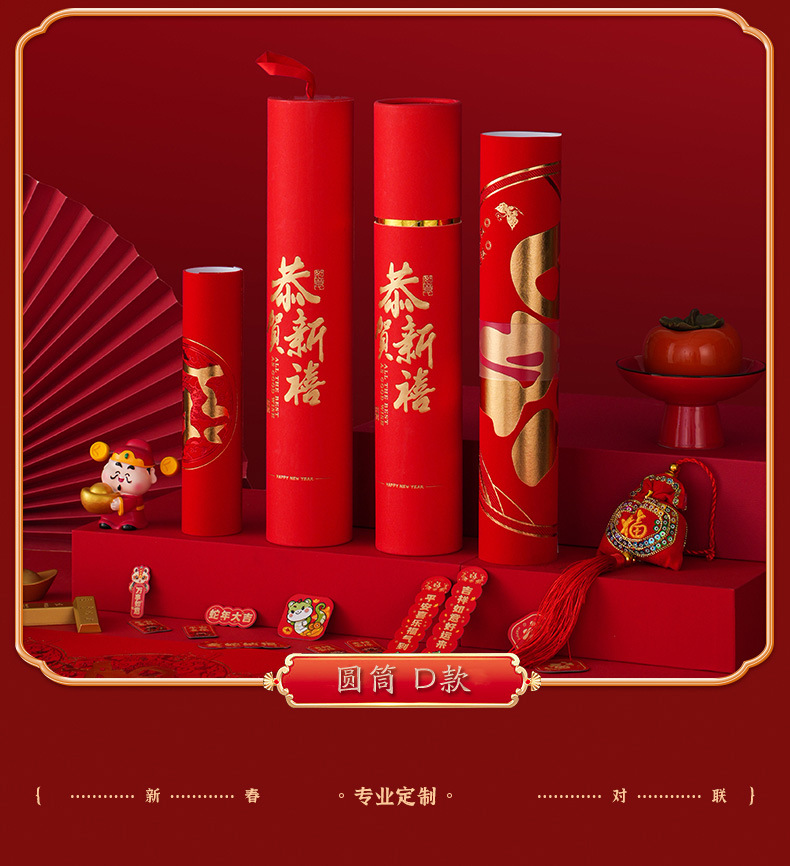 2026植绒对联定制马年防晒烫金礼盒春节礼包套装丝绸春联定做logo