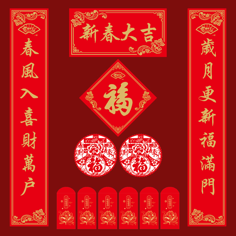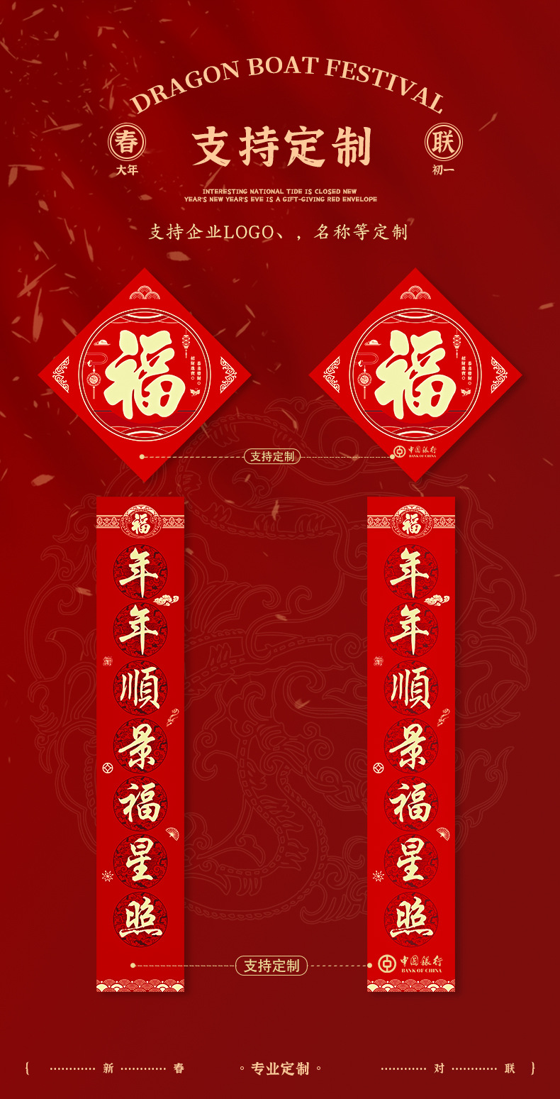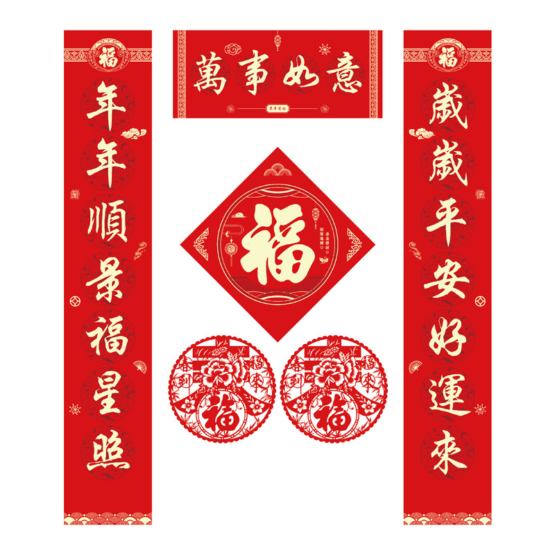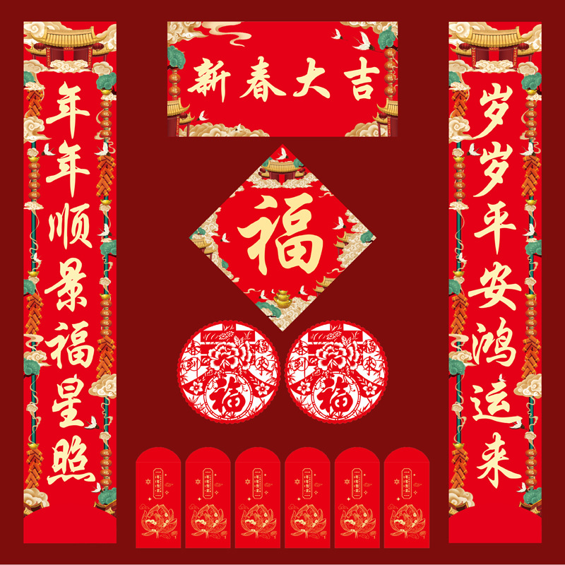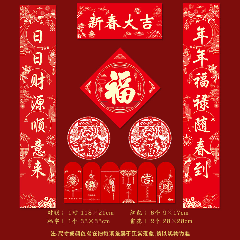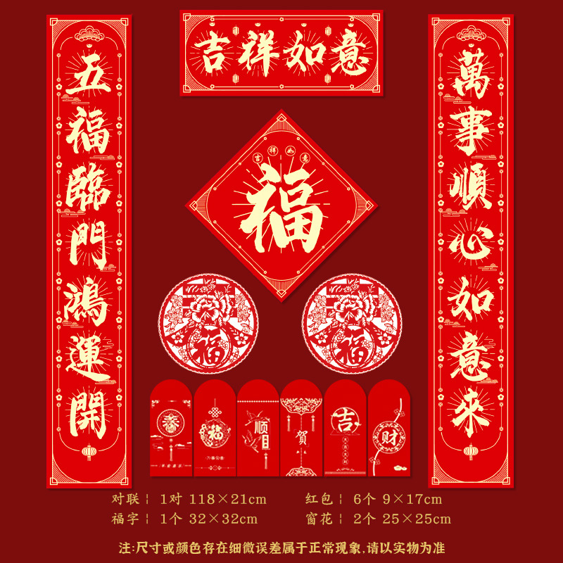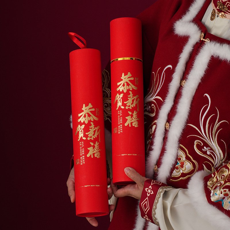 2026植绒对联定制马年防晒烫金礼盒春节礼包套装丝绸春联定做logo