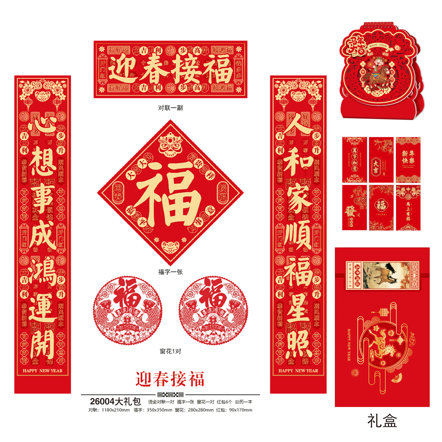 春节对联广告烫金印做创意新年春联配礼盒制定银行保险珠宝大礼包