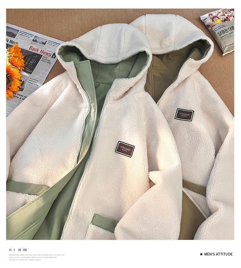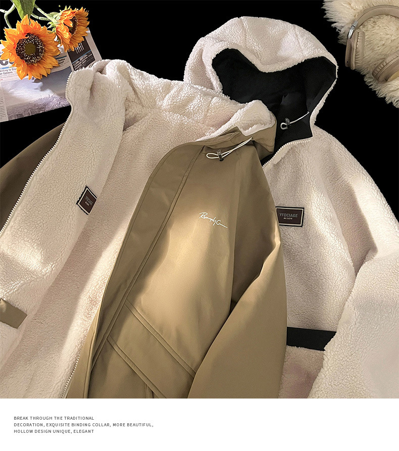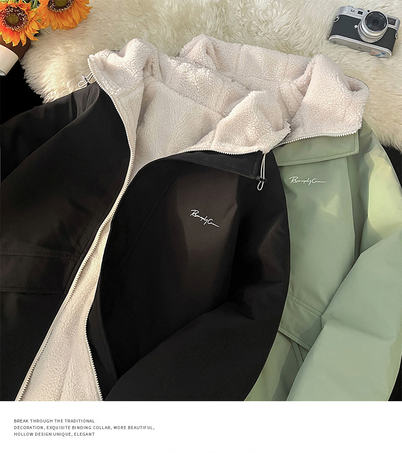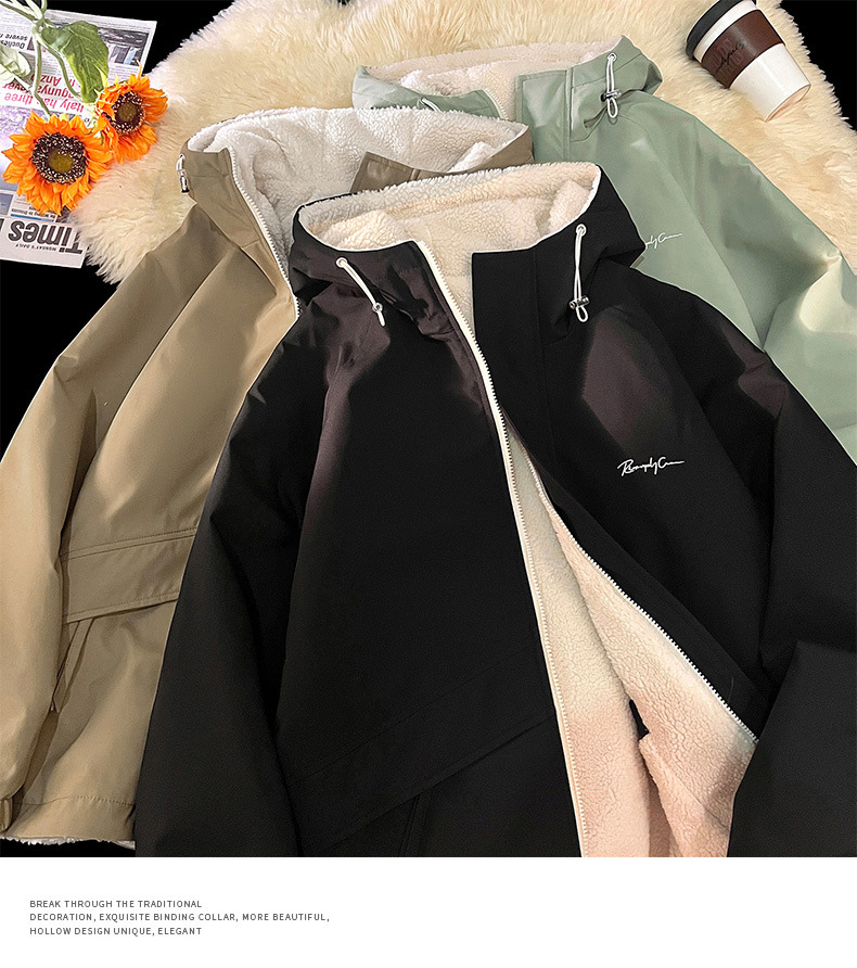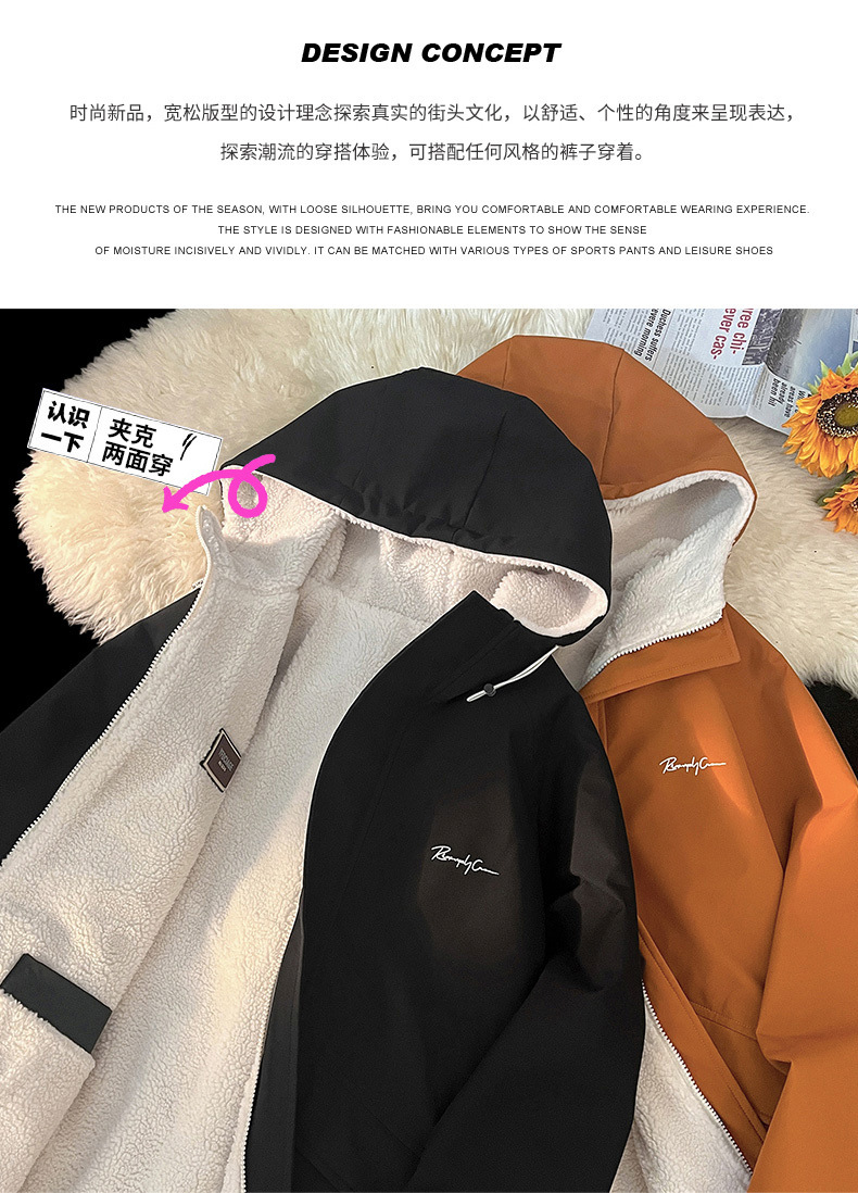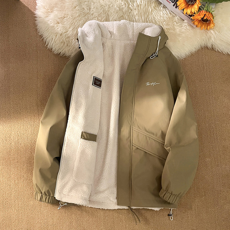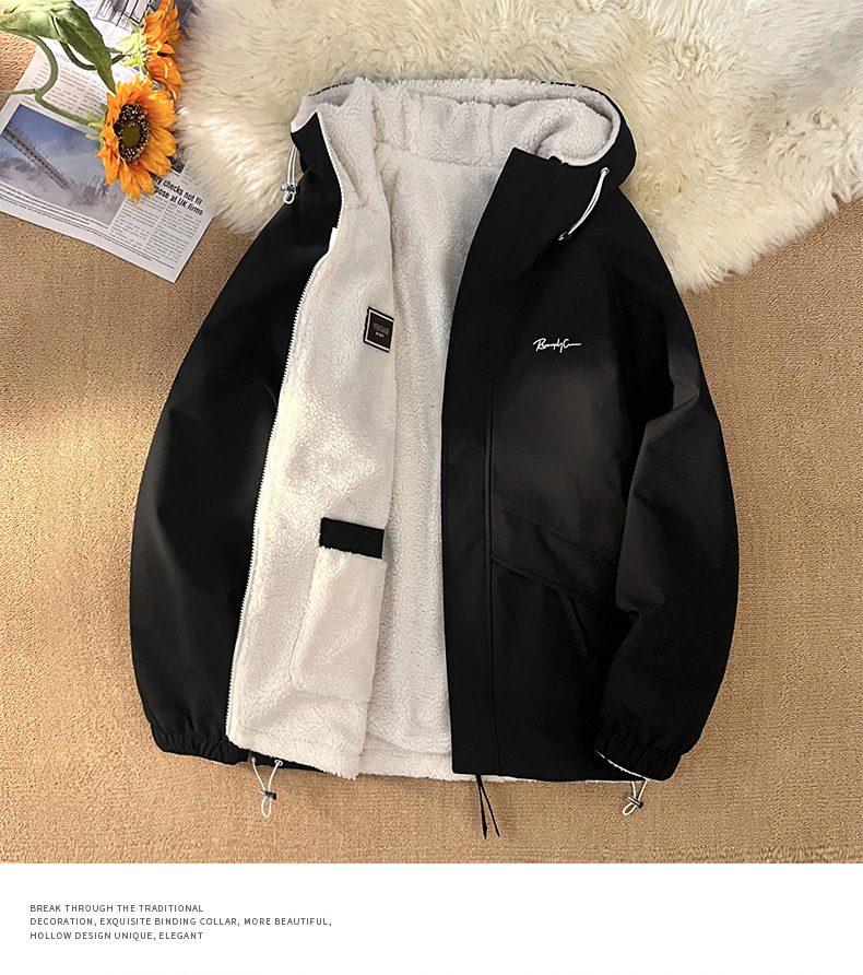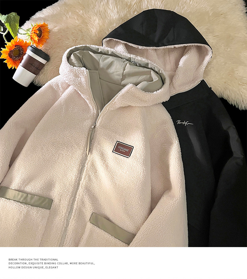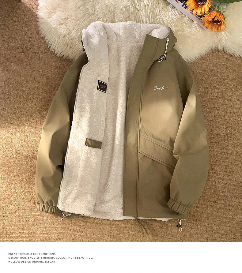2025新款两面穿棉服外套男士冬季加绒厚款棉袄连帽羊羔绒男款棉衣