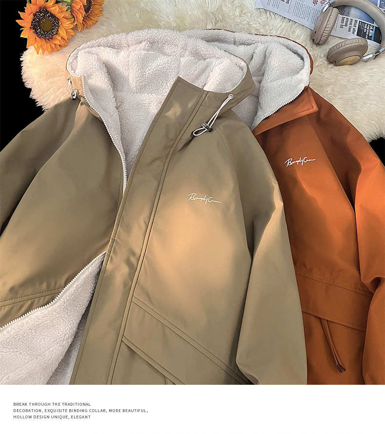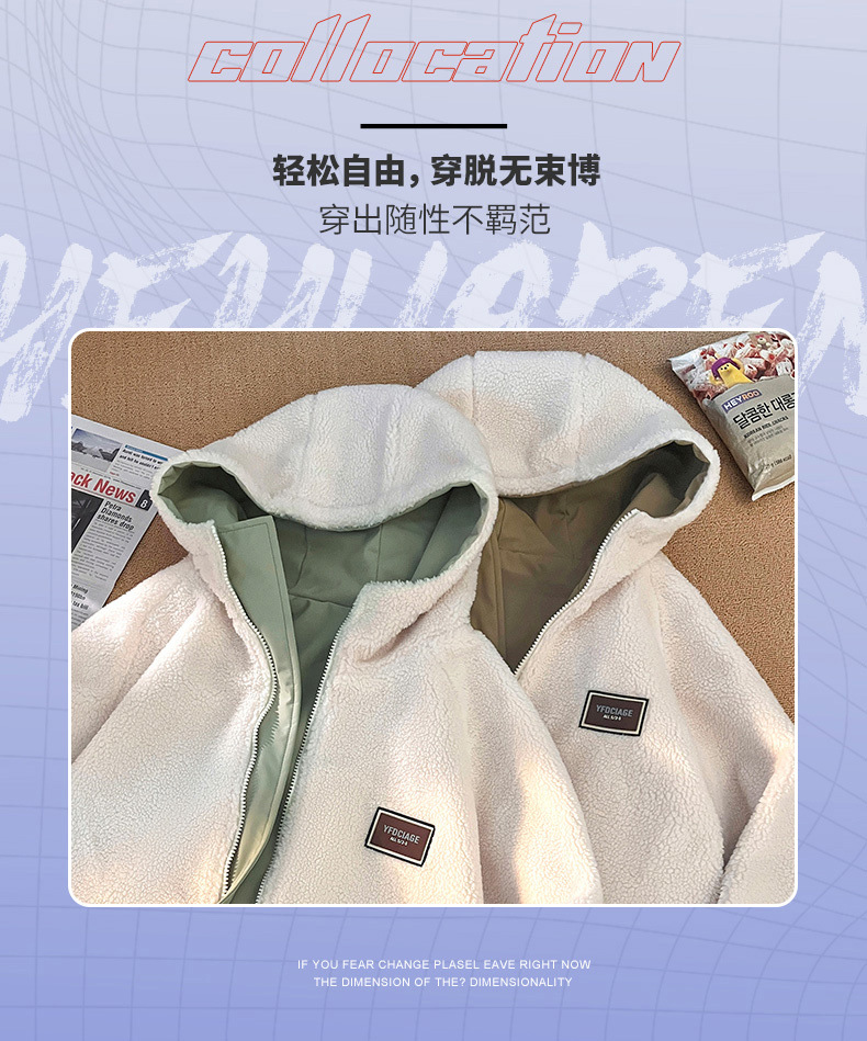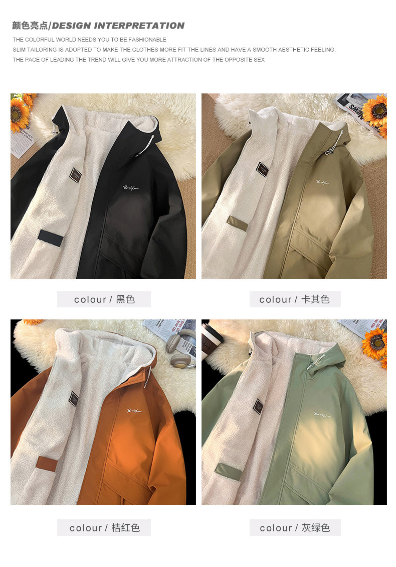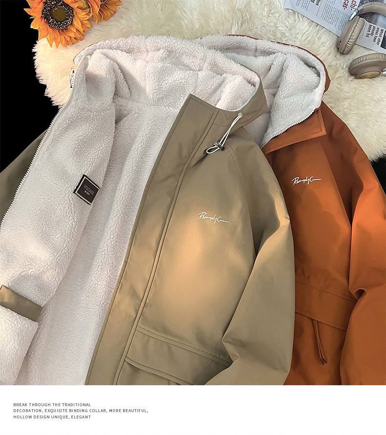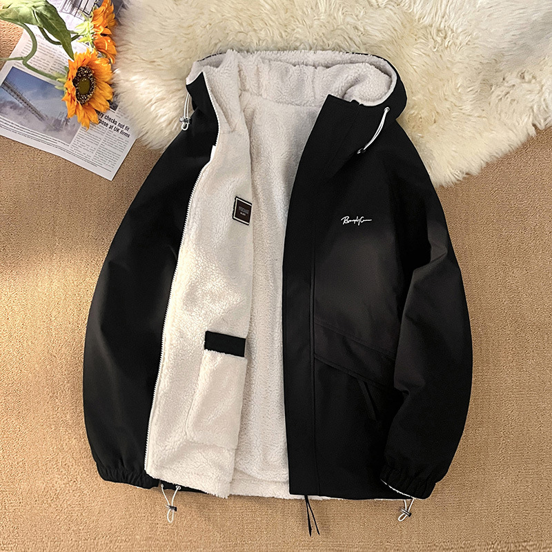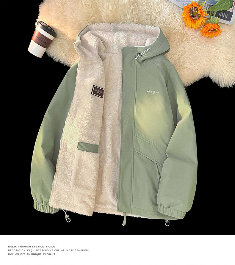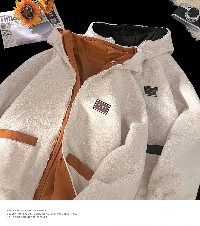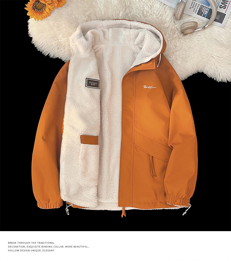 2025新款两面穿棉服外套男士冬季加绒厚款棉袄连帽羊羔绒男款棉衣