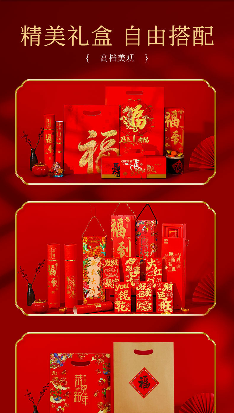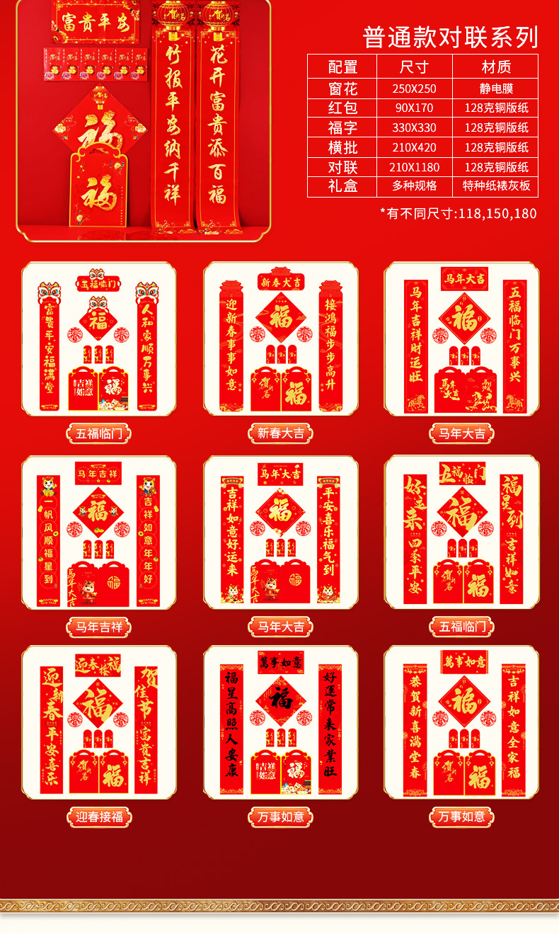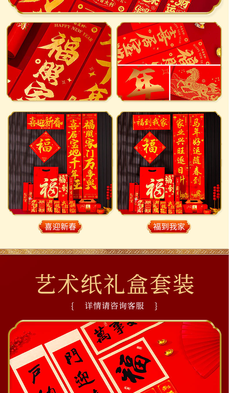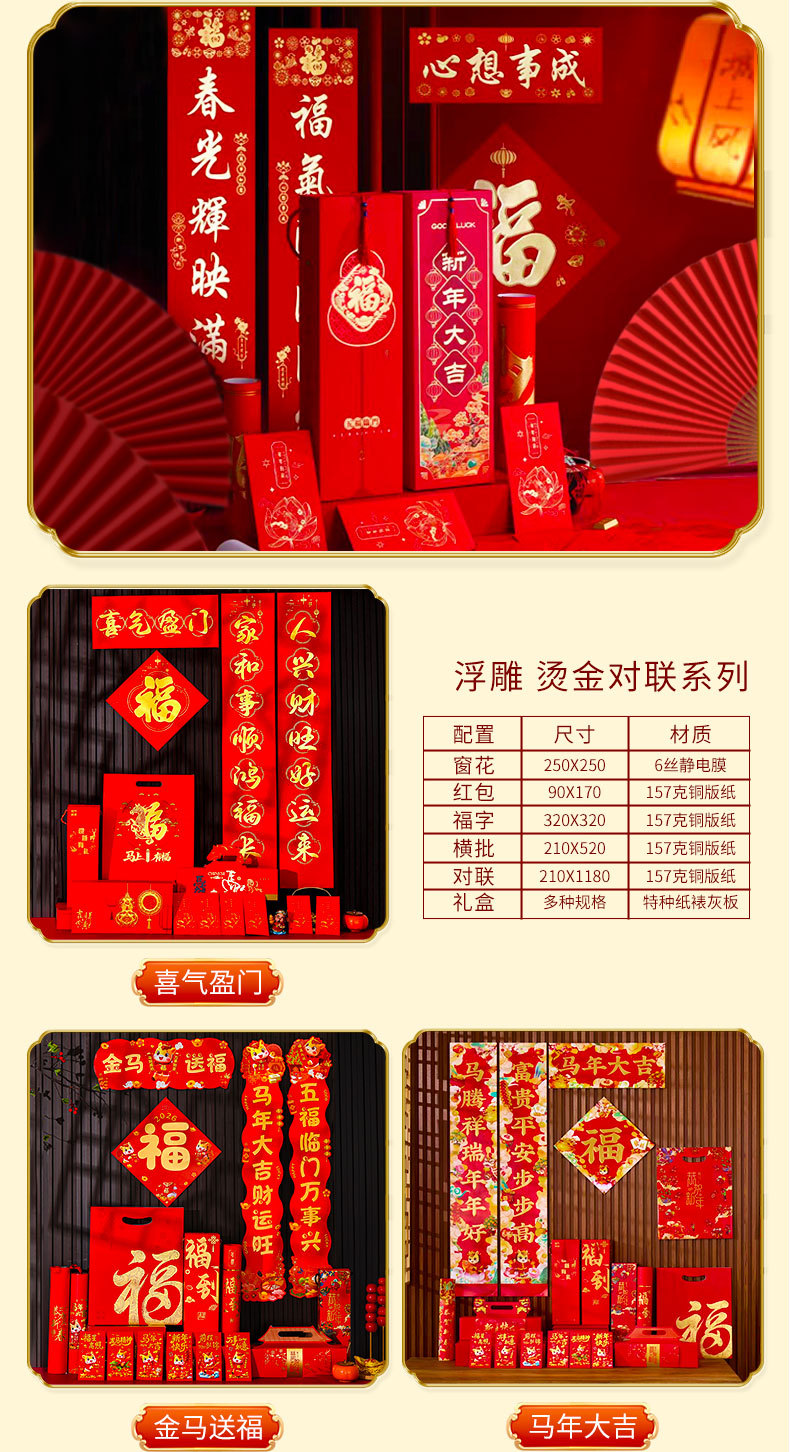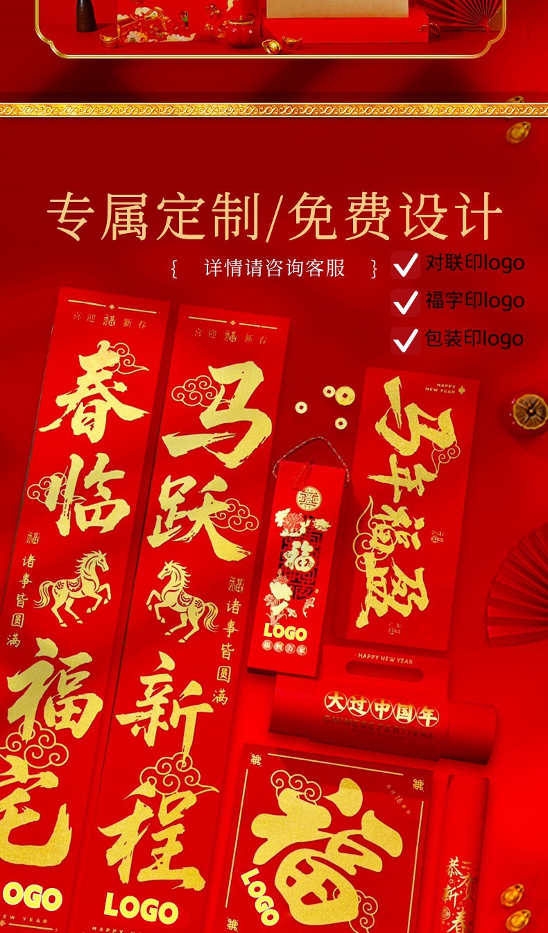 2026马年广告对联定制礼盒烫金专版春联福字套装批发可印企业LOGO