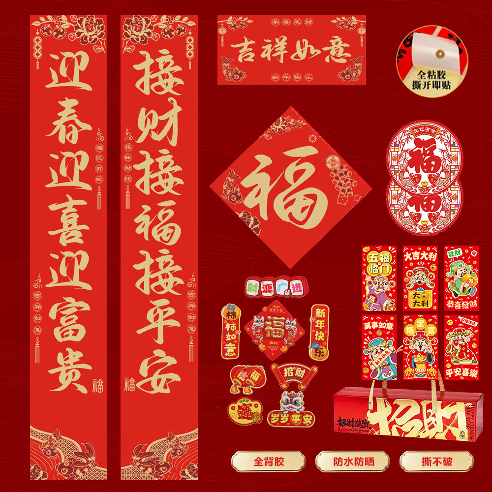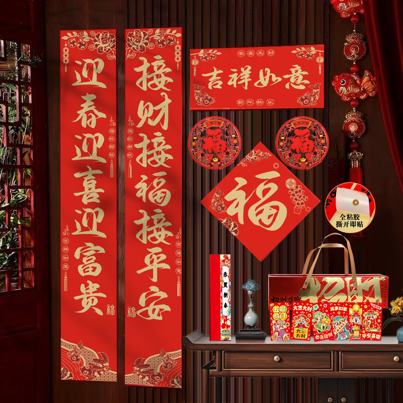 2026马年春联春节对联批发年货大礼包烫金加印LOGO对联套装礼盒
