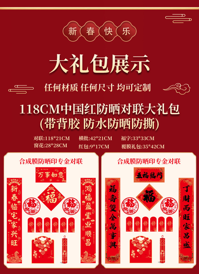 烫金春联对联定制广告logo银行保险房地产宣传年货大礼包专版印刷