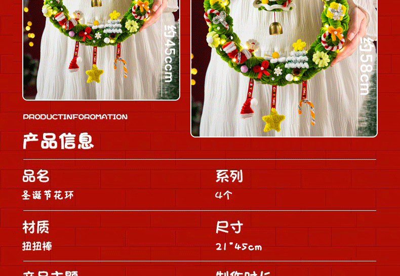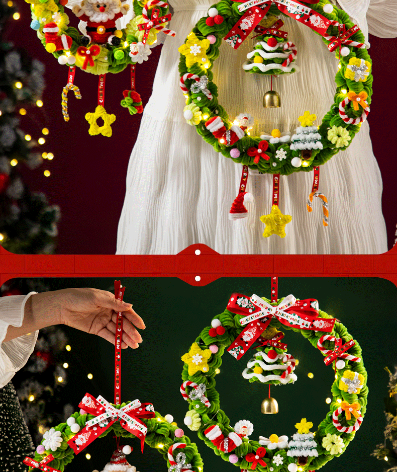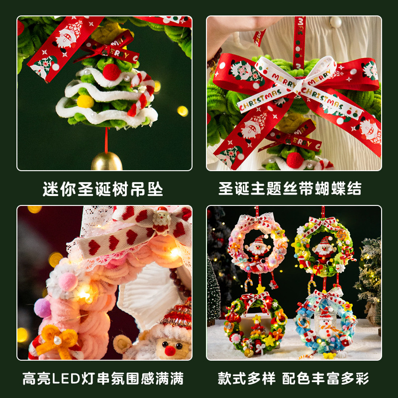 扭扭棒圣诞花环发光挂件装饰挂饰圣诞树手工diy材料包小礼物品
