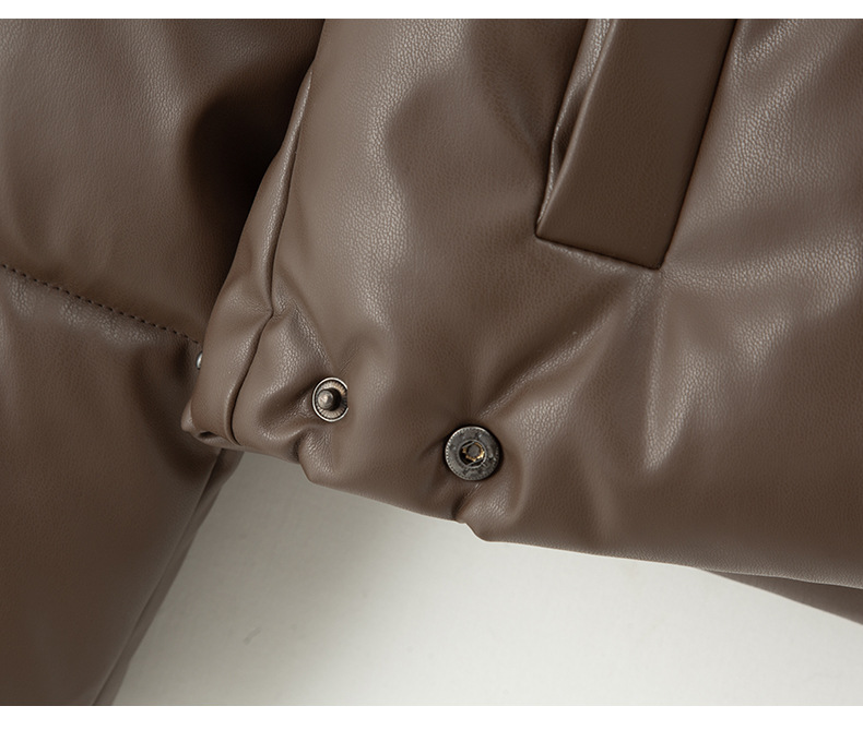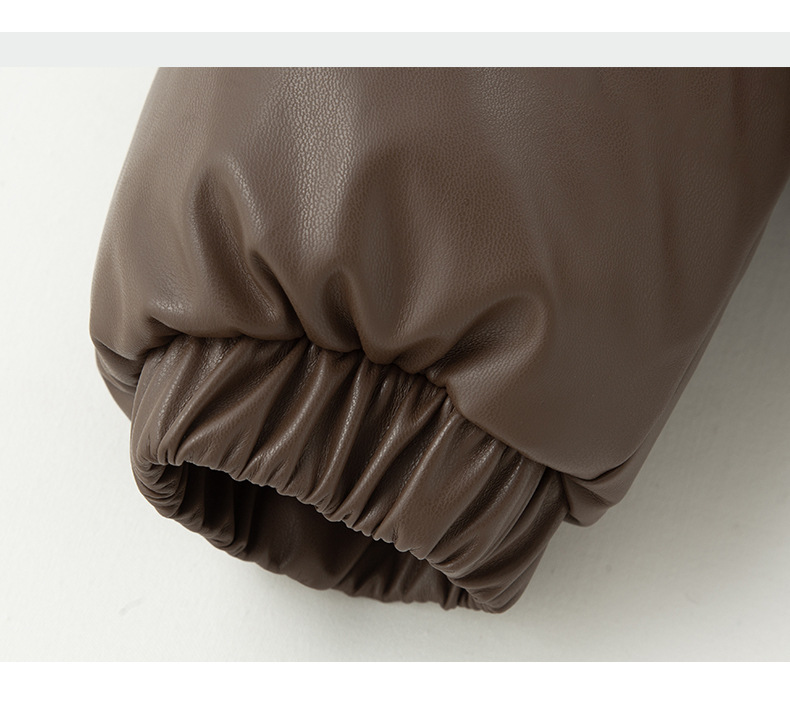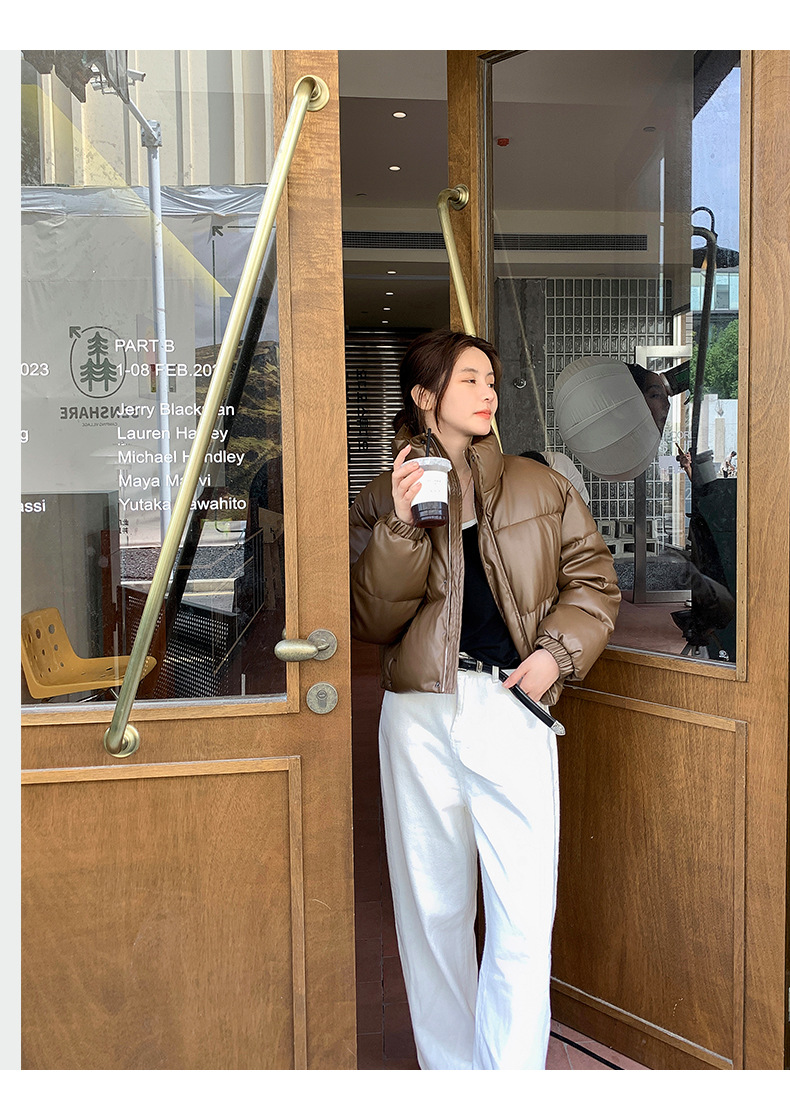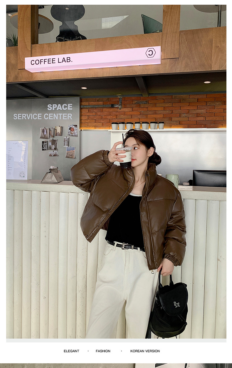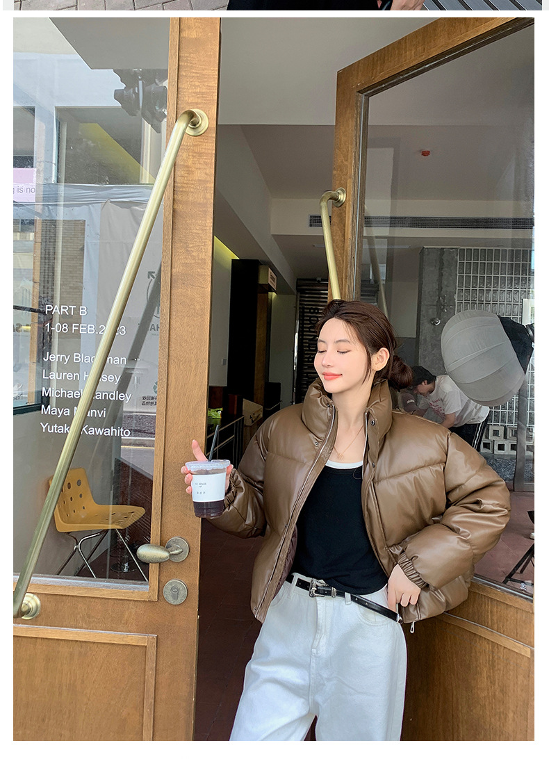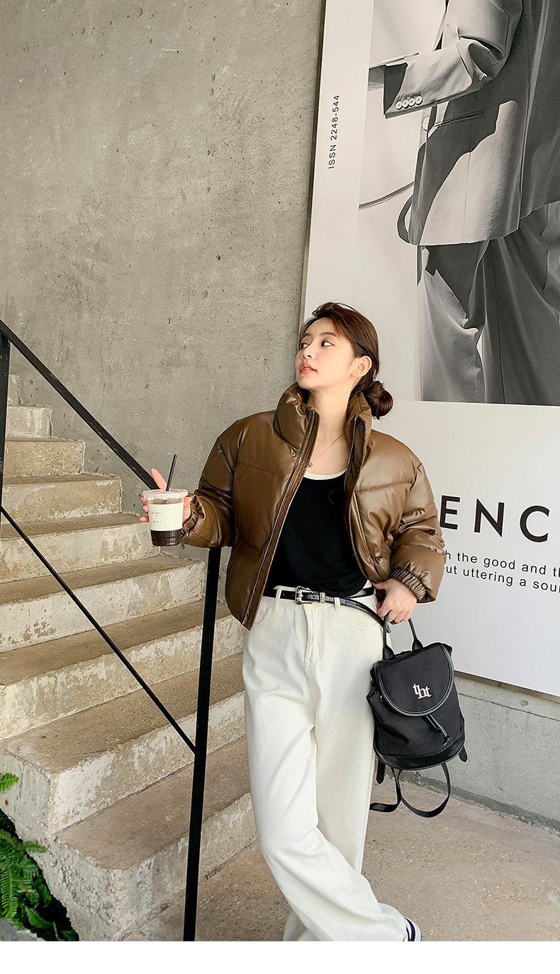 中欧美新短款2024小个子立领羽绒棉服女PU皮加厚棉袄棉衣外套潮流