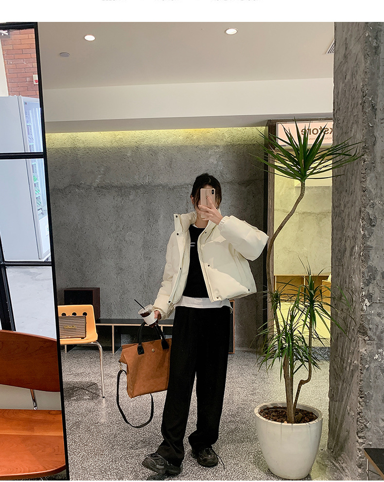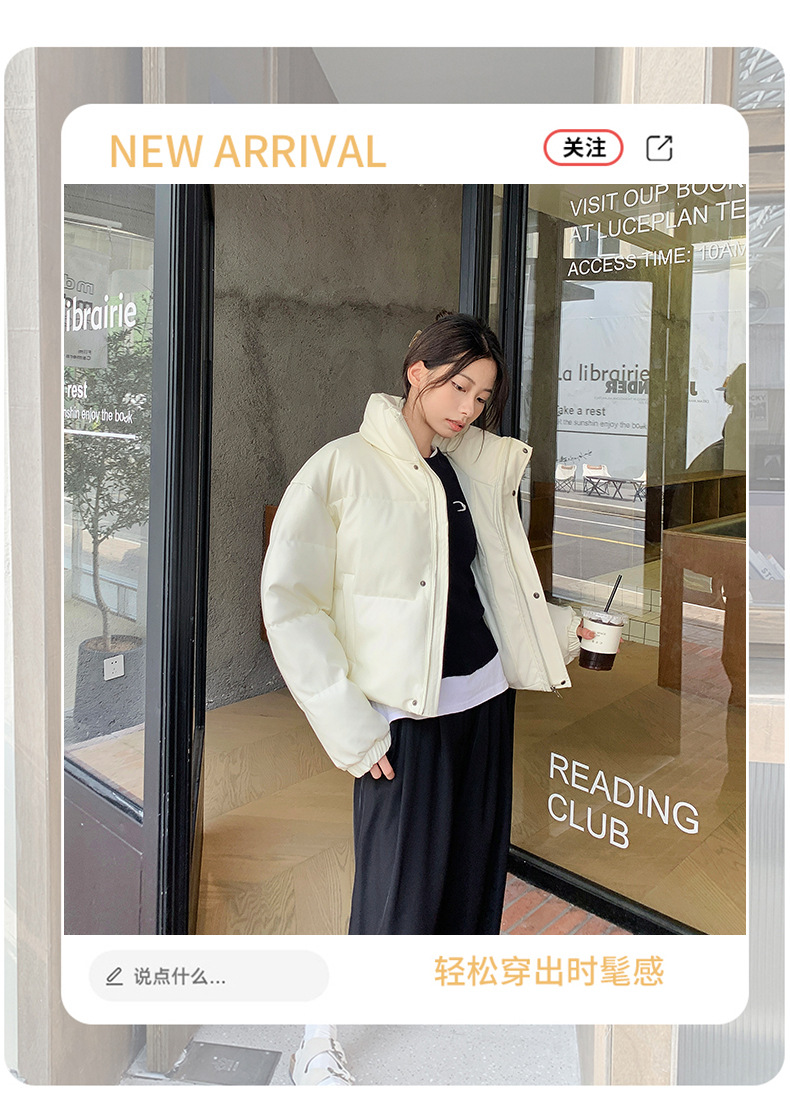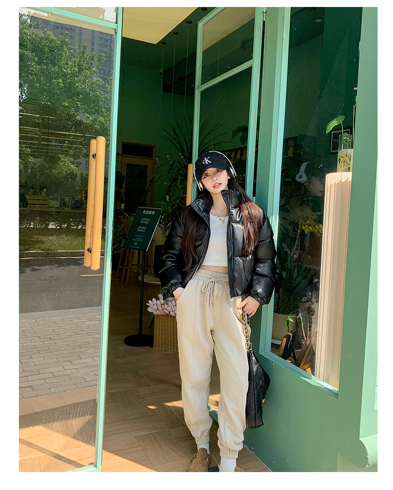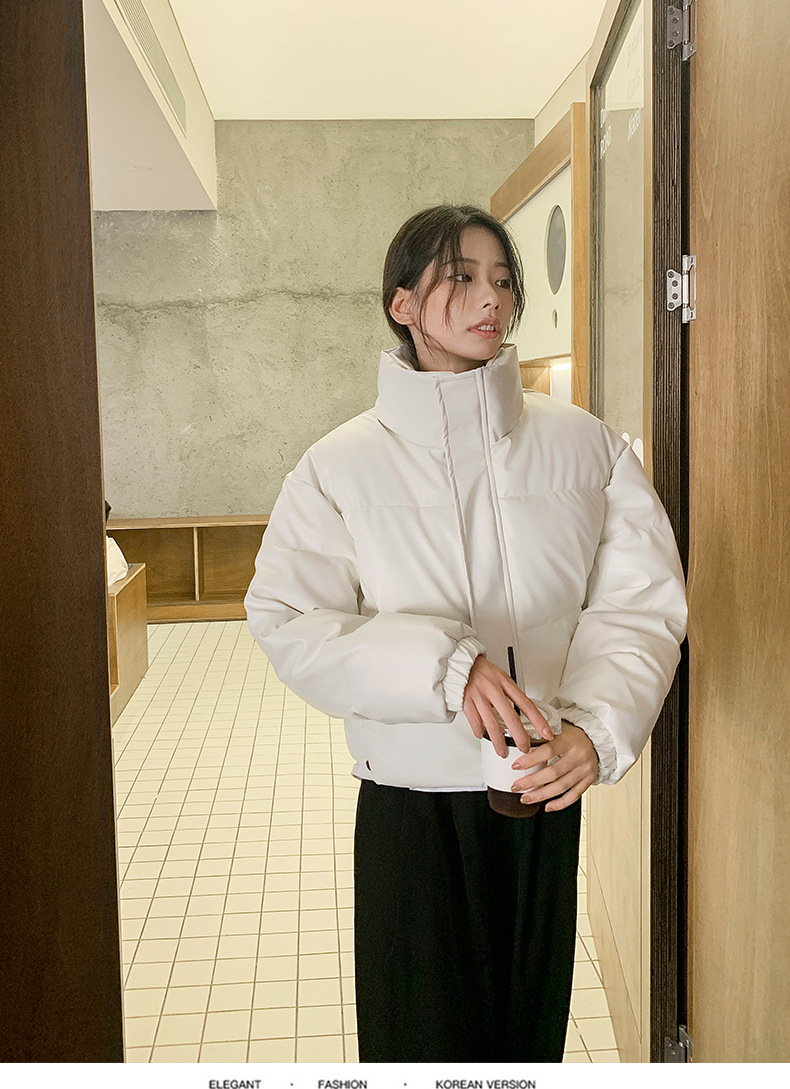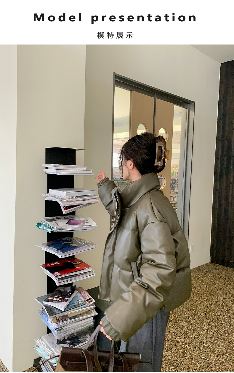 中欧美新短款2024小个子立领羽绒棉服女PU皮加厚棉袄棉衣外套潮流