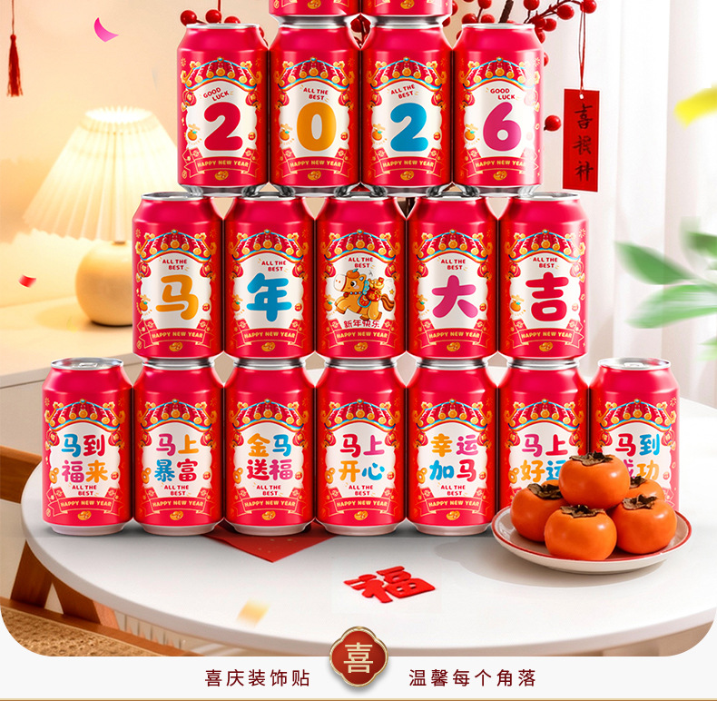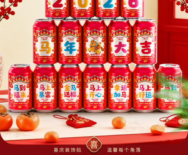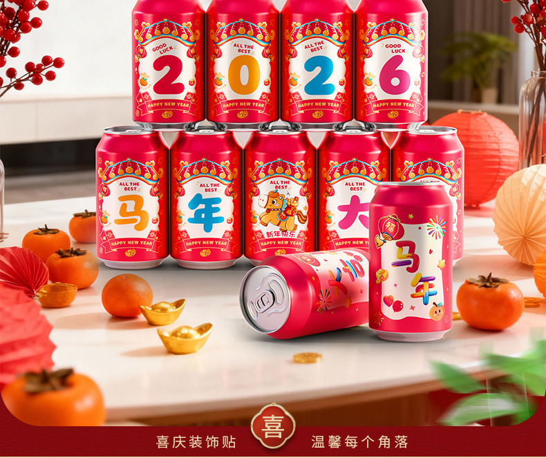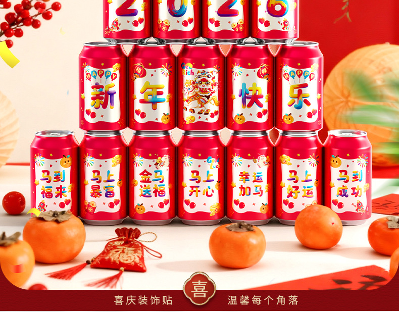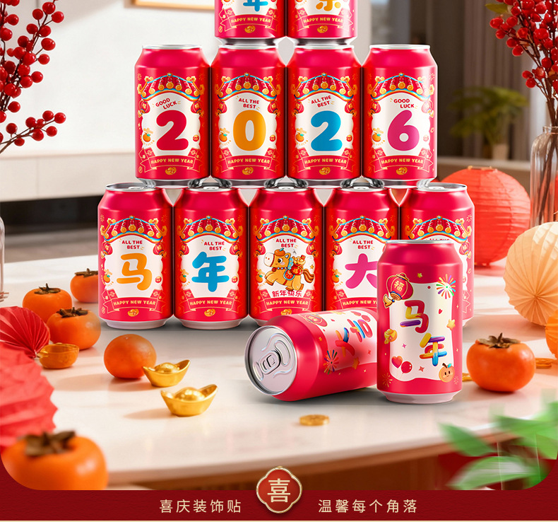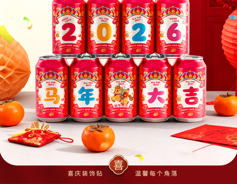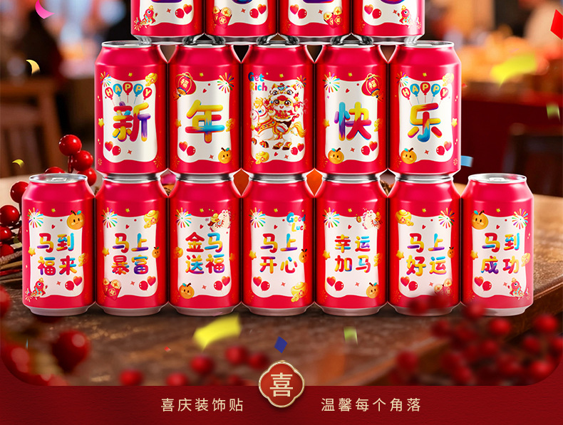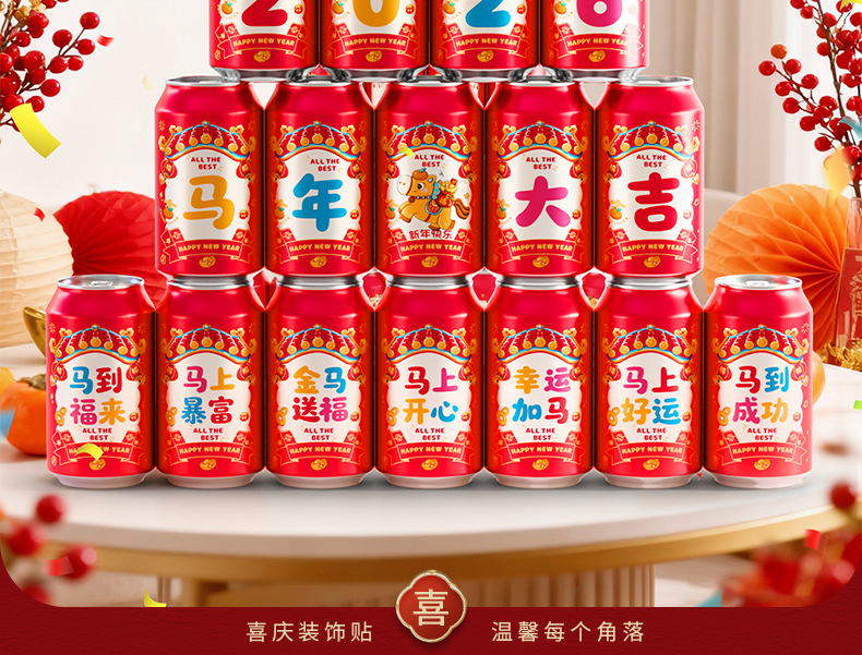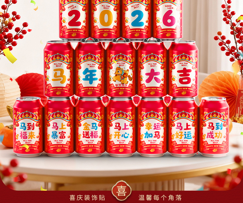 马年可乐贴纸2026新款春节年夜饭布置装饰公司年终宴会拍照仪式感