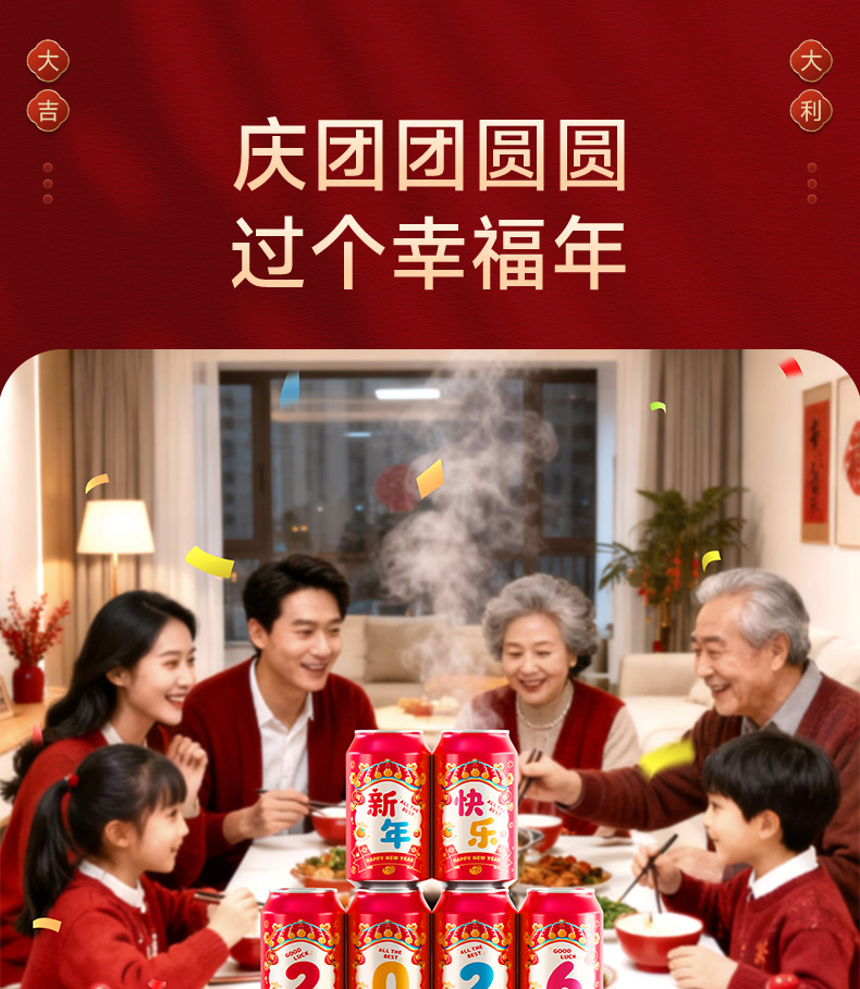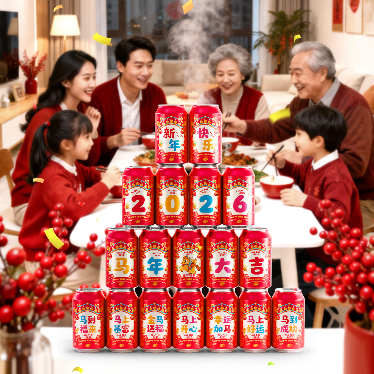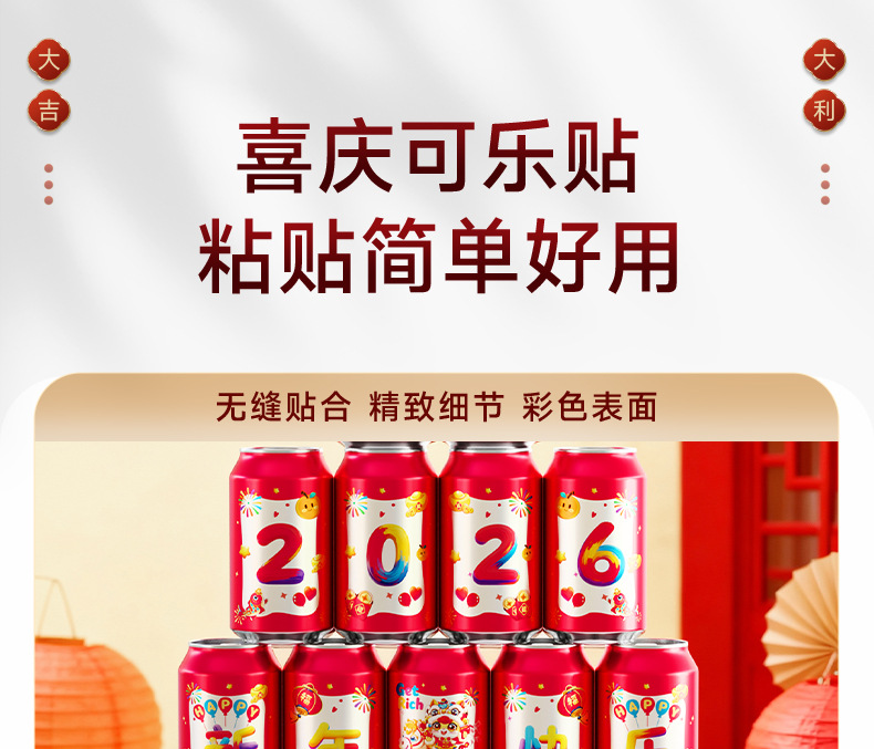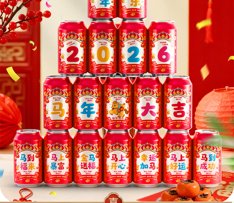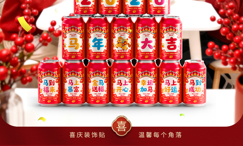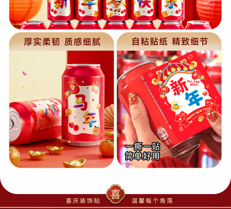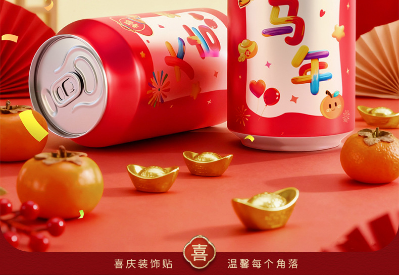 马年可乐贴纸2026新款春节年夜饭布置装饰公司年终宴会拍照仪式感