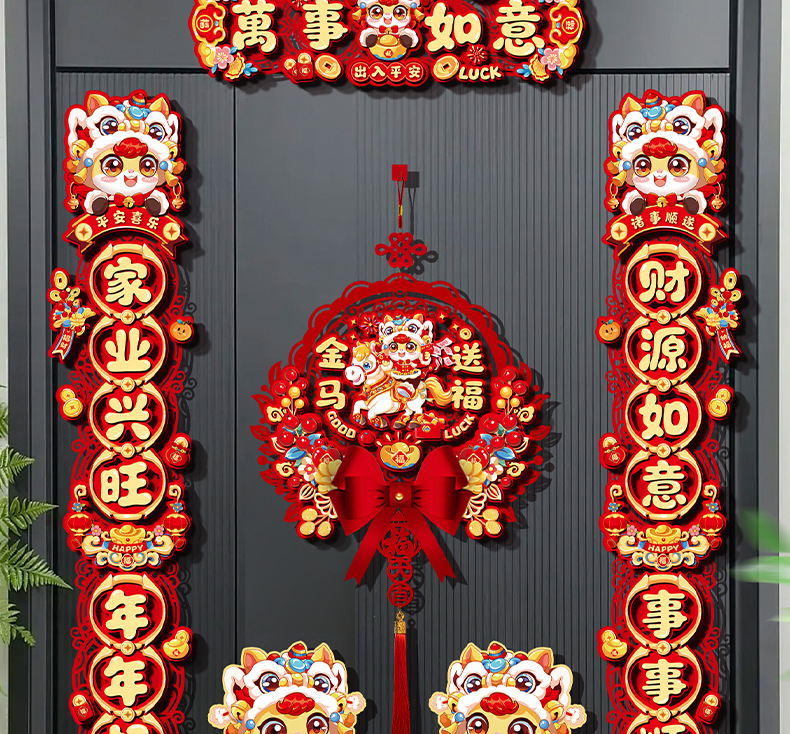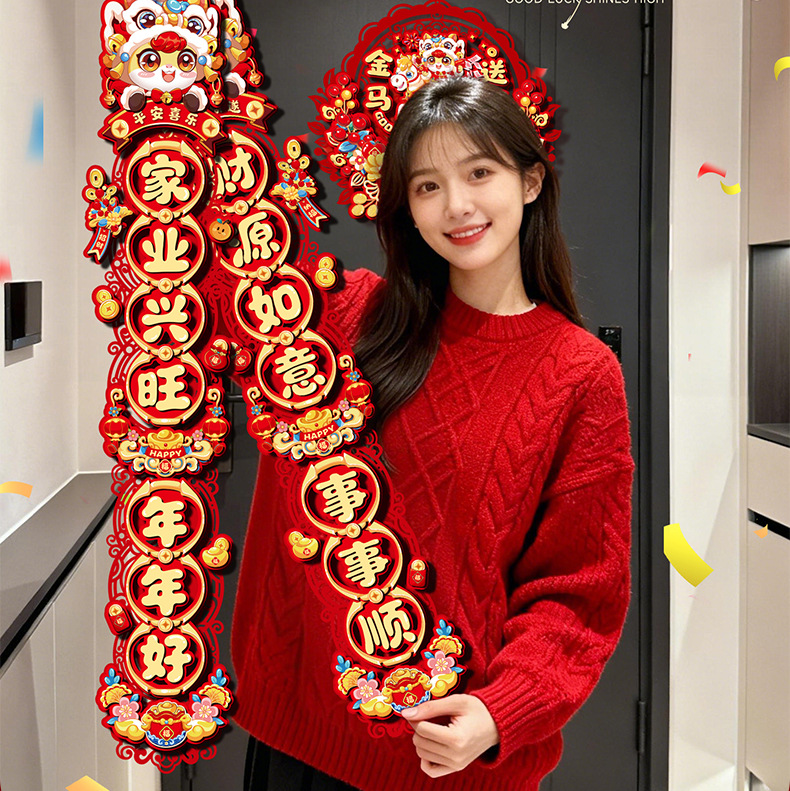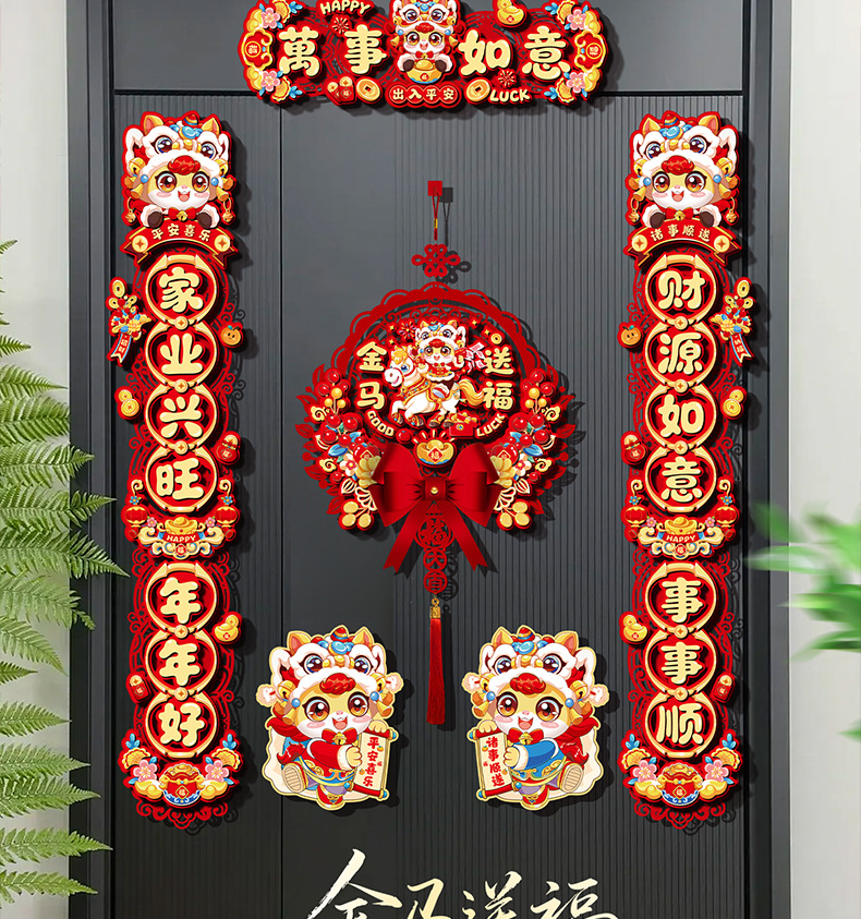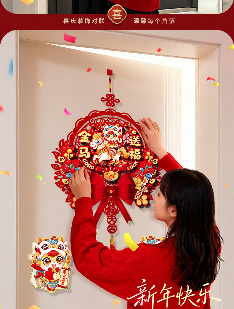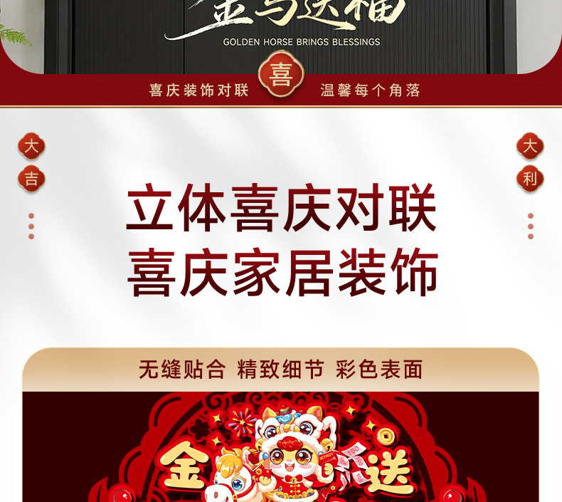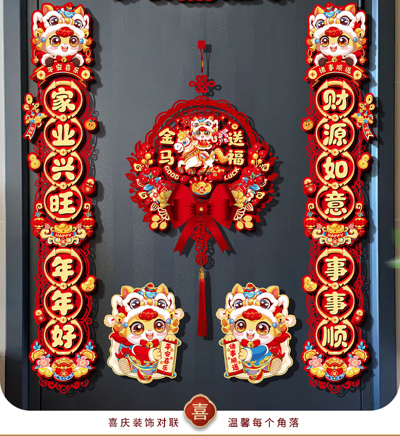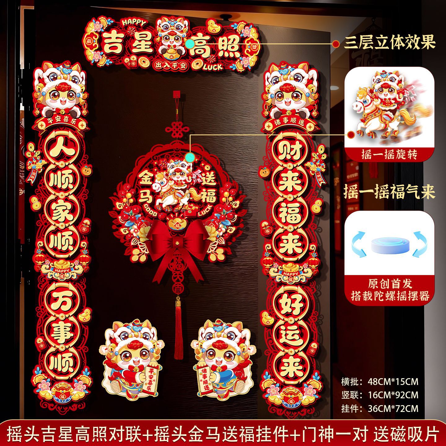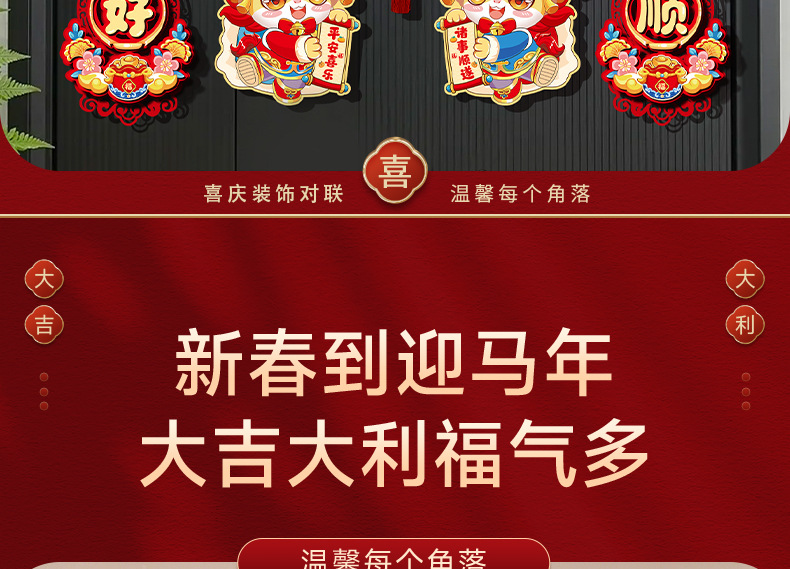 2026马年对联家用入户门联新年装饰磁吸春节春联立体福字挂件门贴