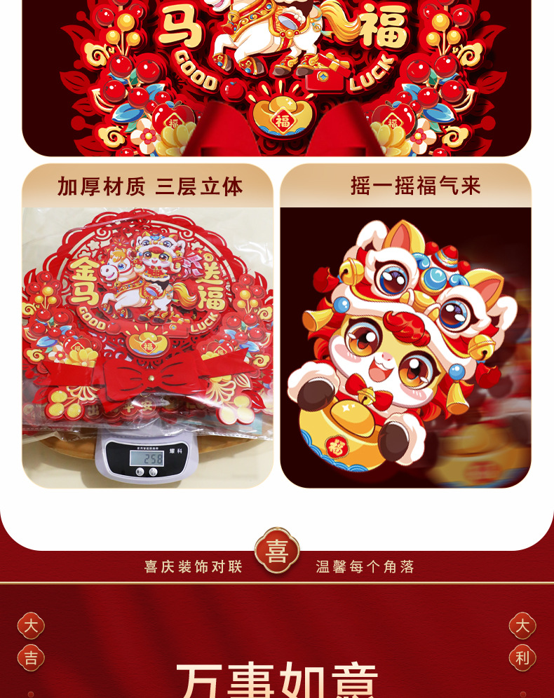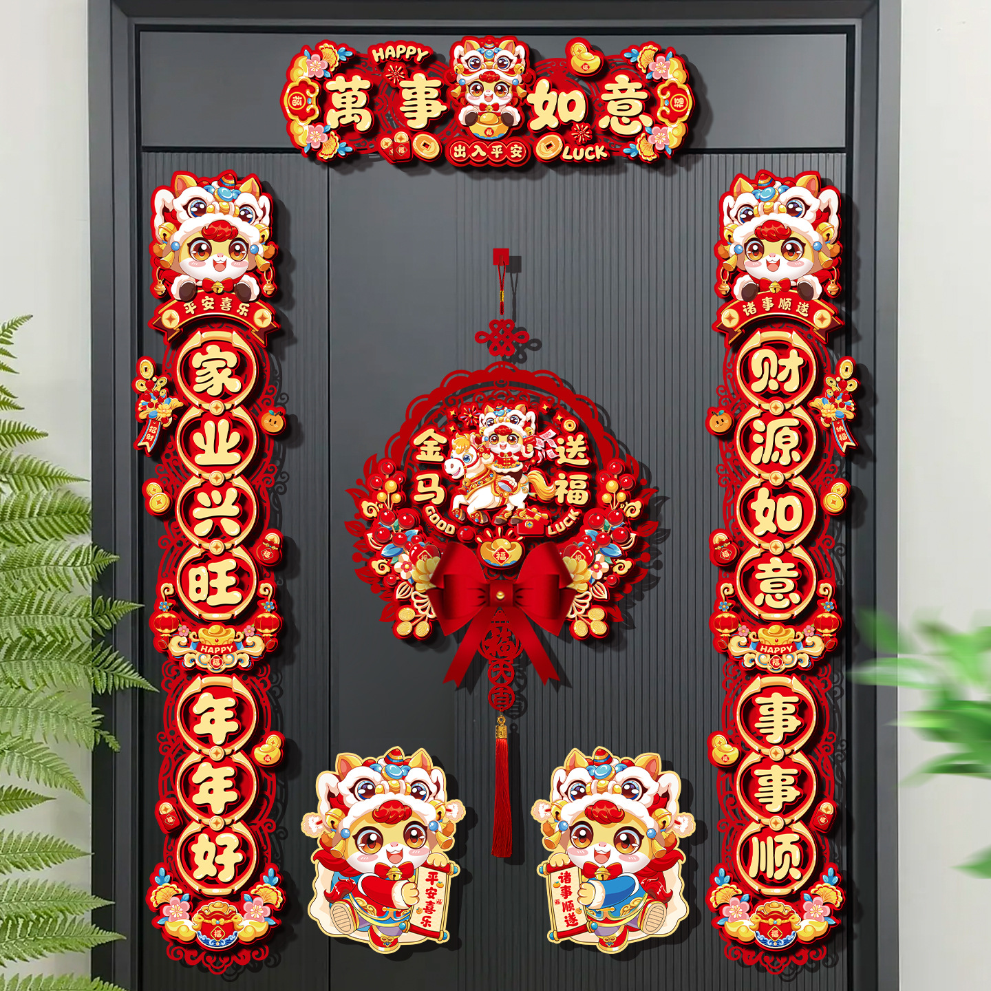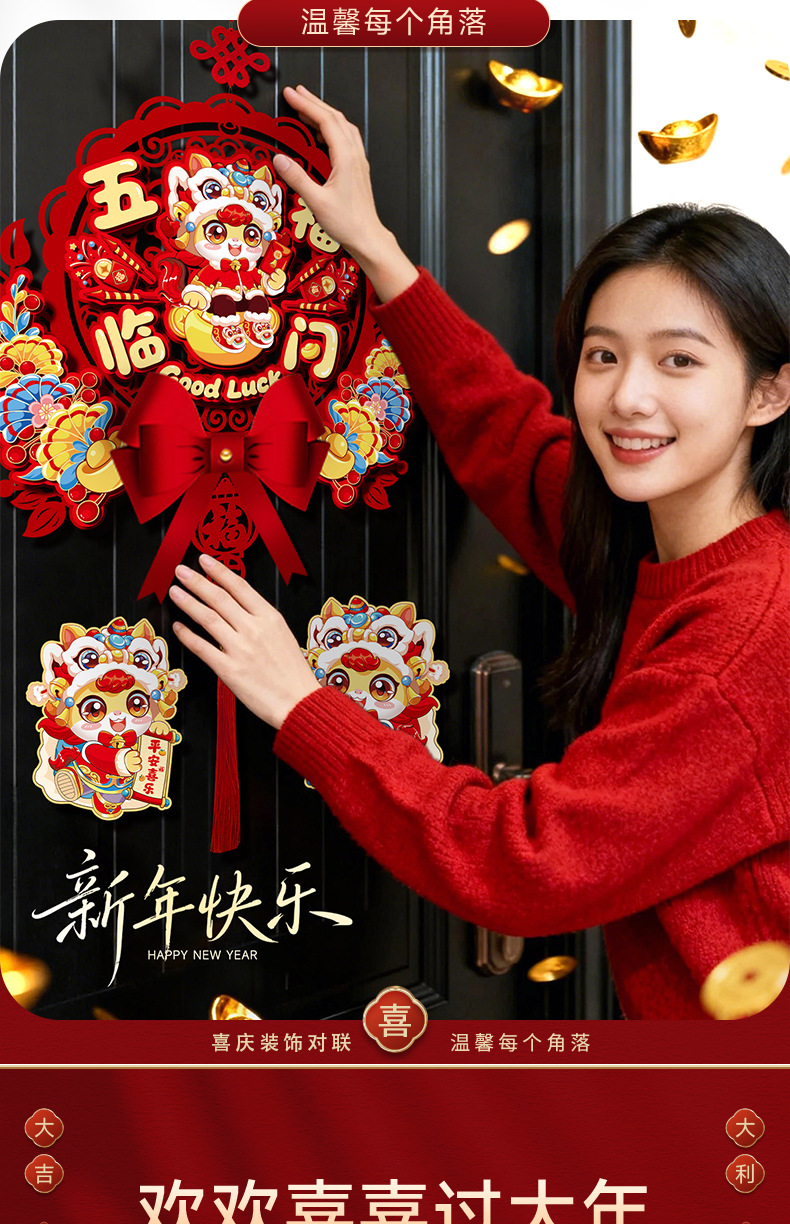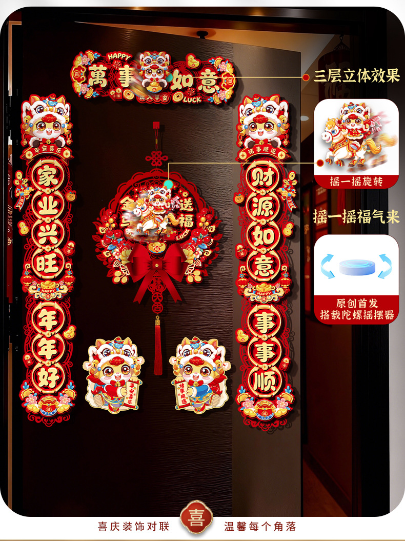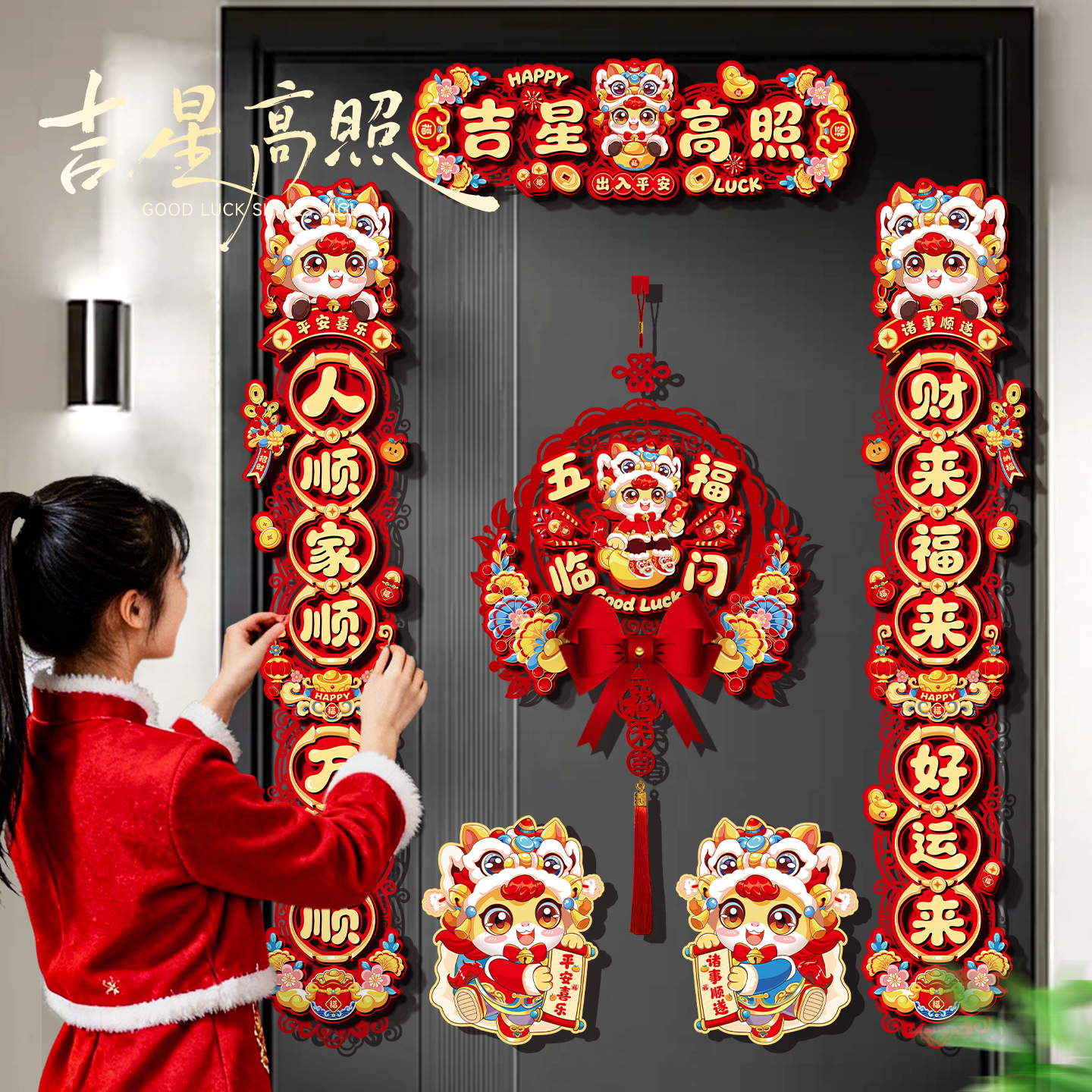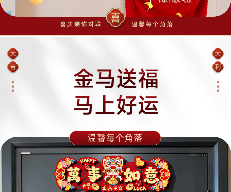 2026马年对联家用入户门联新年装饰磁吸春节春联立体福字挂件门贴