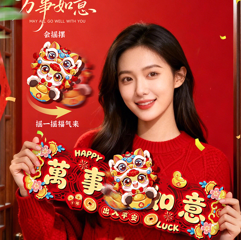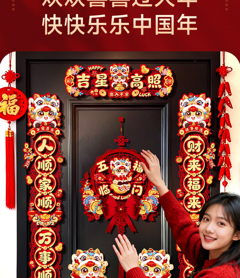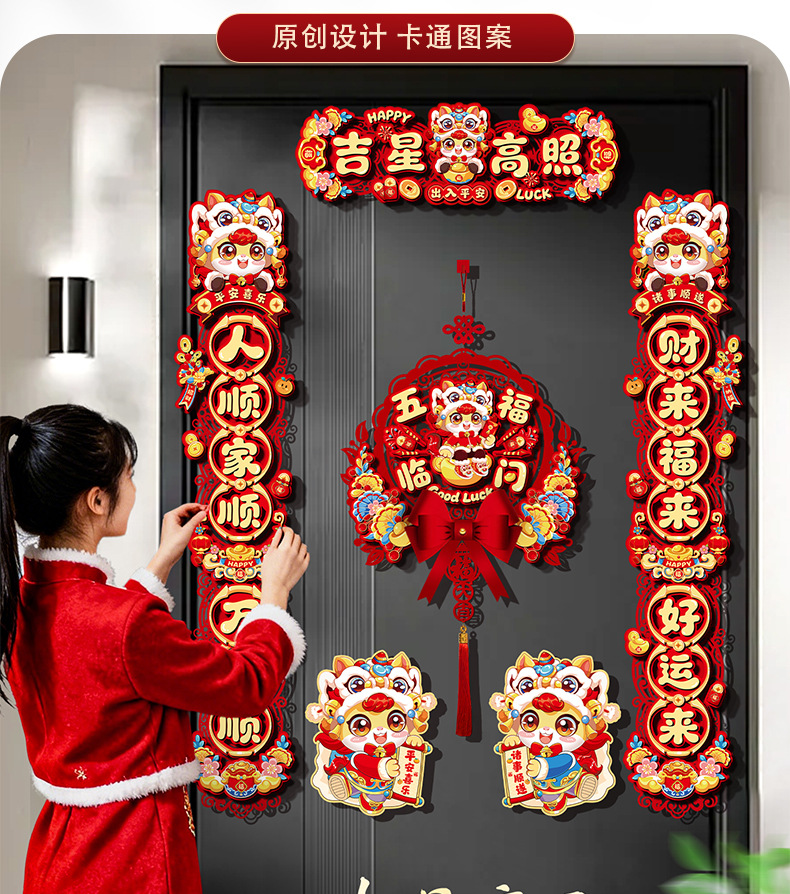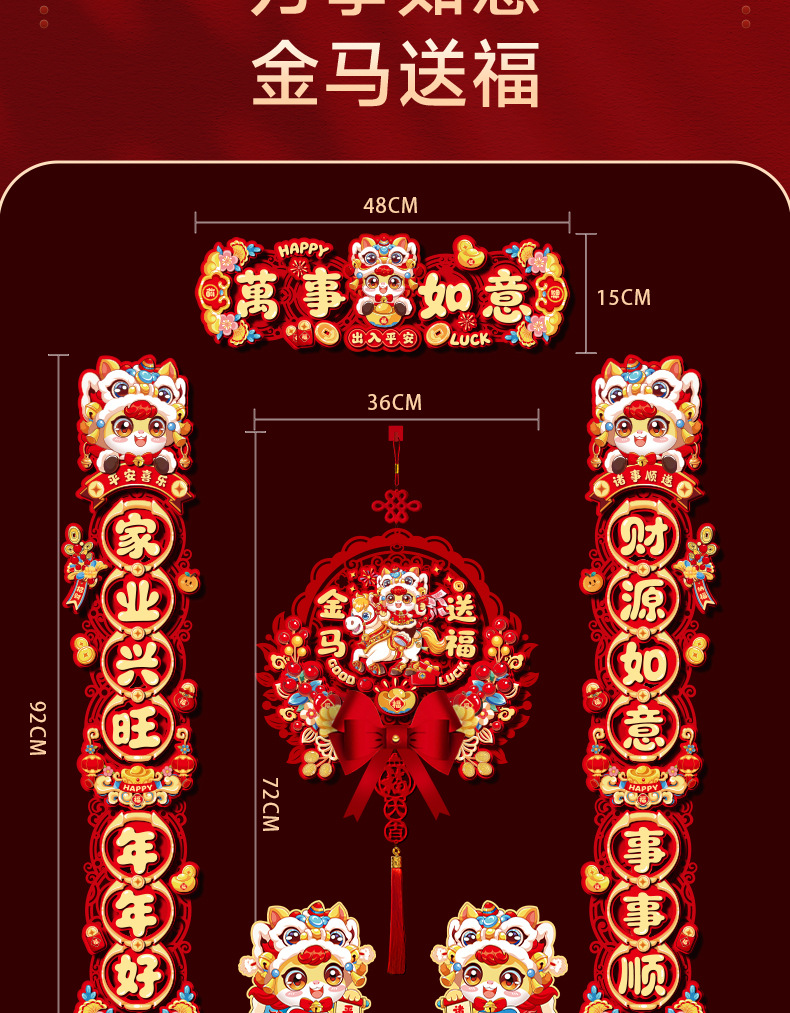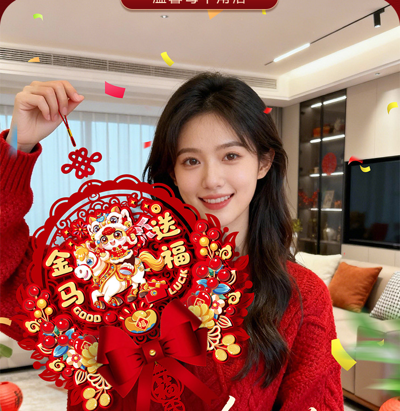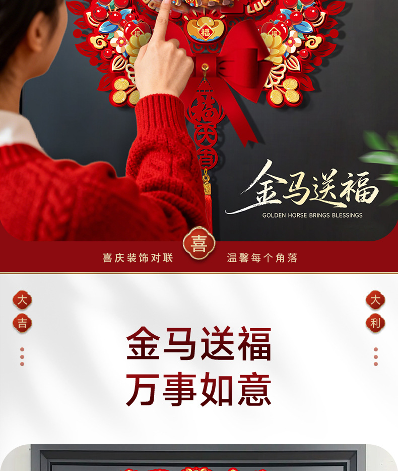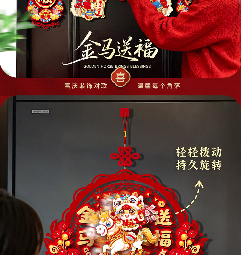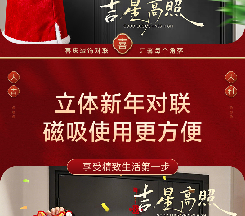 2026马年对联家用入户门联新年装饰磁吸春节春联立体福字挂件门贴