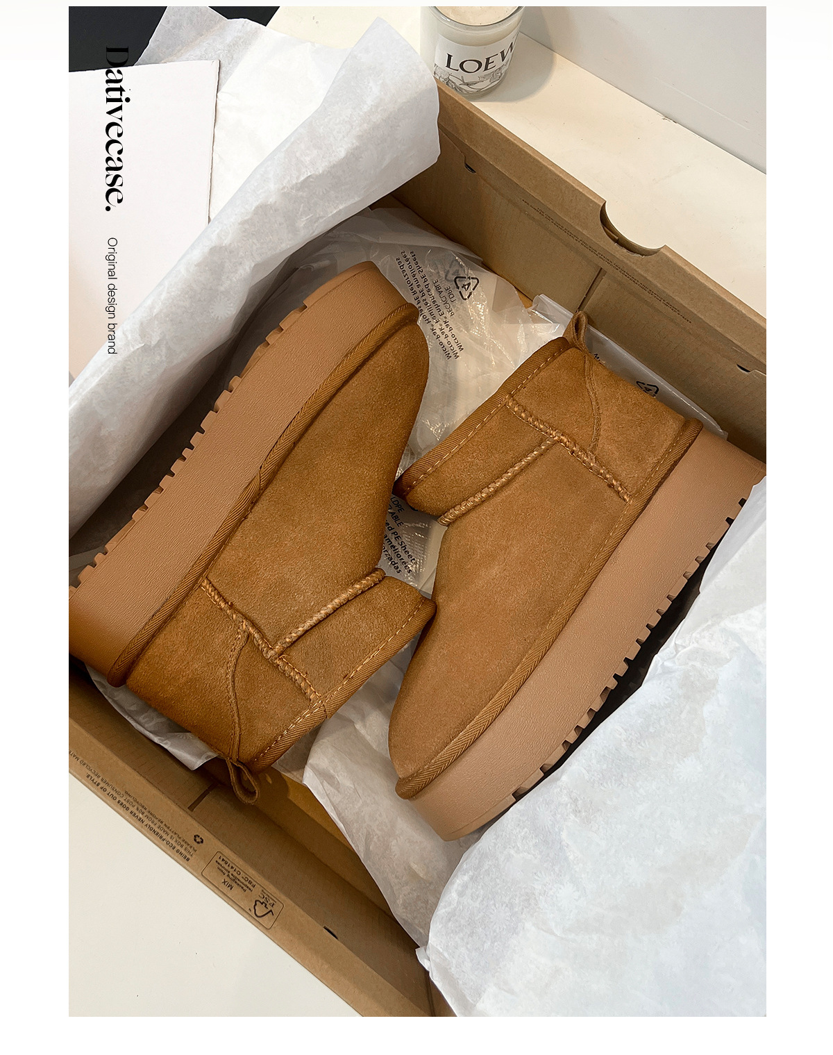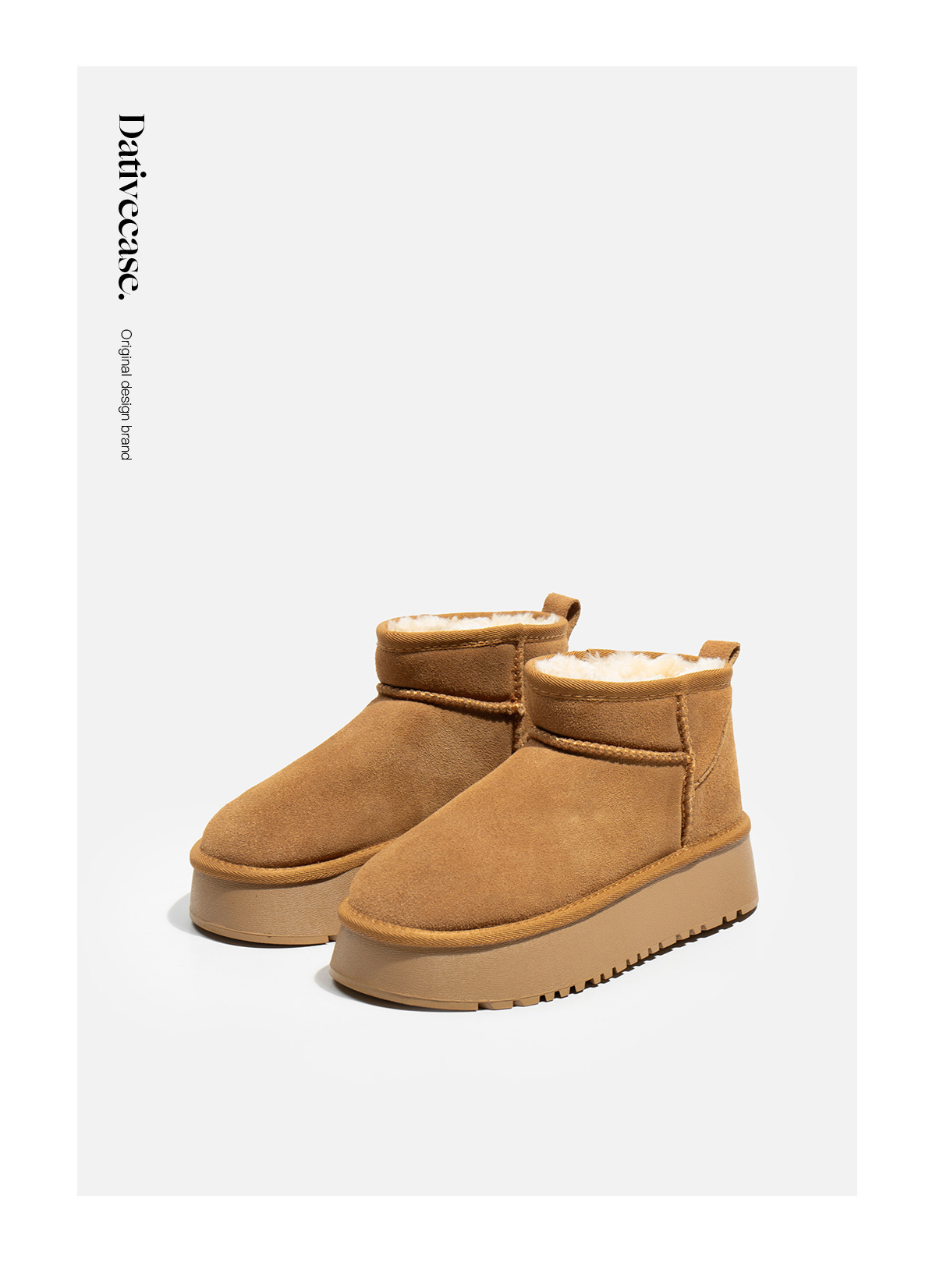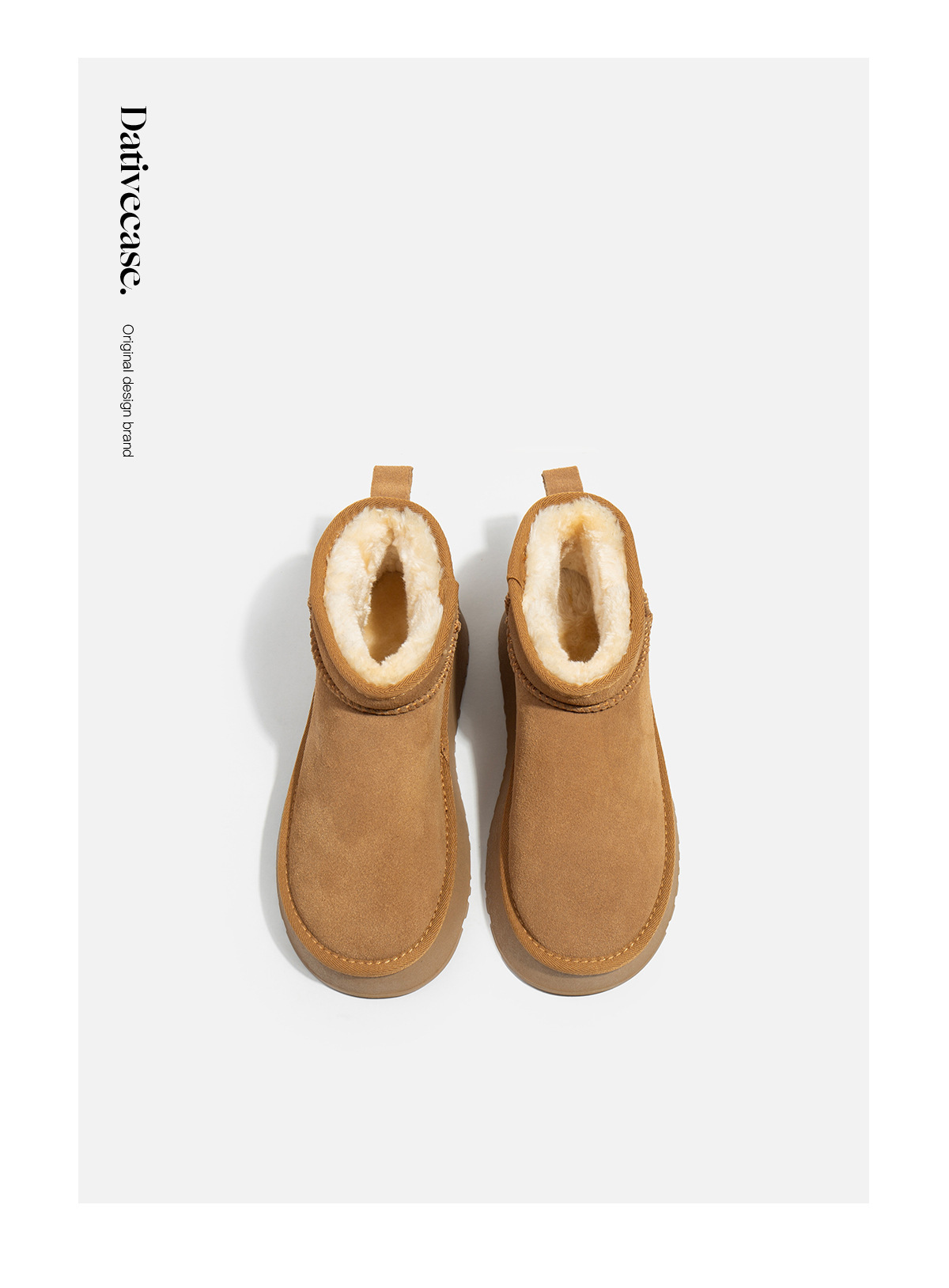 【胡桃】真皮羊毛雪地靴女厚底加绒冬季短靴东北棉靴桑坡