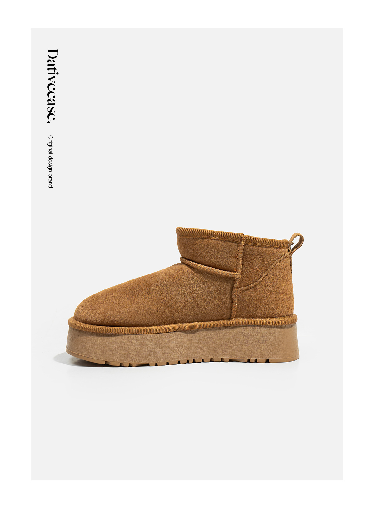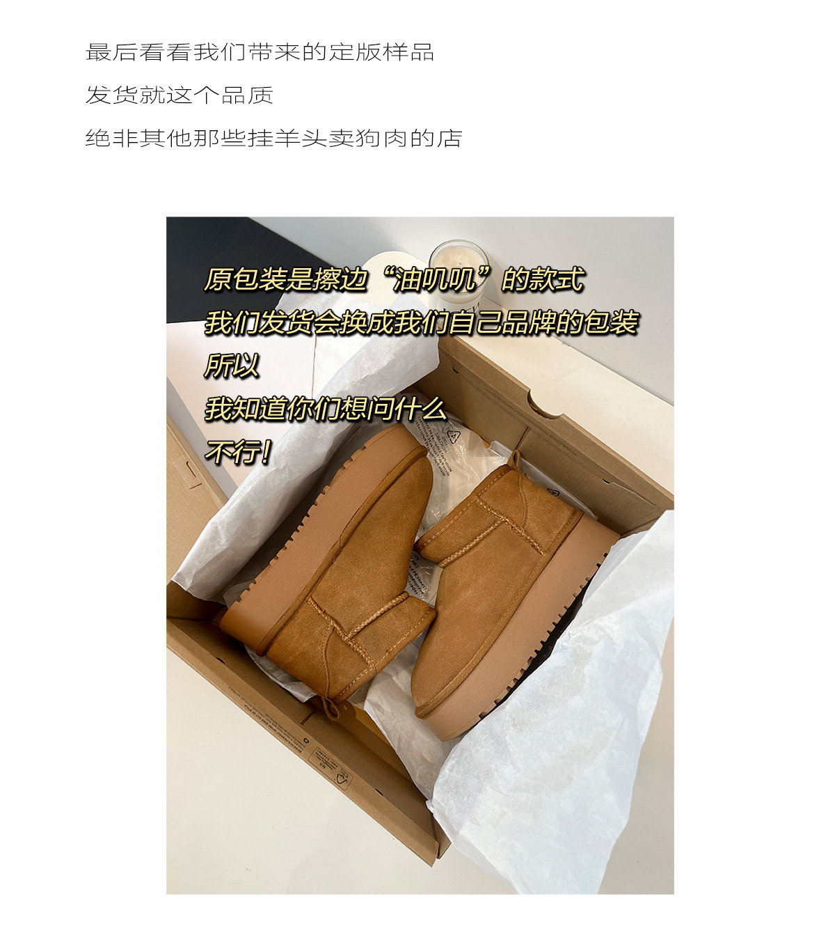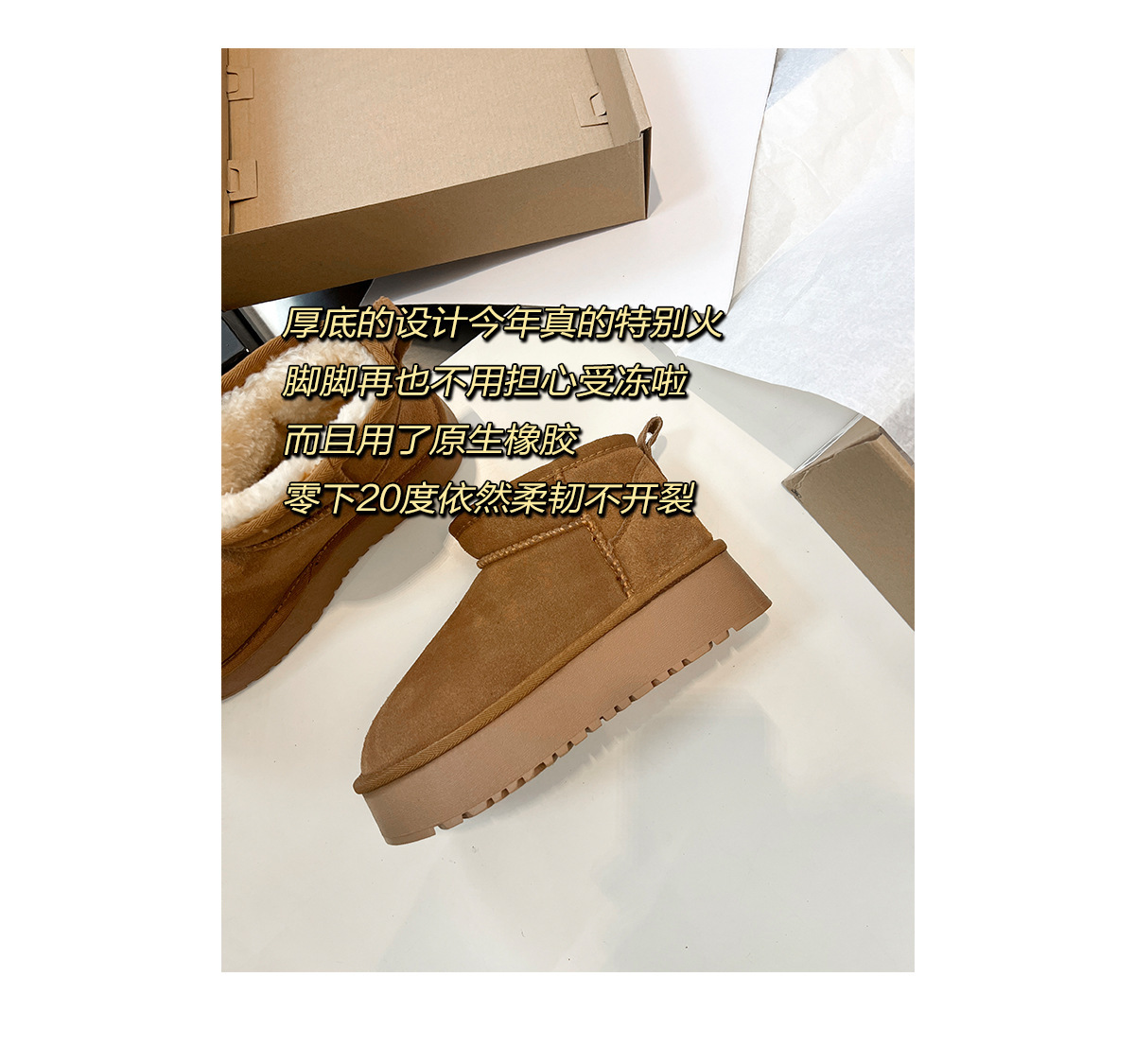 【胡桃】真皮羊毛雪地靴女厚底加绒冬季短靴东北棉靴桑坡