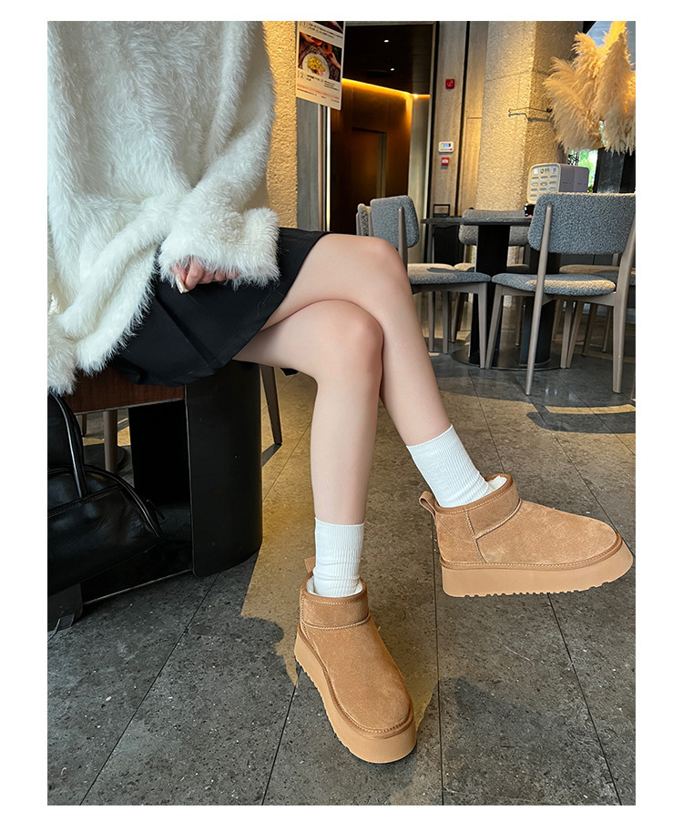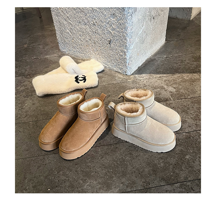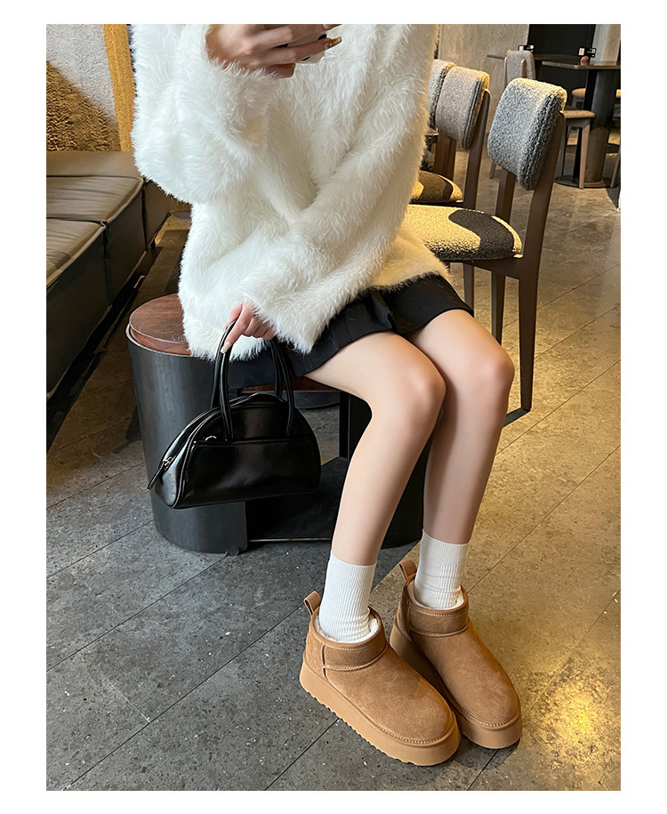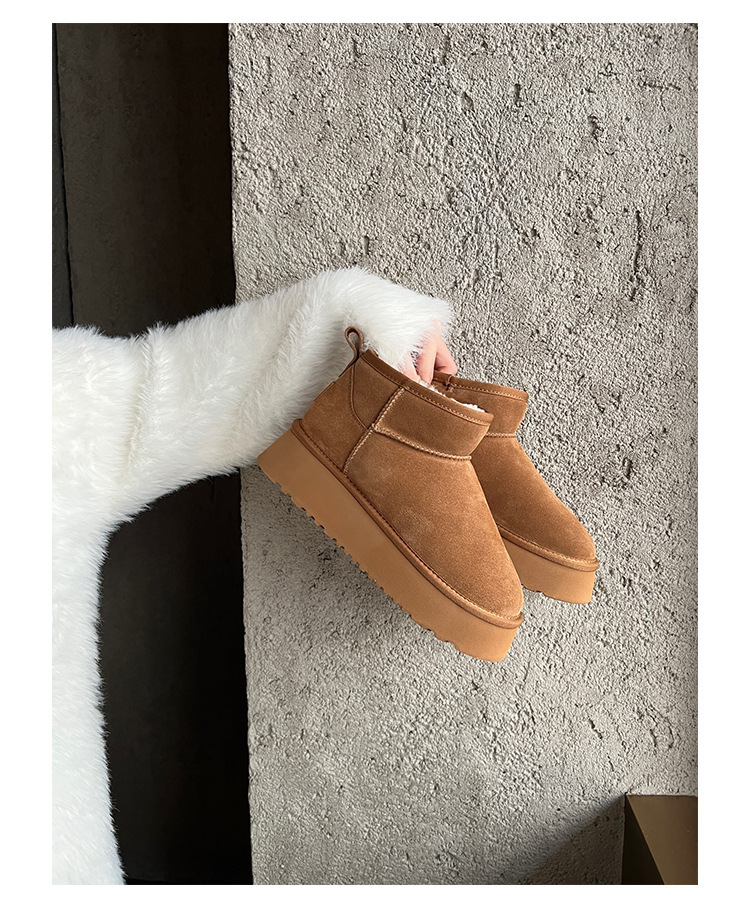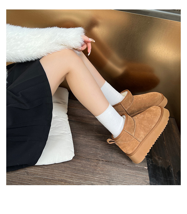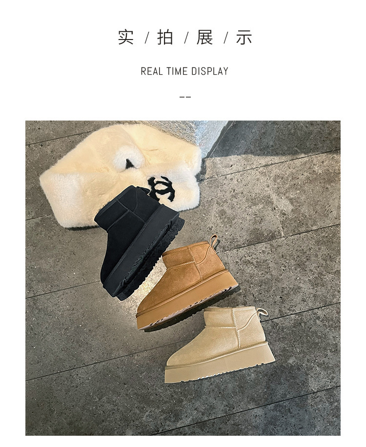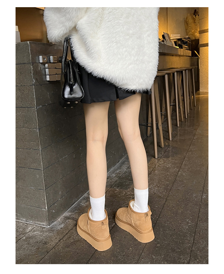 周冬雨同款~胡桃家羊毛一体保暖厚底雪地靴女2024冬新款短筒棉鞋