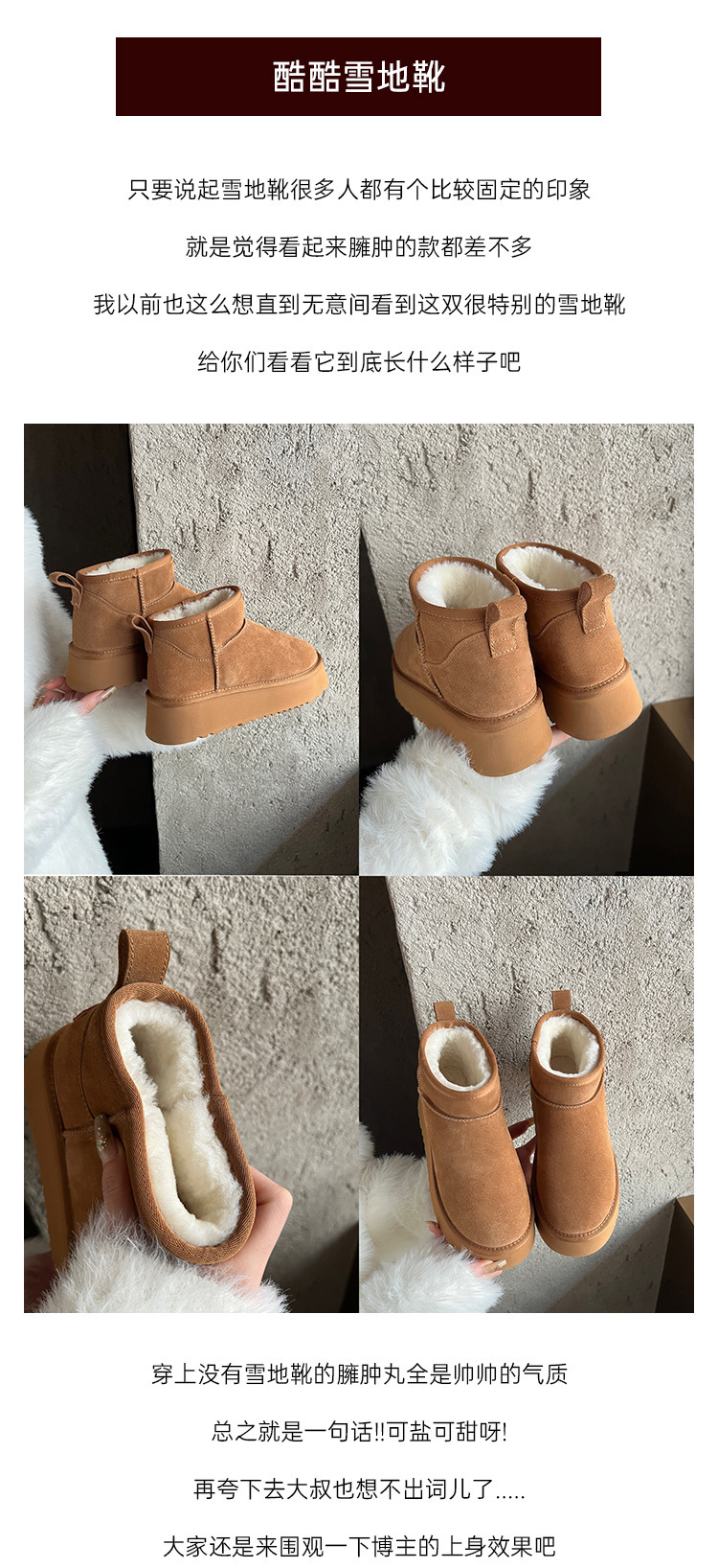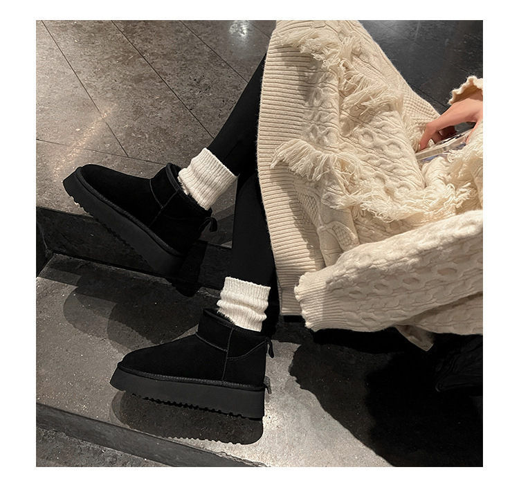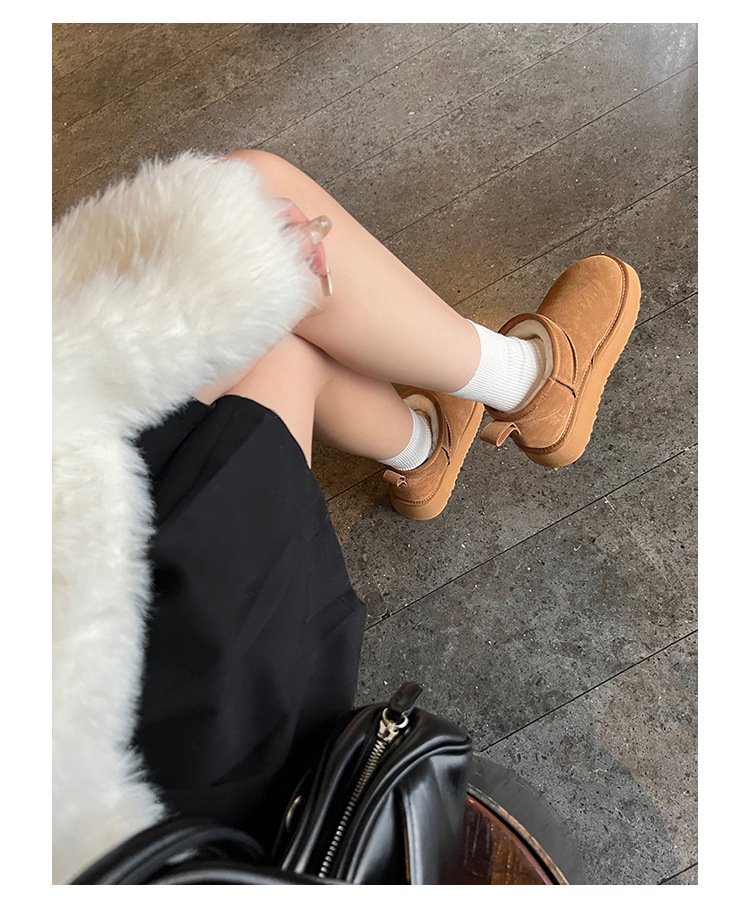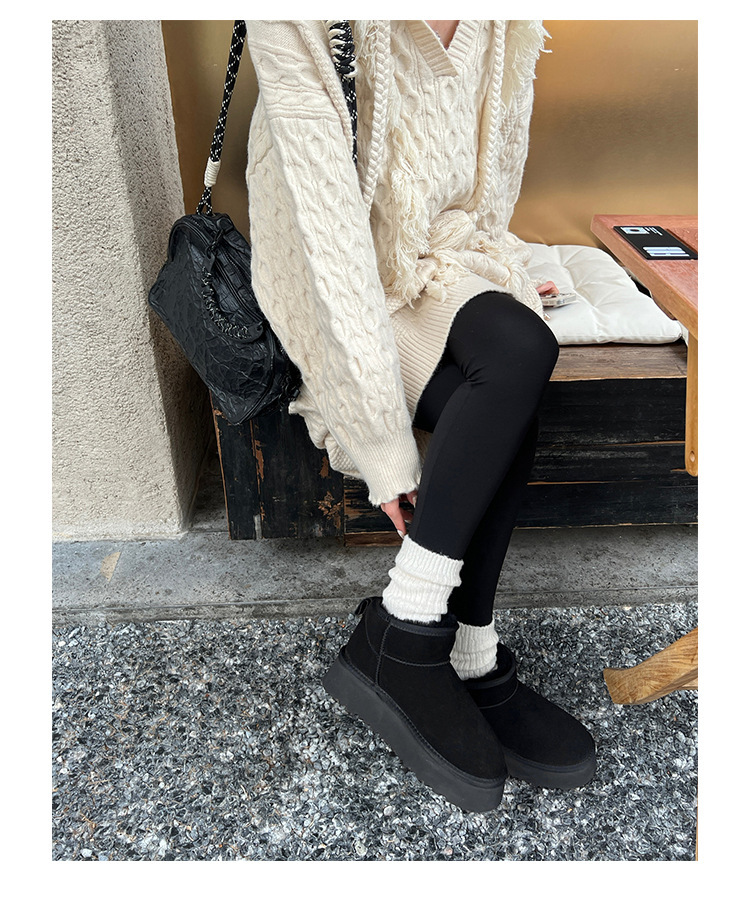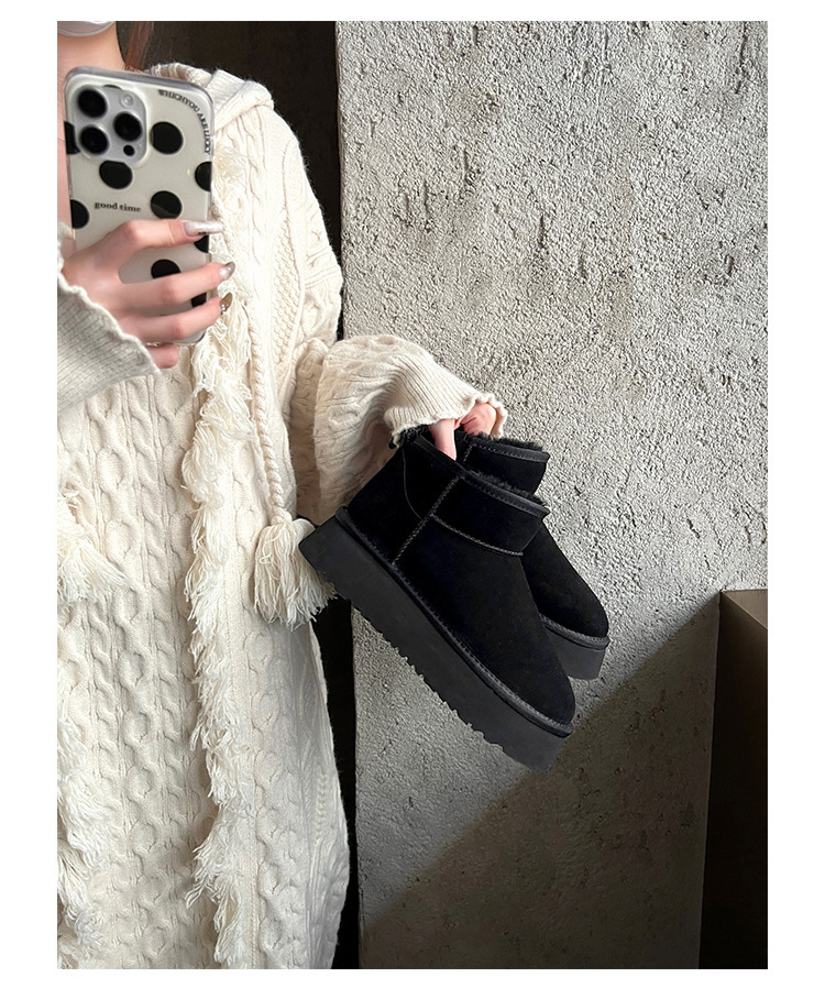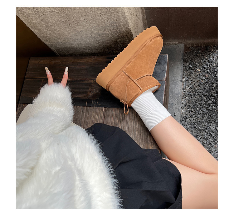 周冬雨同款~胡桃家羊毛一体保暖厚底雪地靴女2024冬新款短筒棉鞋