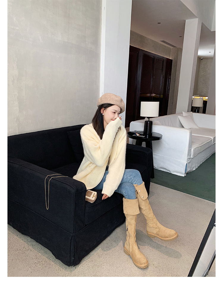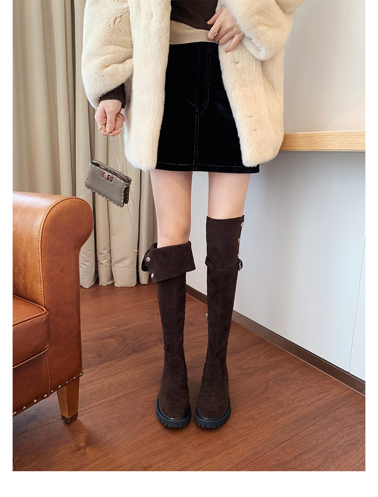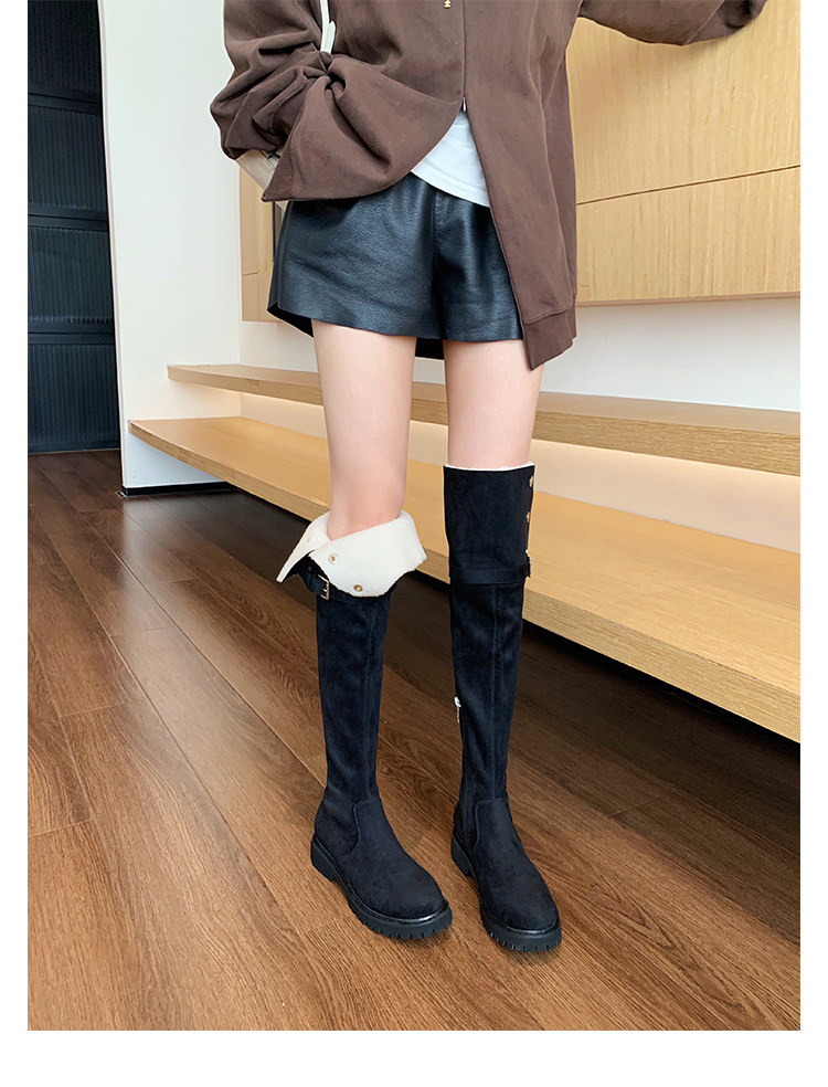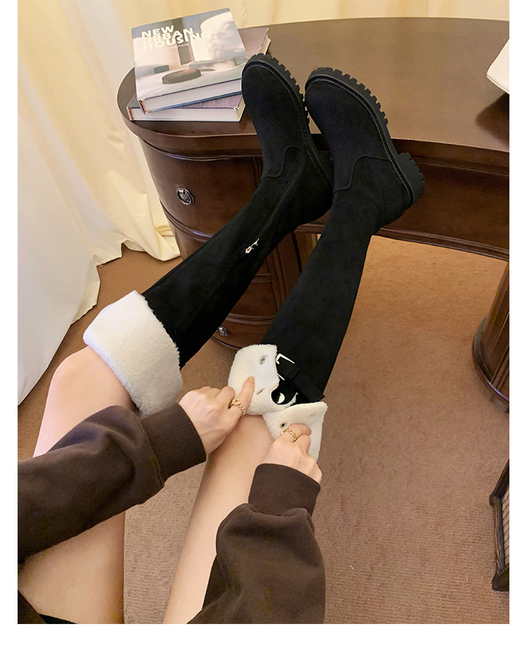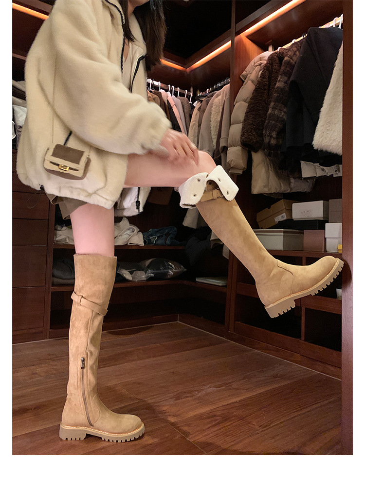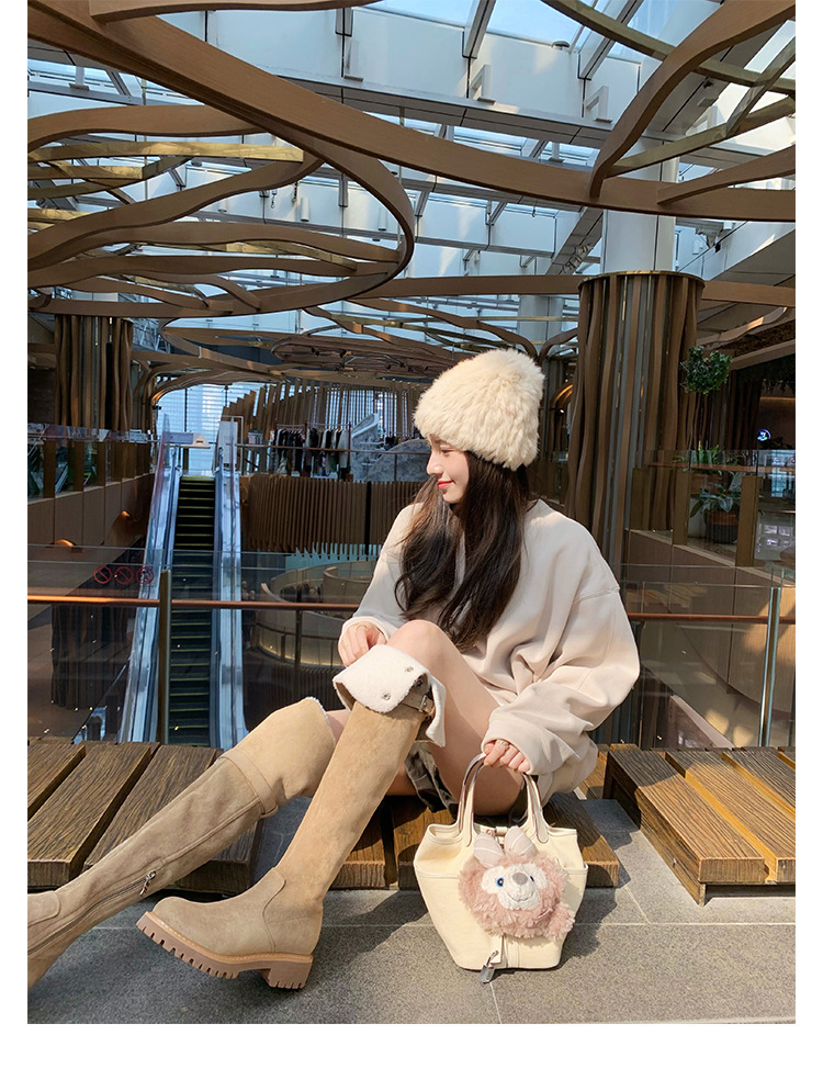 网红风过膝骑士靴女厚底加绒长筒厚绒长靴百搭雪地靴女式棉鞋冬季