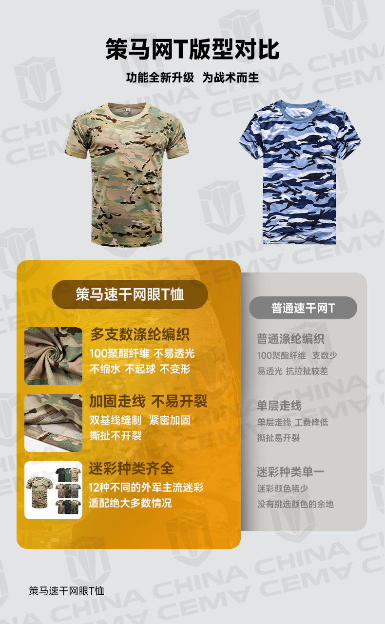 策马 迷彩服短袖男夏季快干运动体恤户外体能训练服装战术t恤批发
