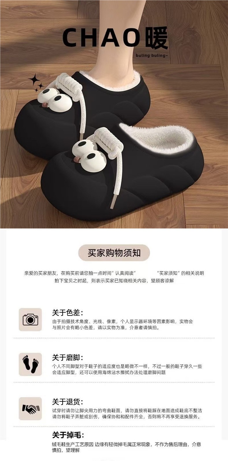 大眼睛棉拖鞋厚底可爱加绒保暖棉拖家居室内冬天拖鞋棉鞋可外穿