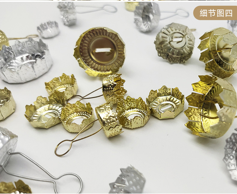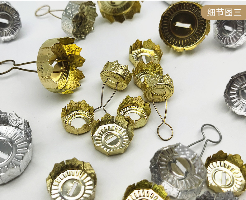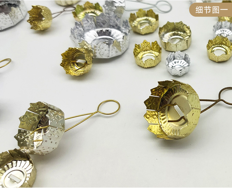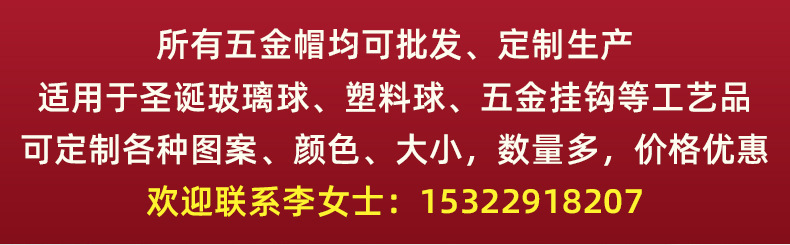 厂家生产圣诞球帽盖电镀金色玻璃球铝制盖子圣诞树配件吊饰盖球盖