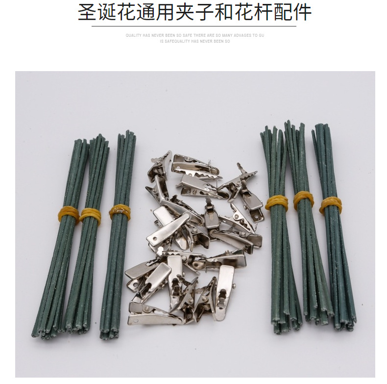 亚马逊装饰金粉圣诞花 葱粉花环配件圣诞树装饰 配件批发夹子杆子