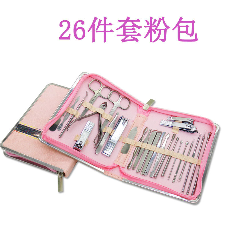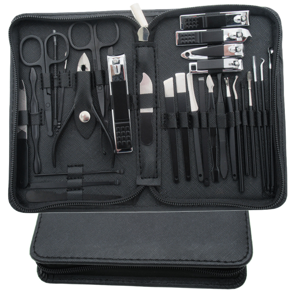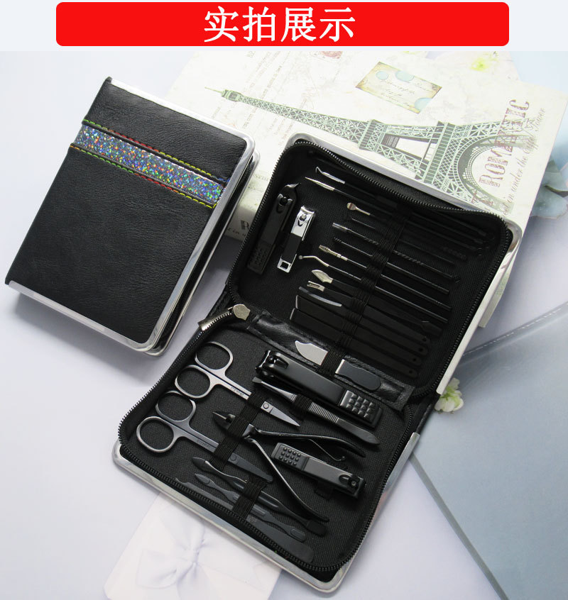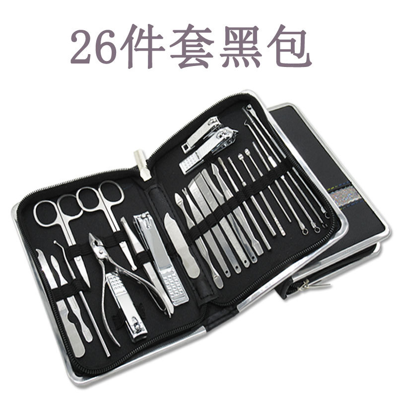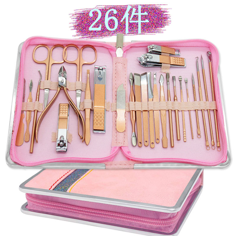 美甲工具套装大号指甲钳死皮钳修脚刀粉刺针踢甲器镊子拉链26件套