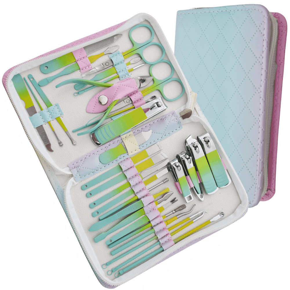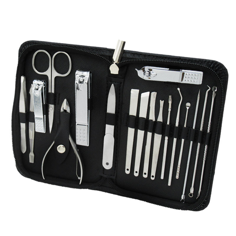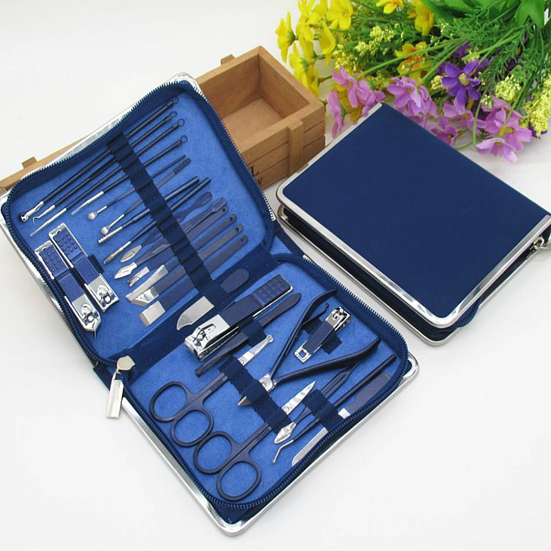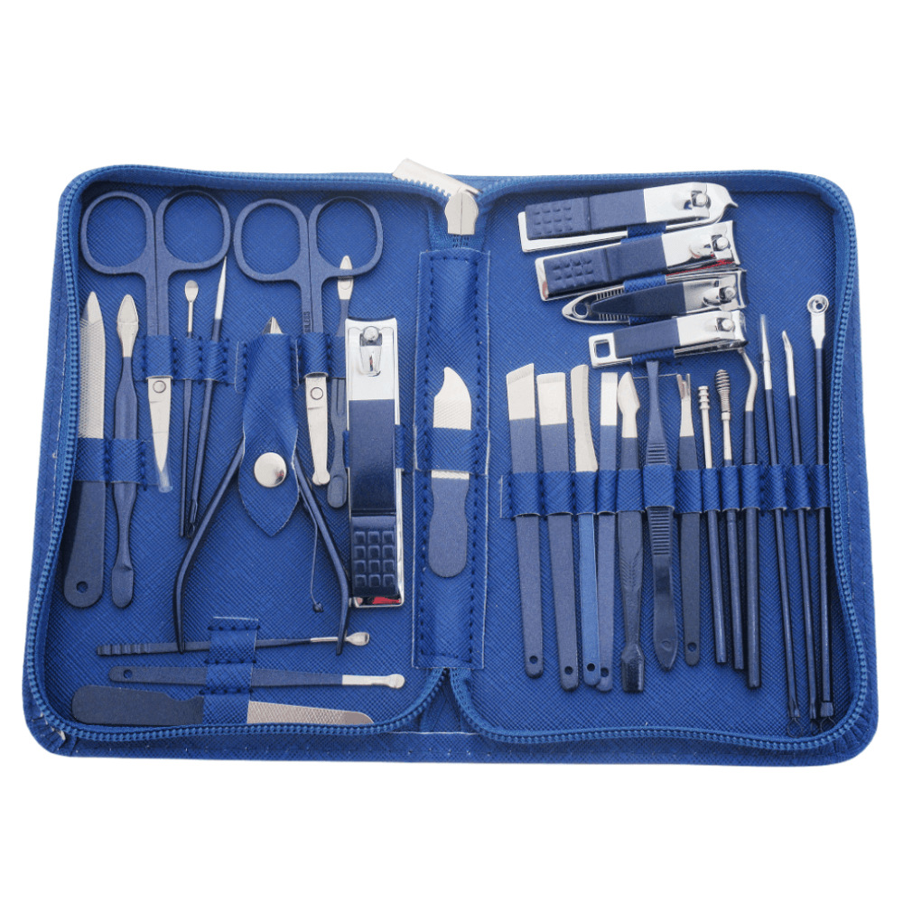 美甲工具套装大号指甲钳死皮钳修脚刀粉刺针踢甲器镊子拉链26件套