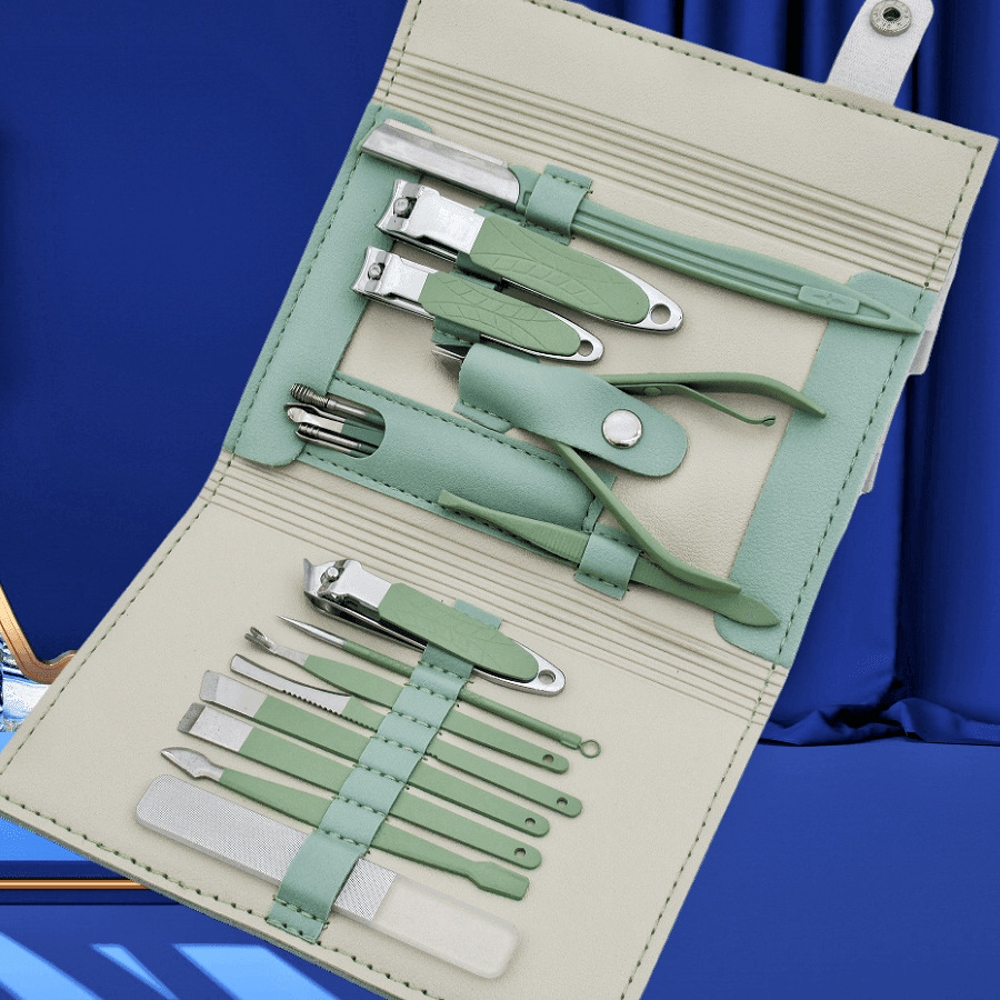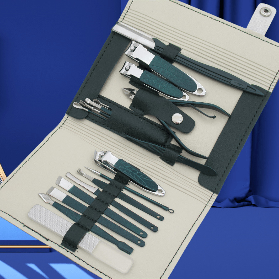 厂家现货黑色16件套装指甲刀指甲剪修甲工具折袋款指甲钳套装批发