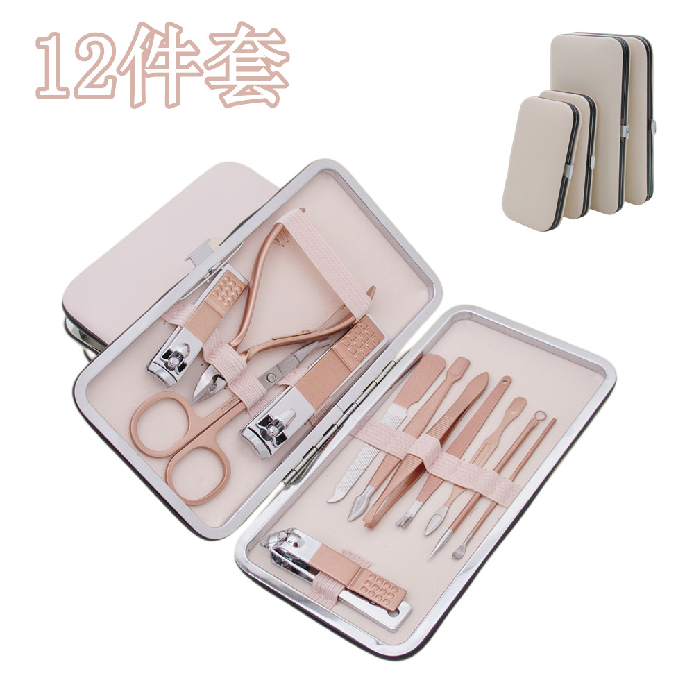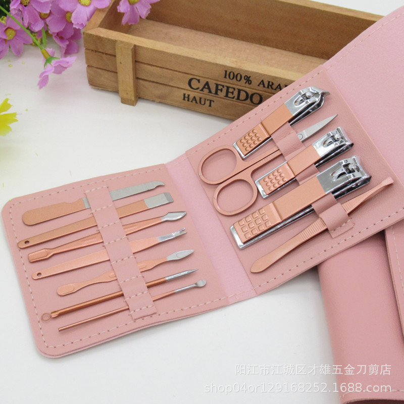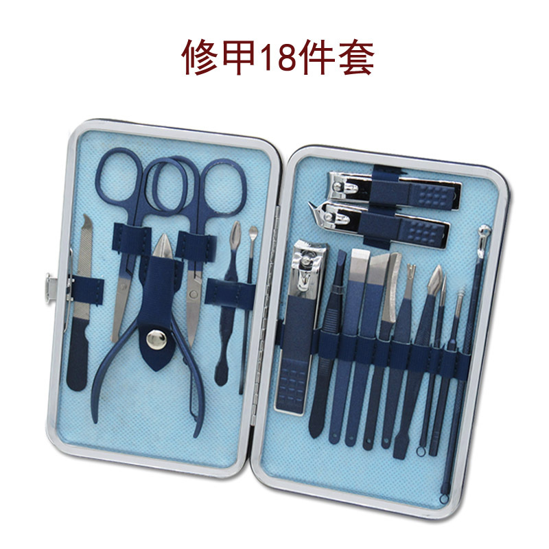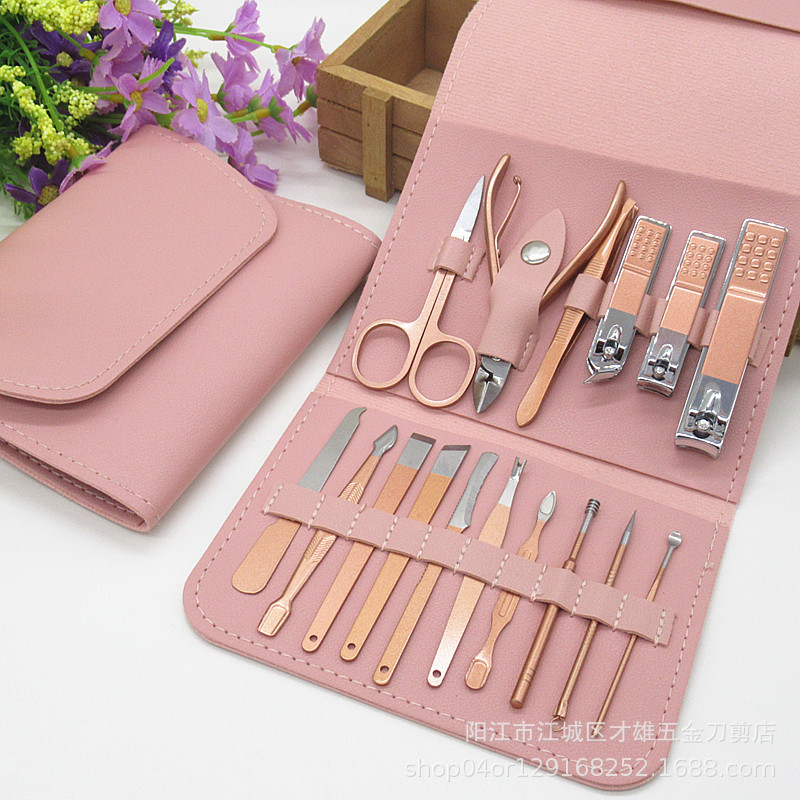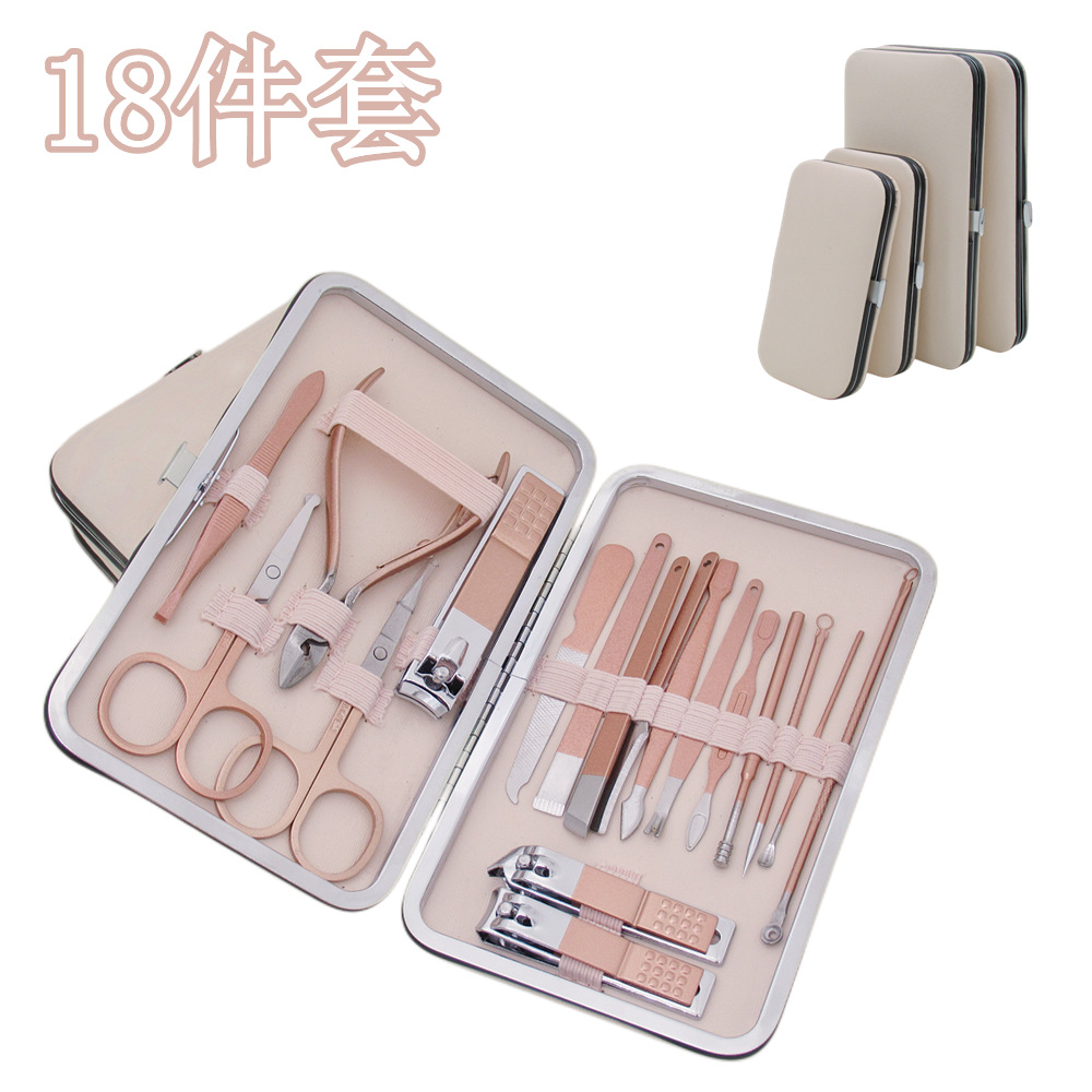18件套不锈钢配指甲刀钳修脚美容美甲工具可死皮钳ogo玫瑰金剪刀