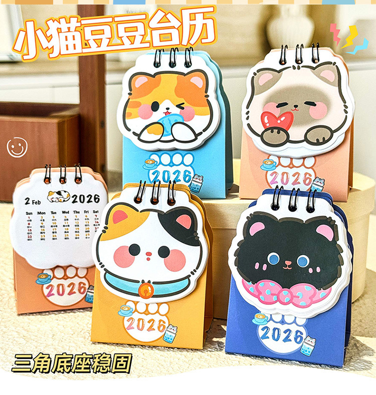 2026年卡通台历小猫豆豆台历高颜值迷你小日历学生考试奖励批发