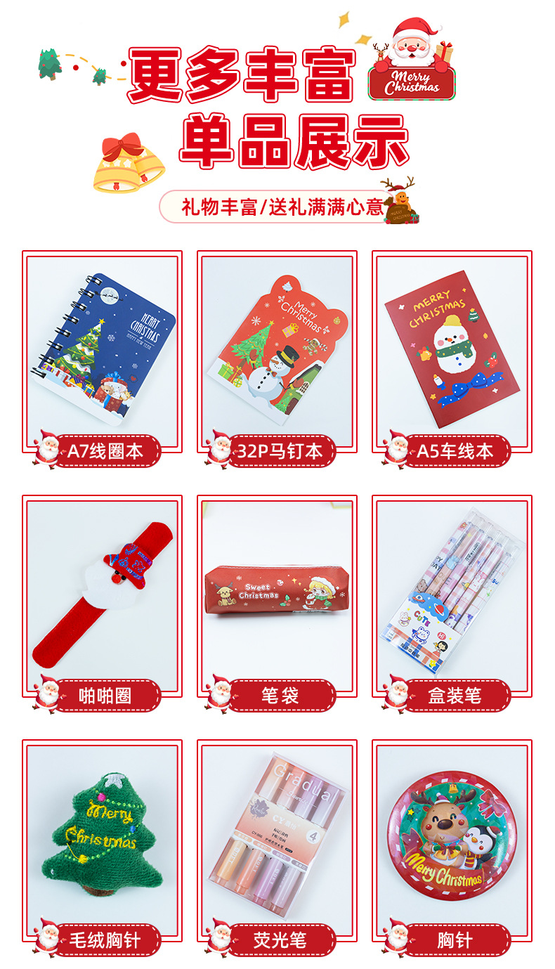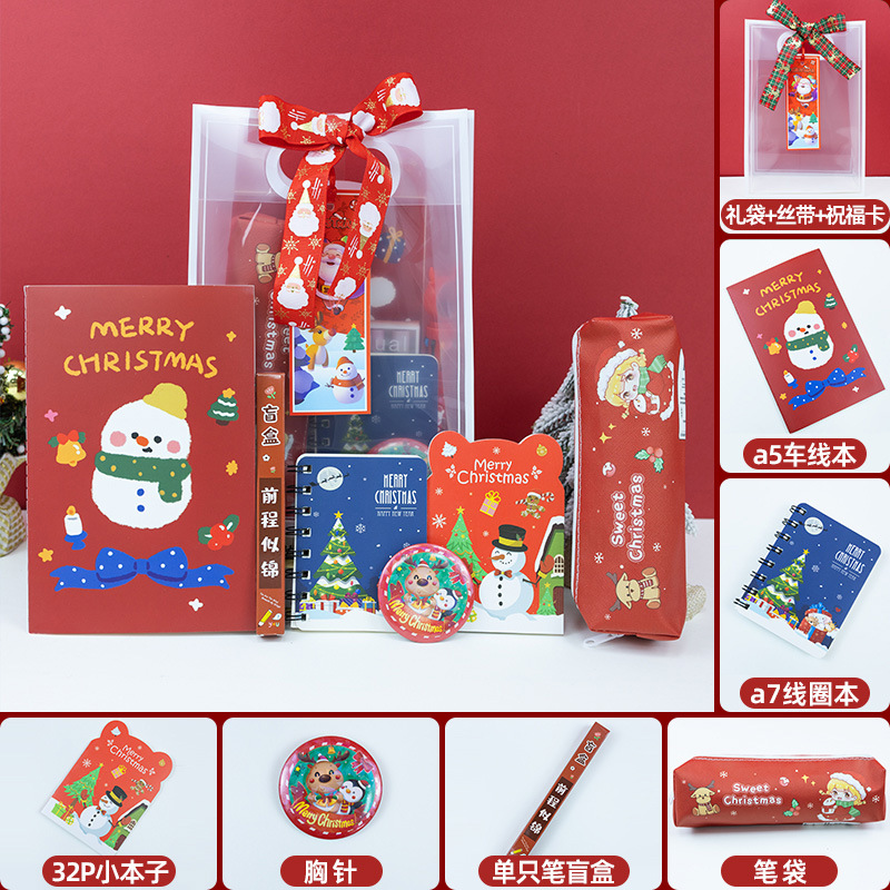 圣诞文具套装笔记本中性笔胸针大礼包中小学生奖品圣诞节礼物批发
