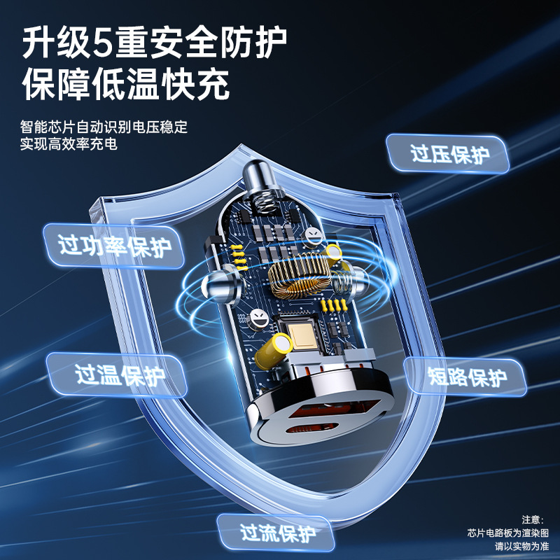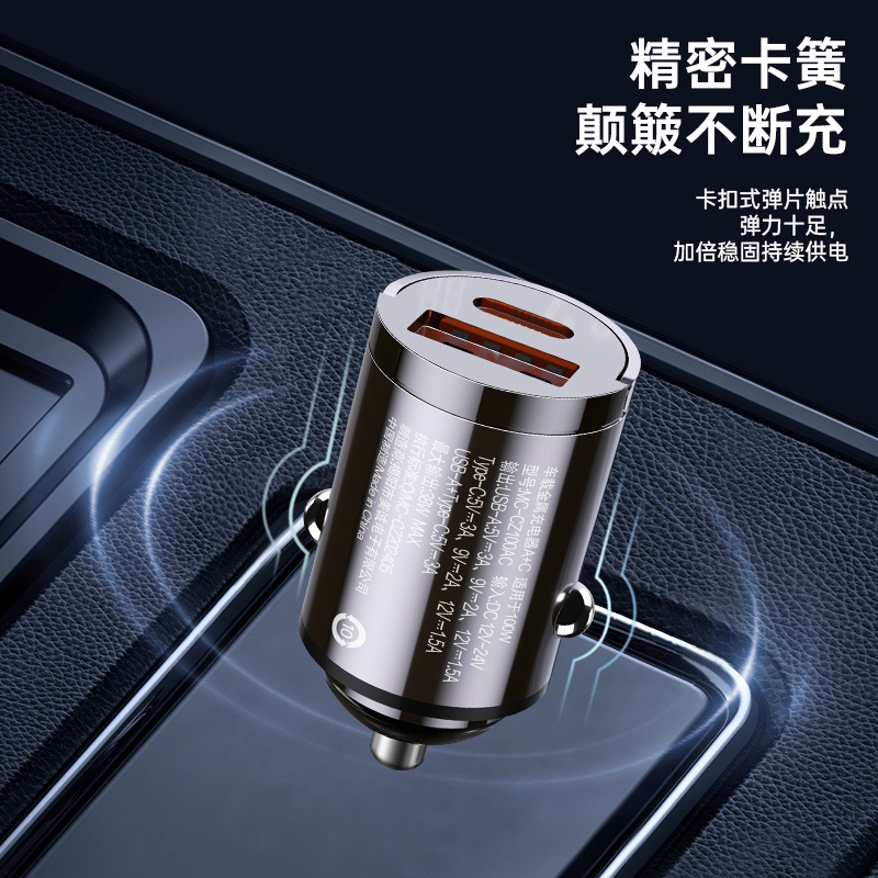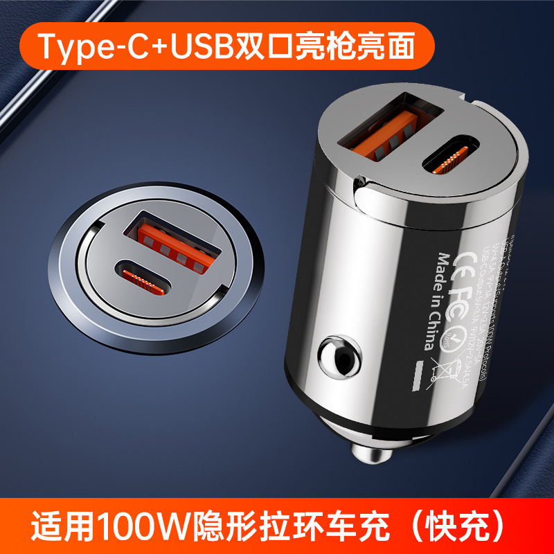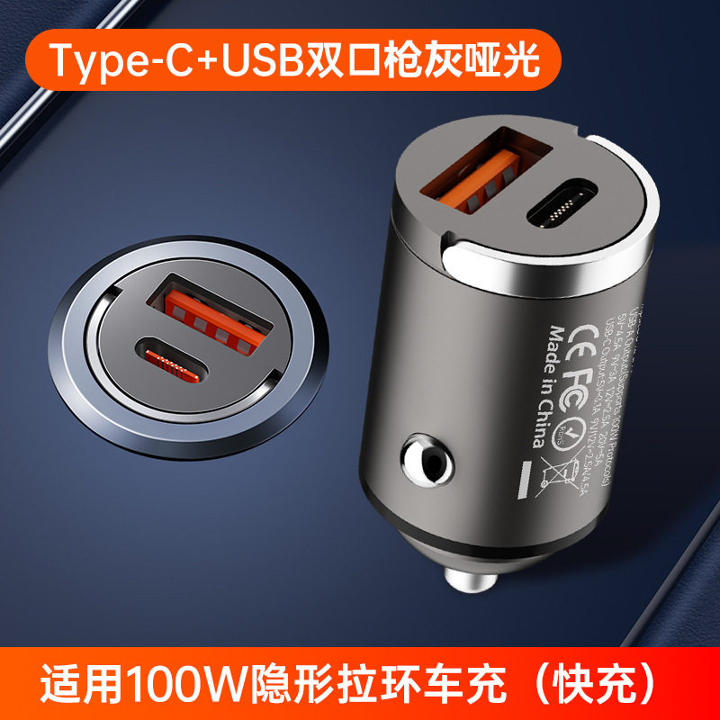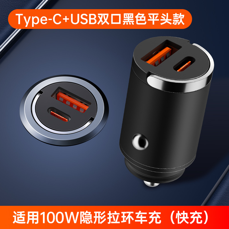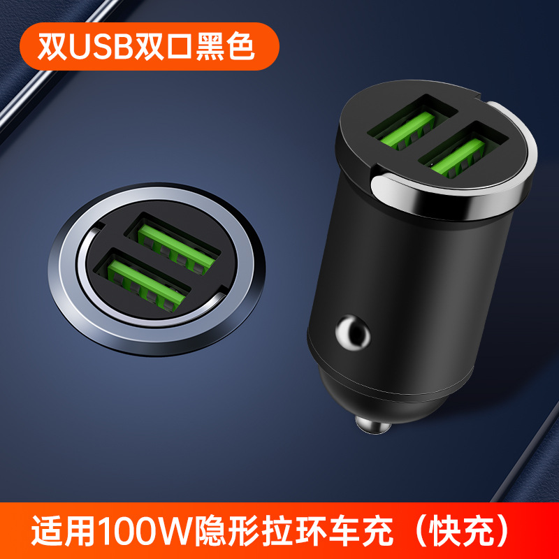 车载充电器适用100W超级快充隐形拉环车充汽车用手机充电器点烟器