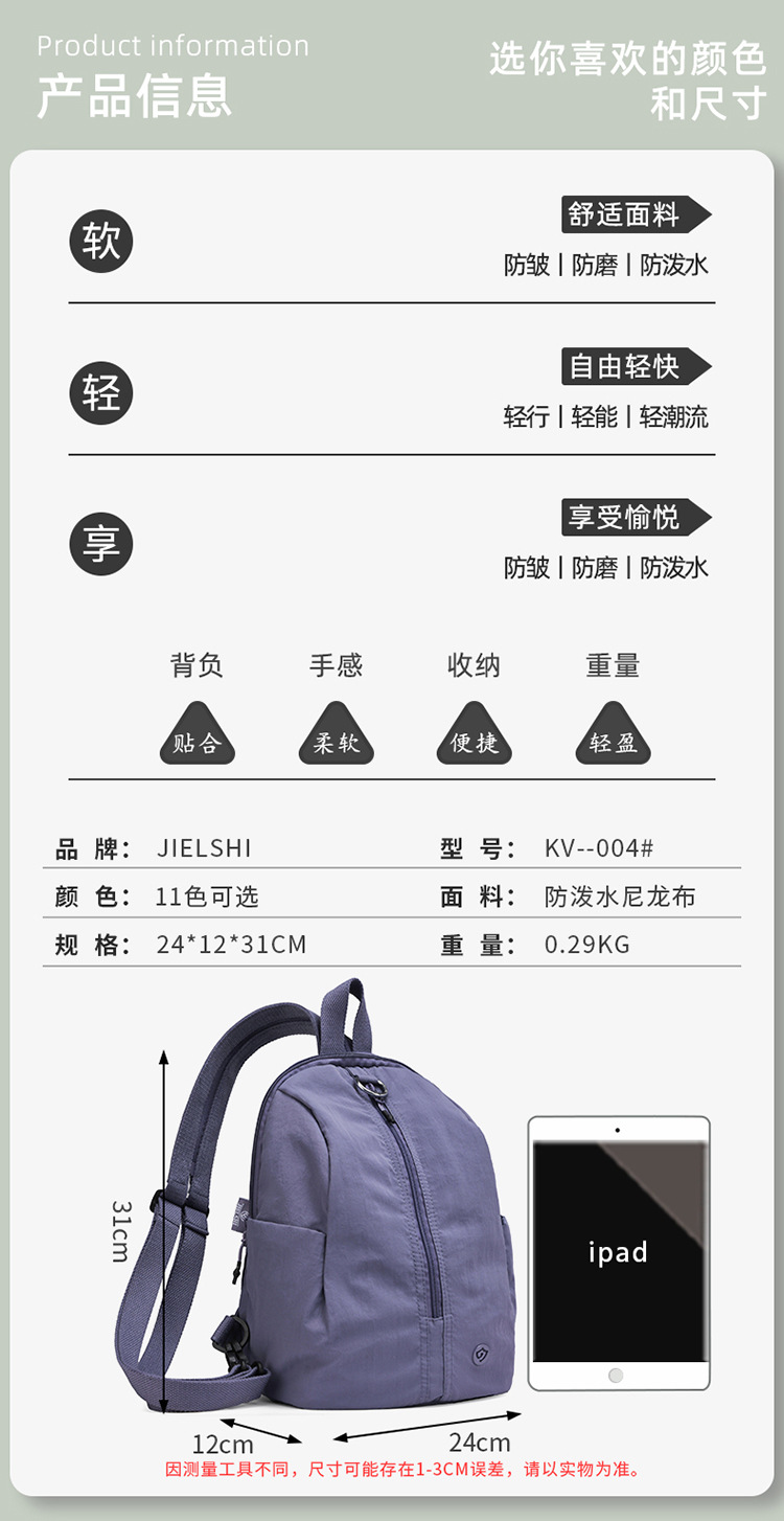 大容量学生书包轻便防泼水尼龙布新款女双肩包潮流逛街多功能胸包
