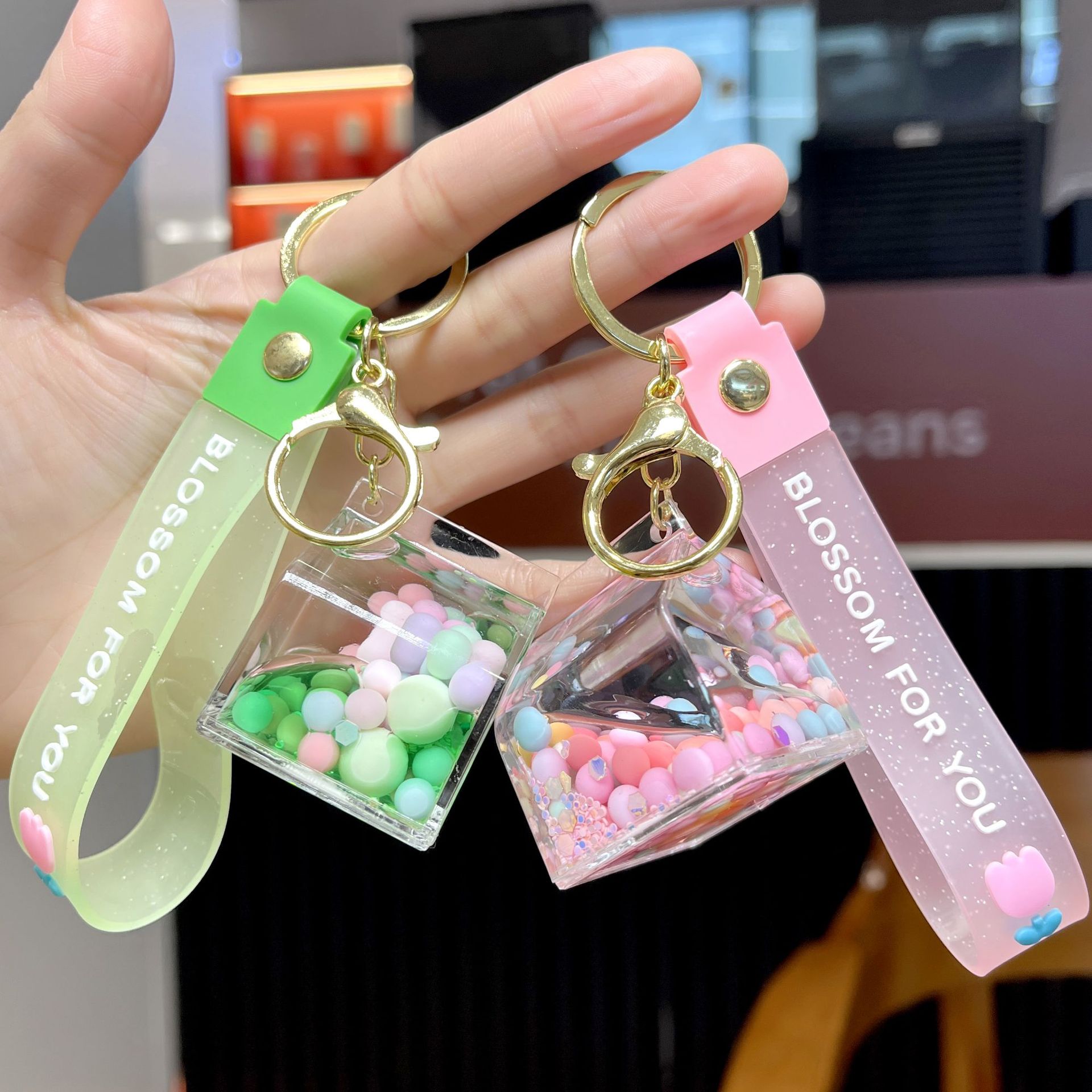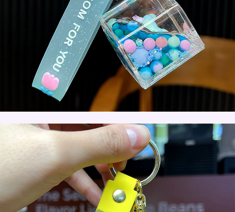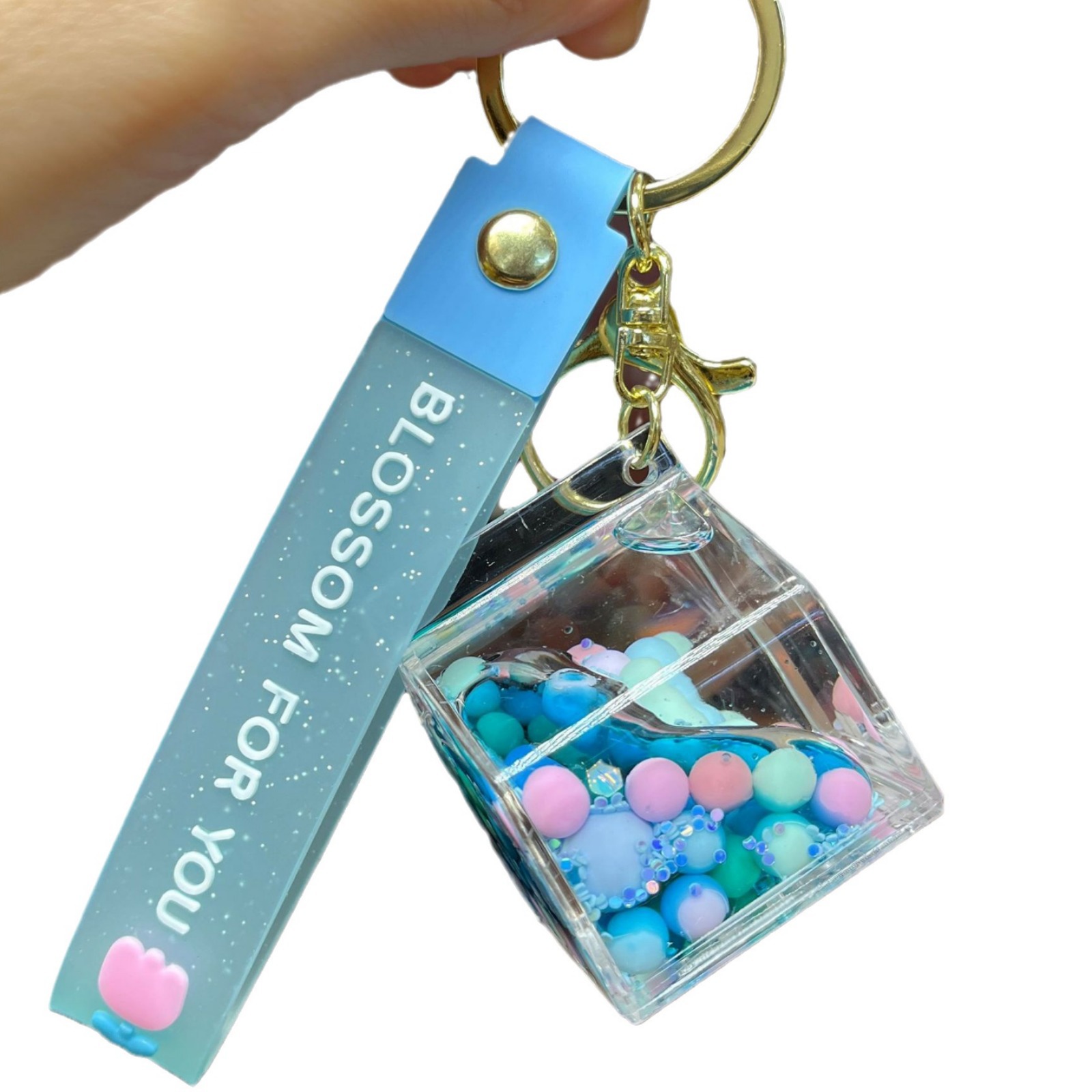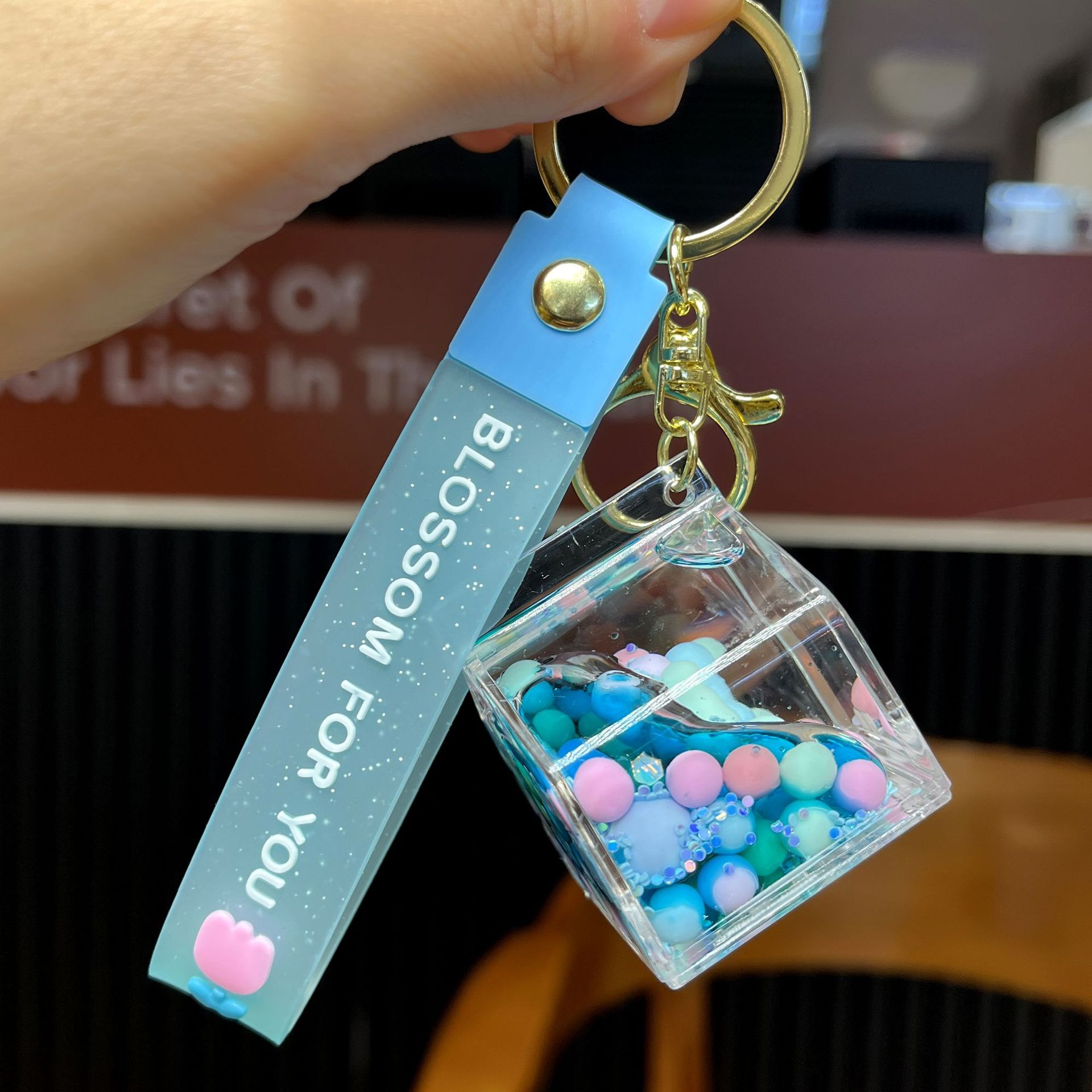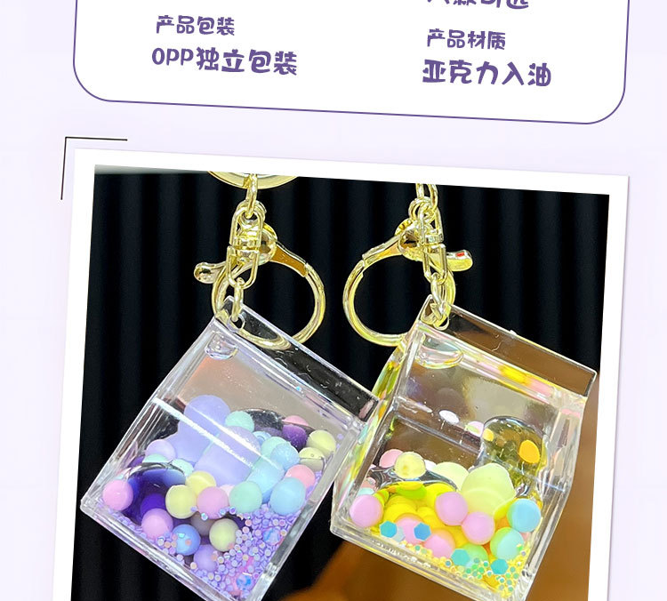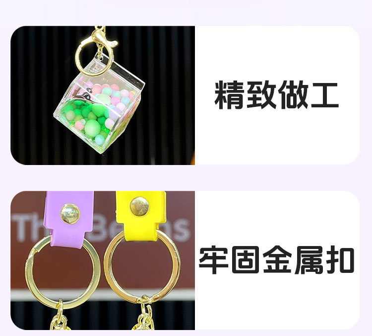创意入油亚克力糖豆房子钥匙扣牛奶盒流沙瓶挂件可爱挂饰礼品批发