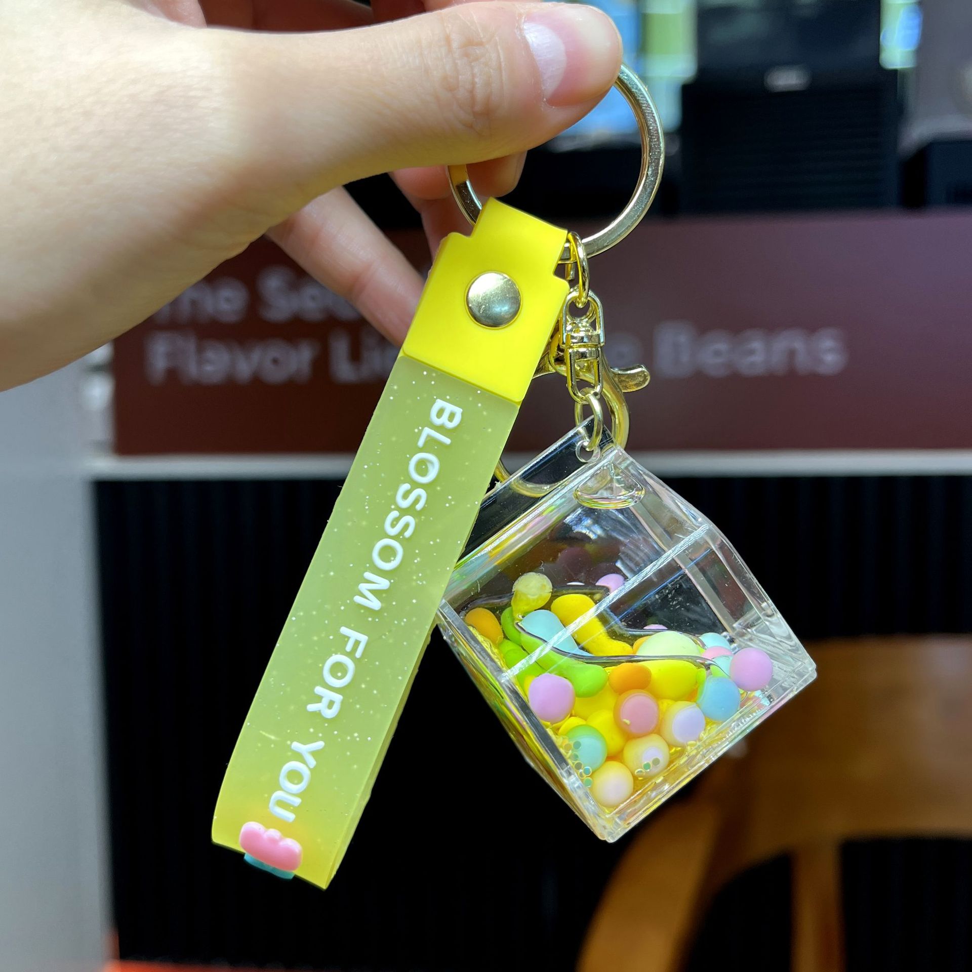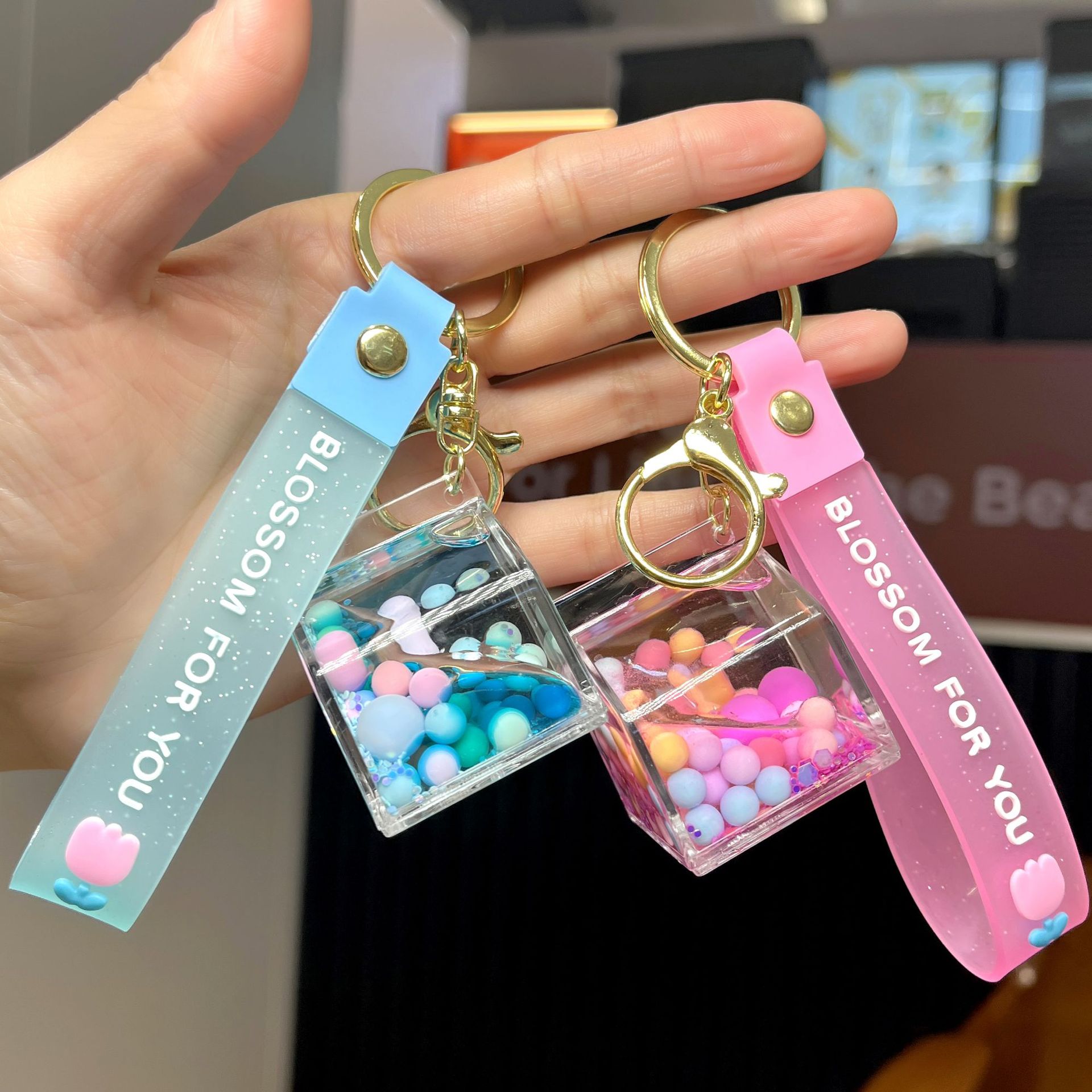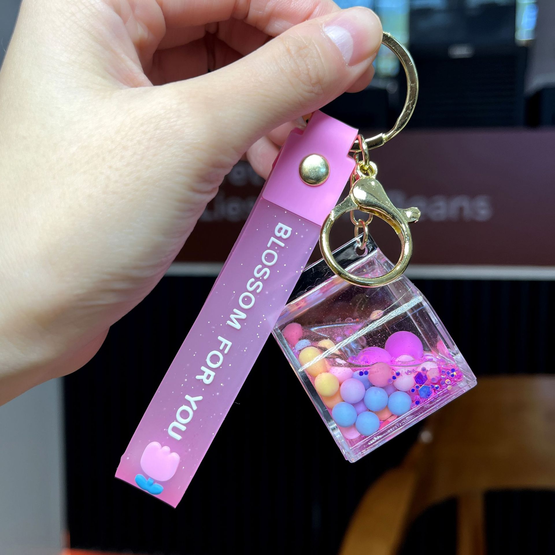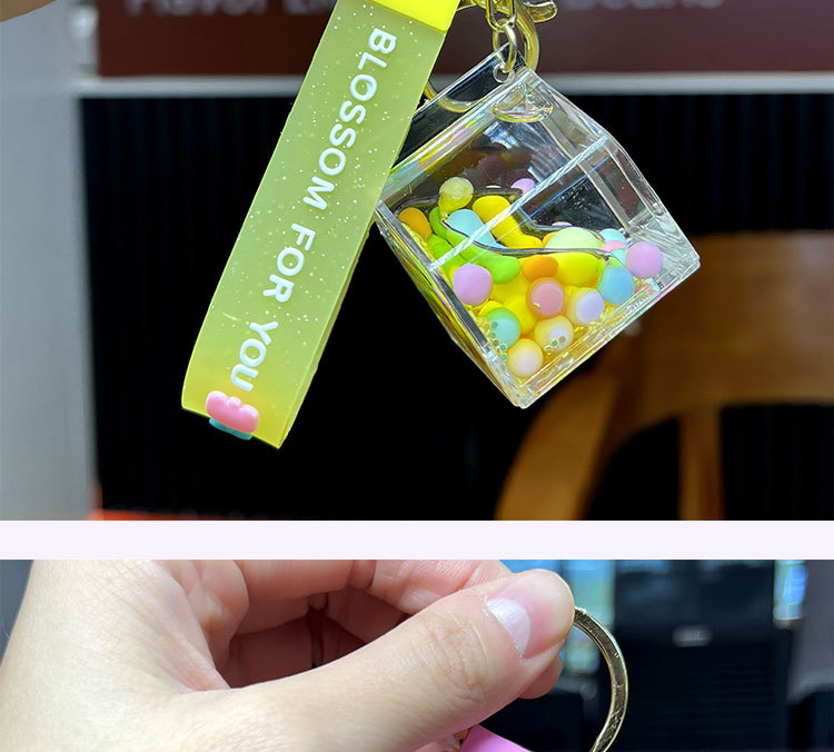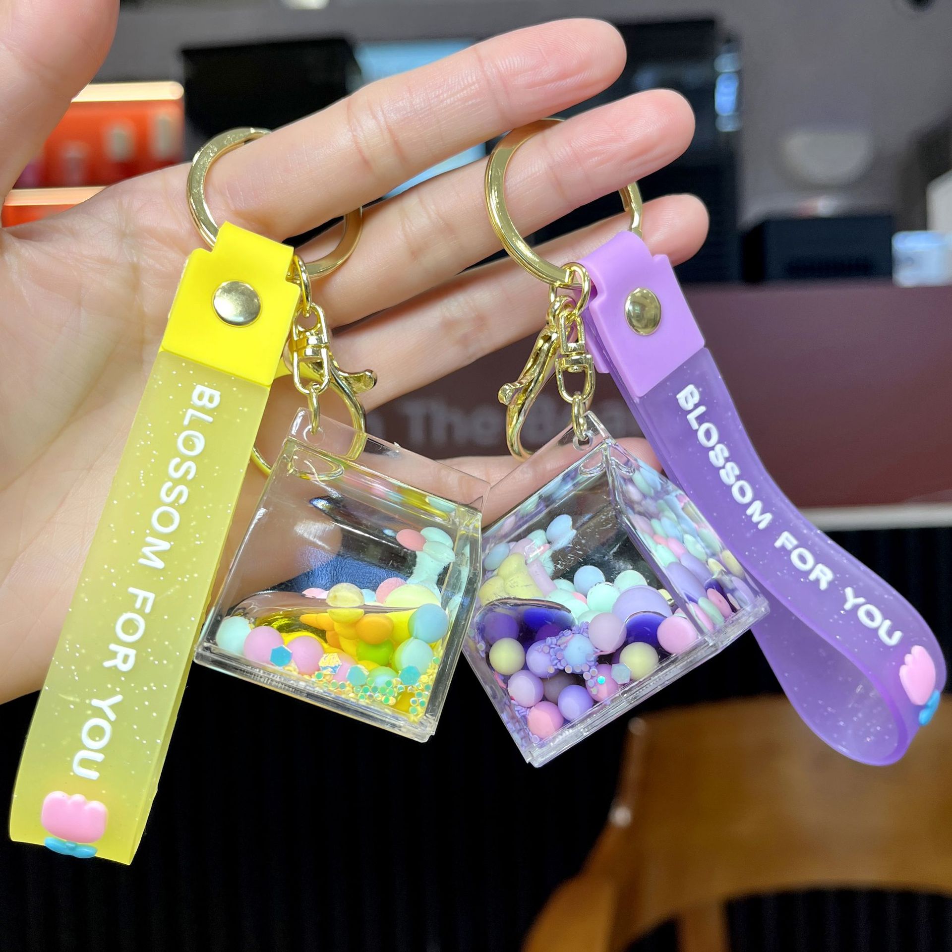 创意入油亚克力糖豆房子钥匙扣牛奶盒流沙瓶挂件可爱挂饰礼品批发