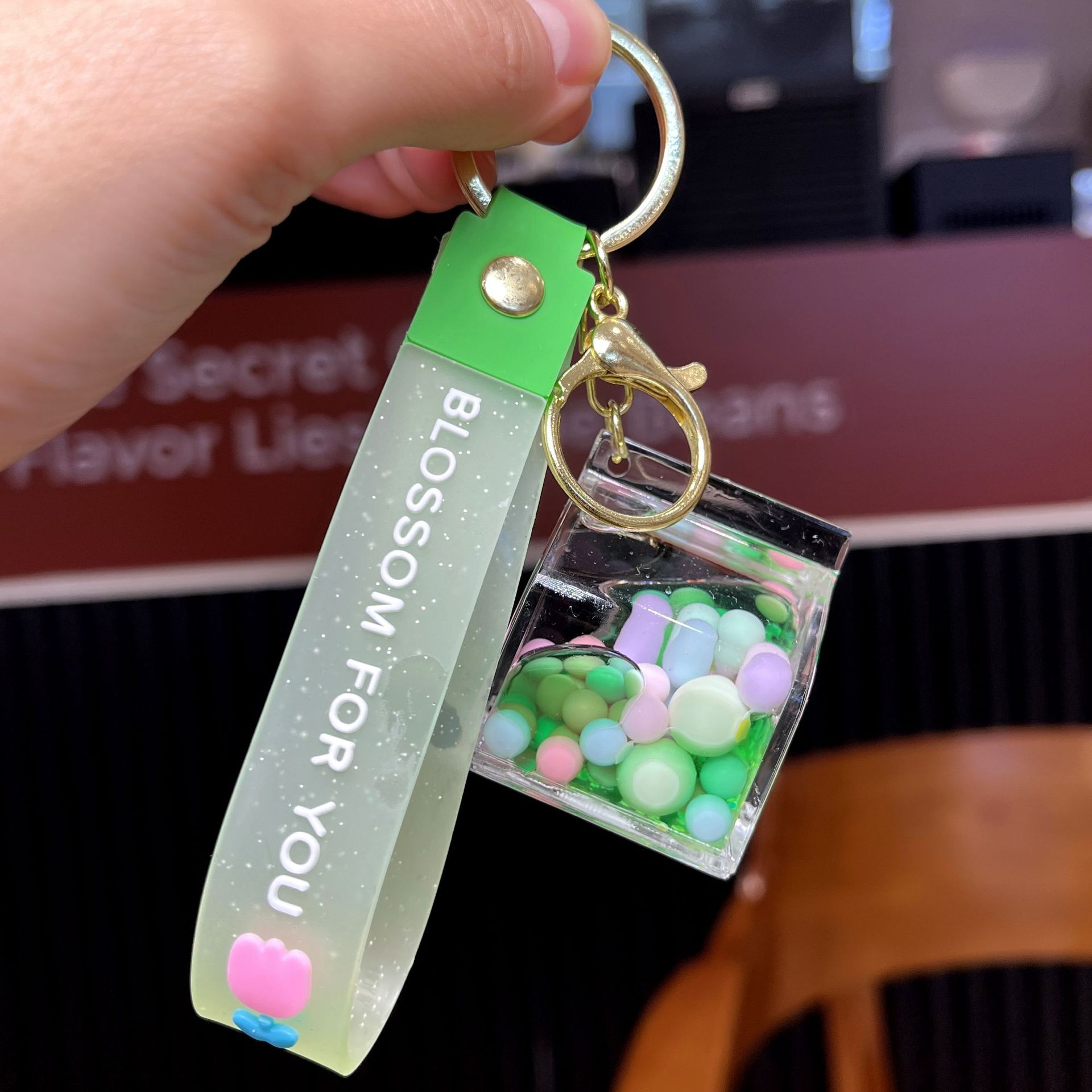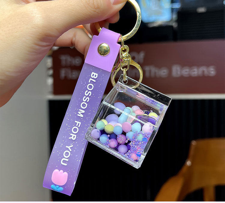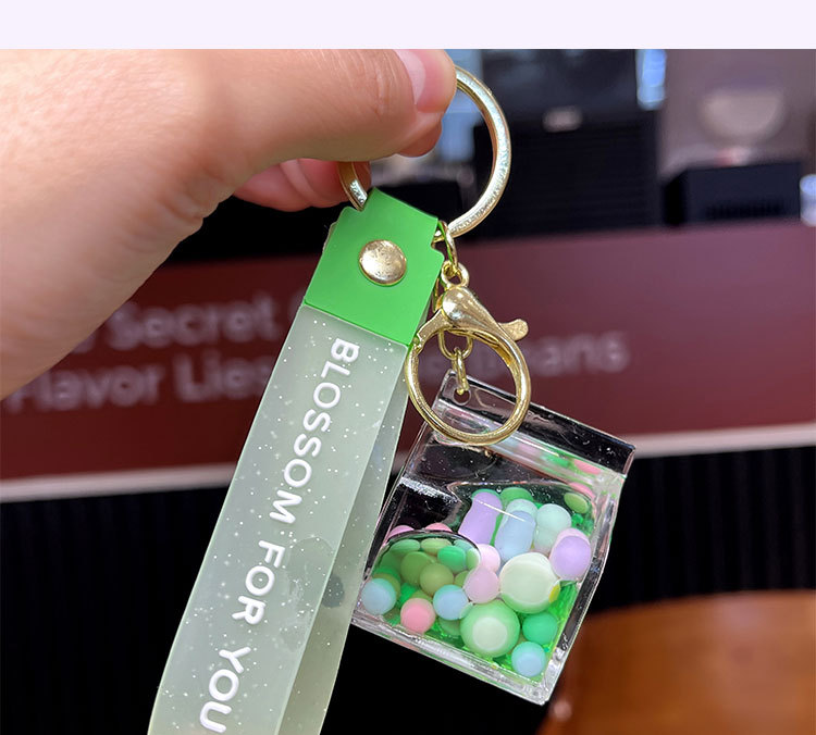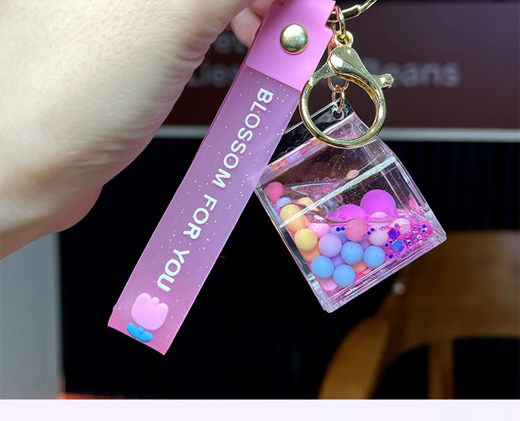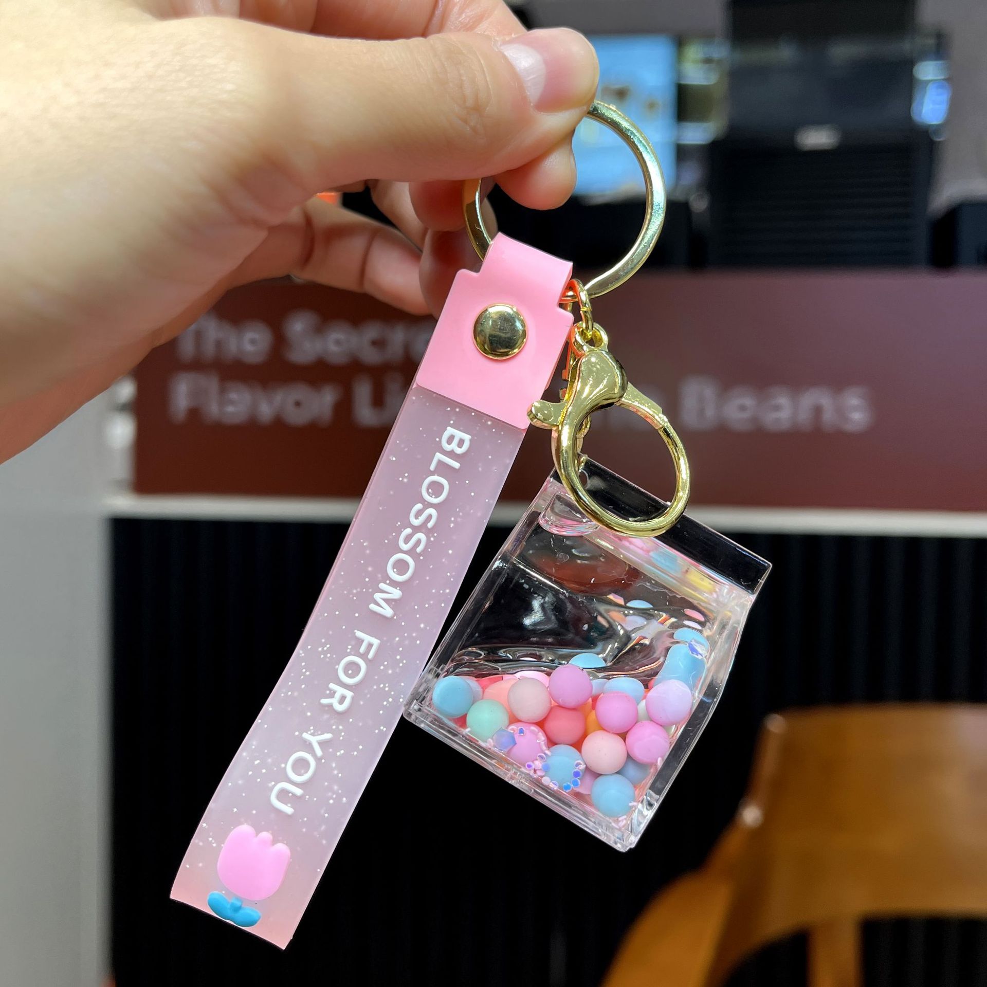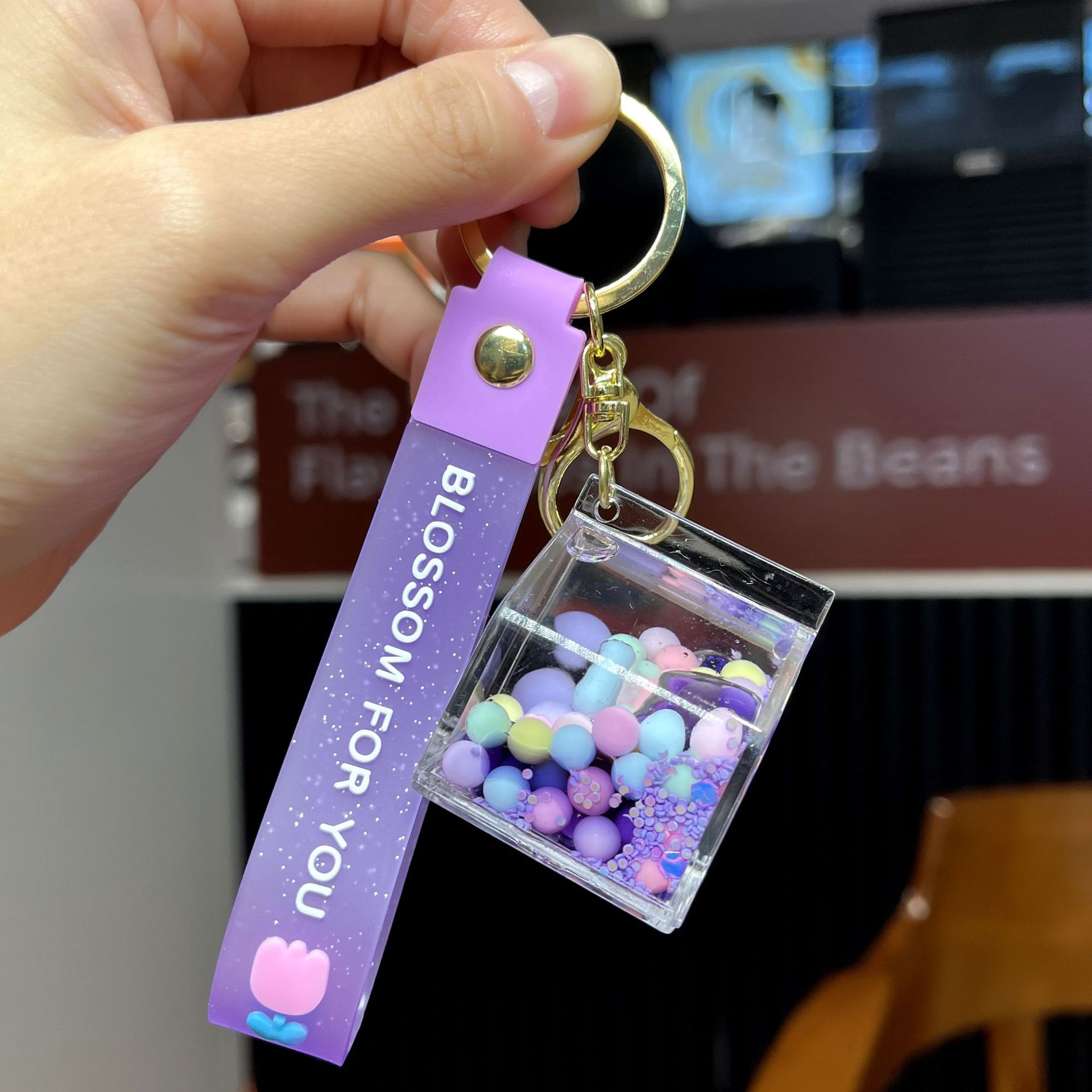 创意入油亚克力糖豆房子钥匙扣牛奶盒流沙瓶挂件可爱挂饰礼品批发