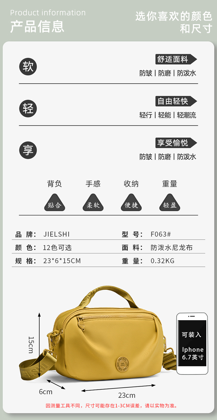 轻便防泼水尼龙布包百搭逛街斜挎包新款女士单肩包休闲出行手提包