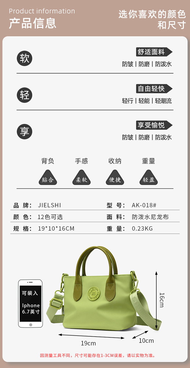 潮流出行斜挎轻便防泼水尼龙布新女单肩包休闲逛街小手机包手提包