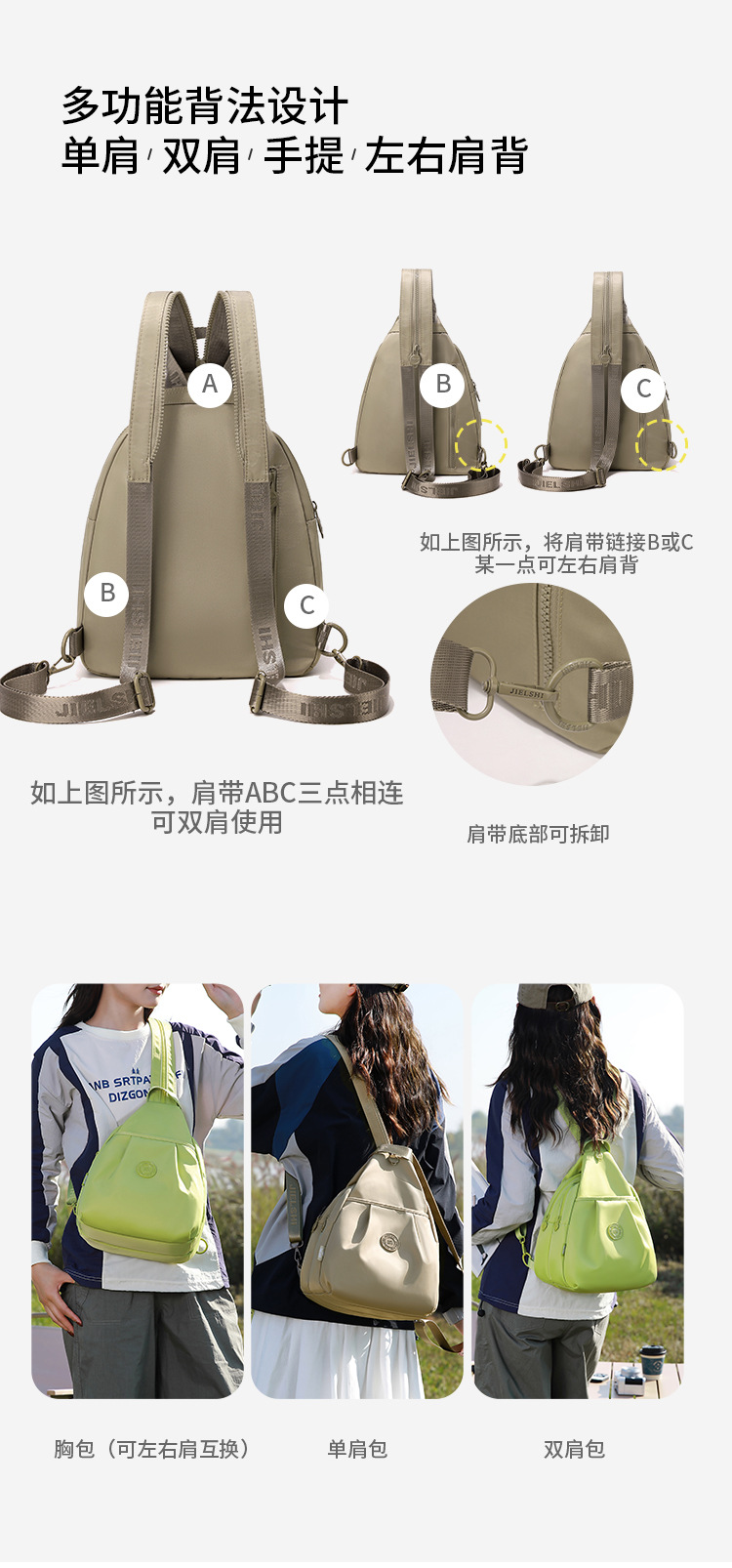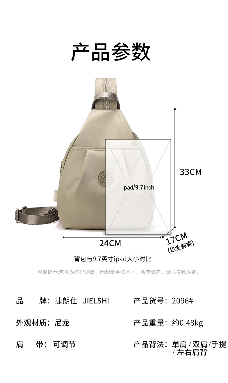 轻便防泼水尼龙布包百搭单肩背包大容量女士双肩包多功能防盗胸包