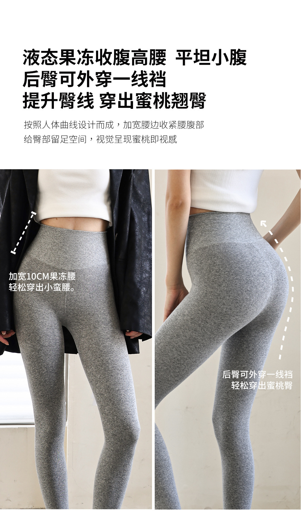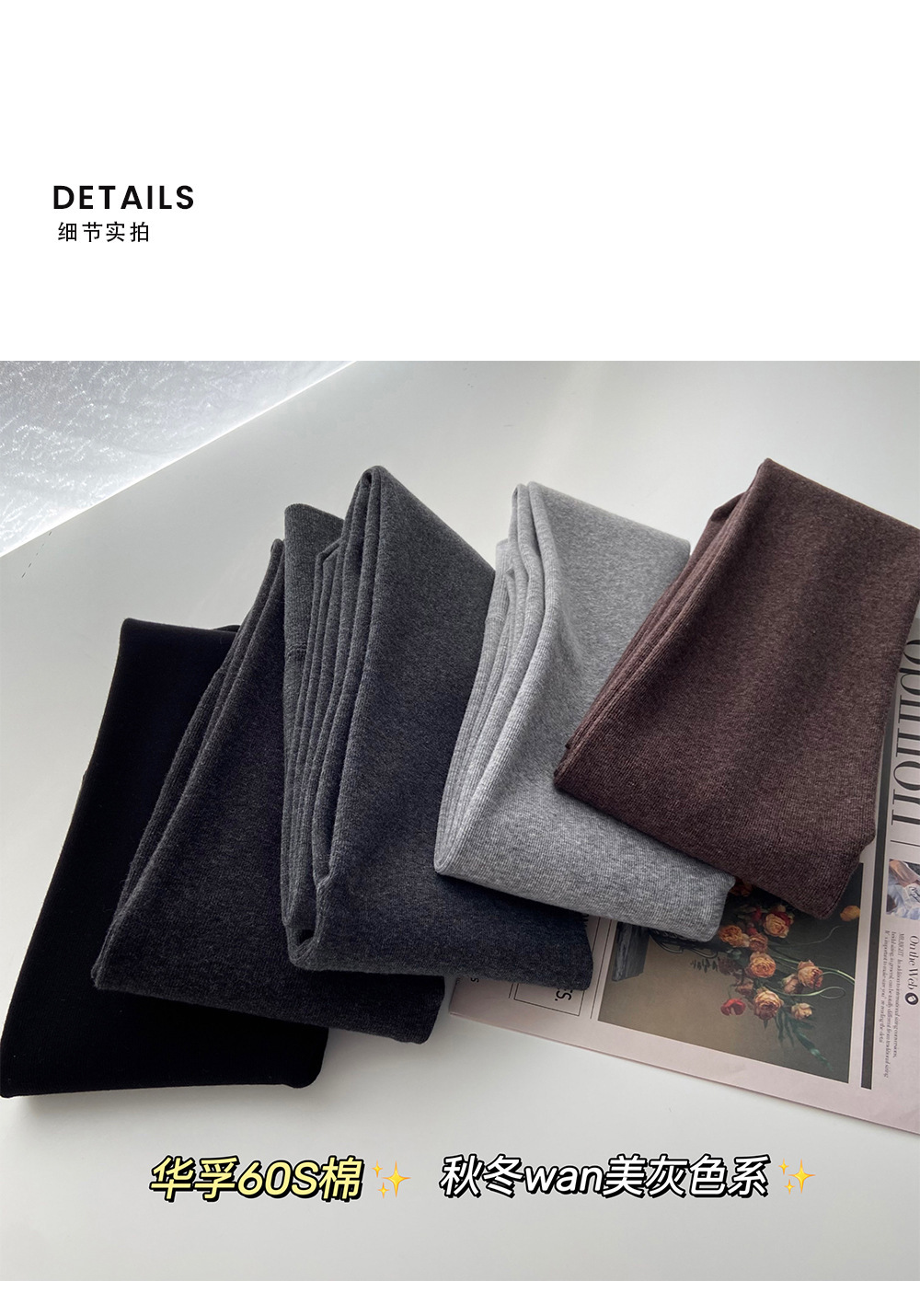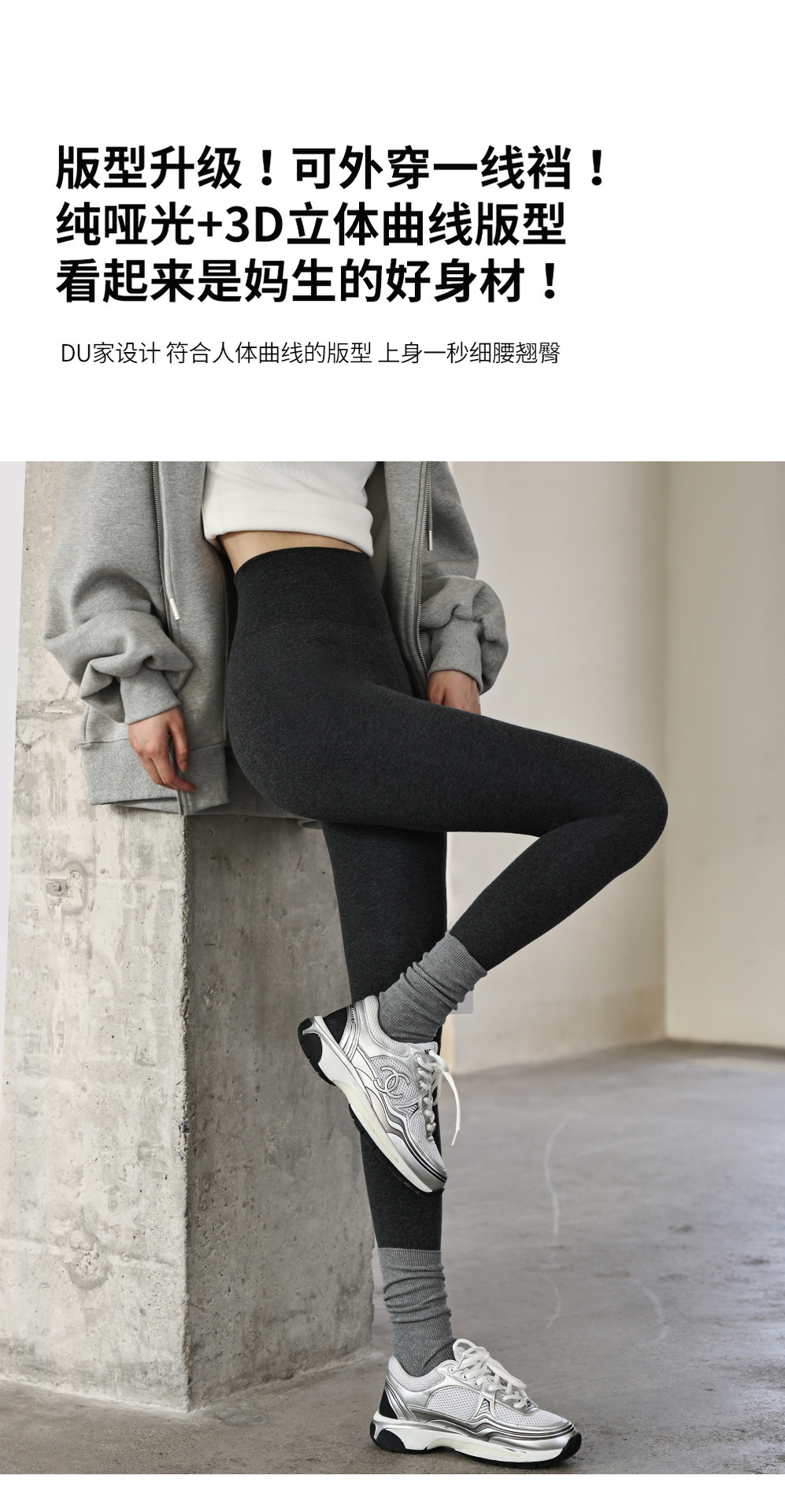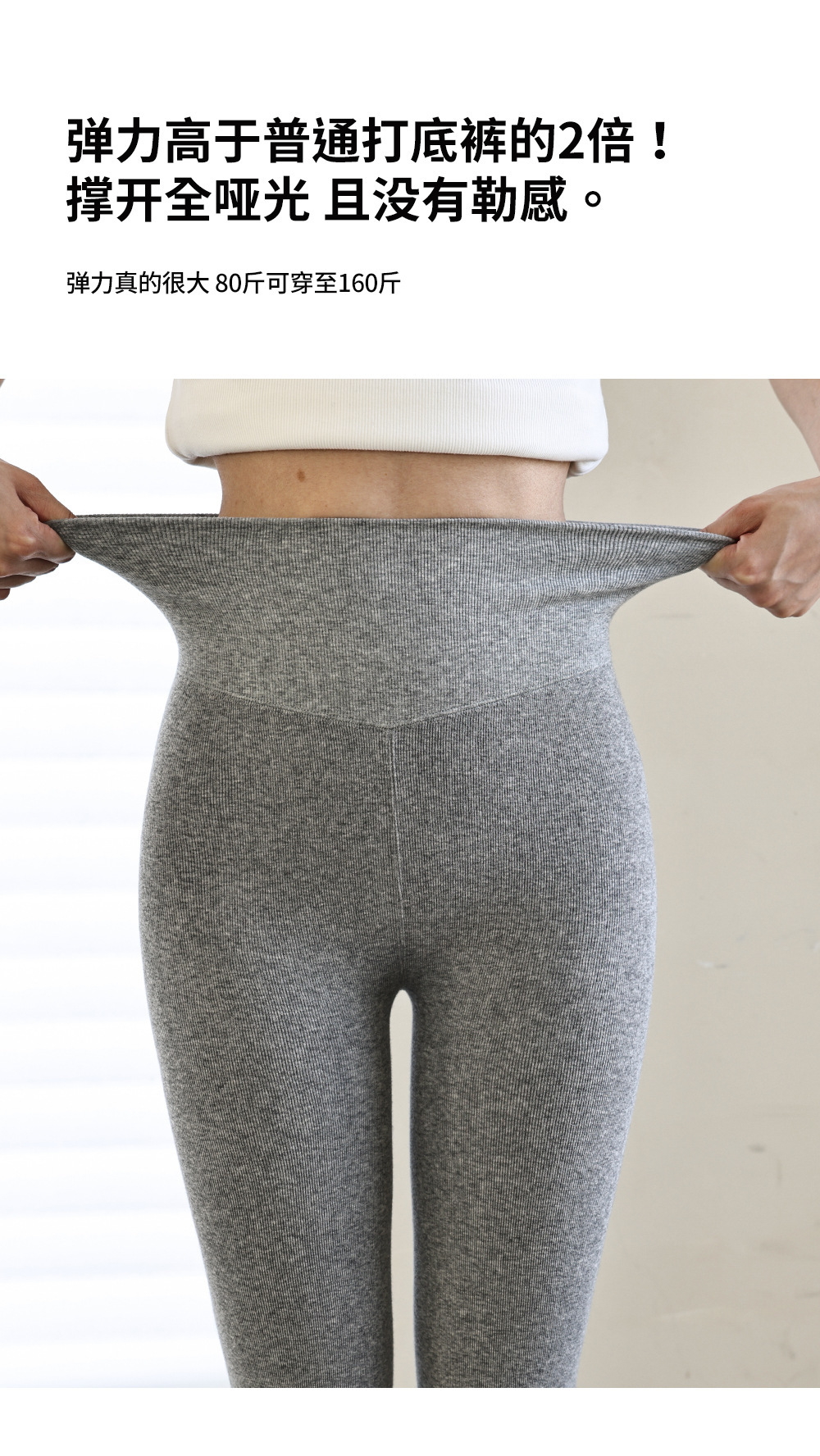 秋冬加绒打底连裤袜女金棉显瘦微压外穿加厚保暖浅灰色春秋连脚袜