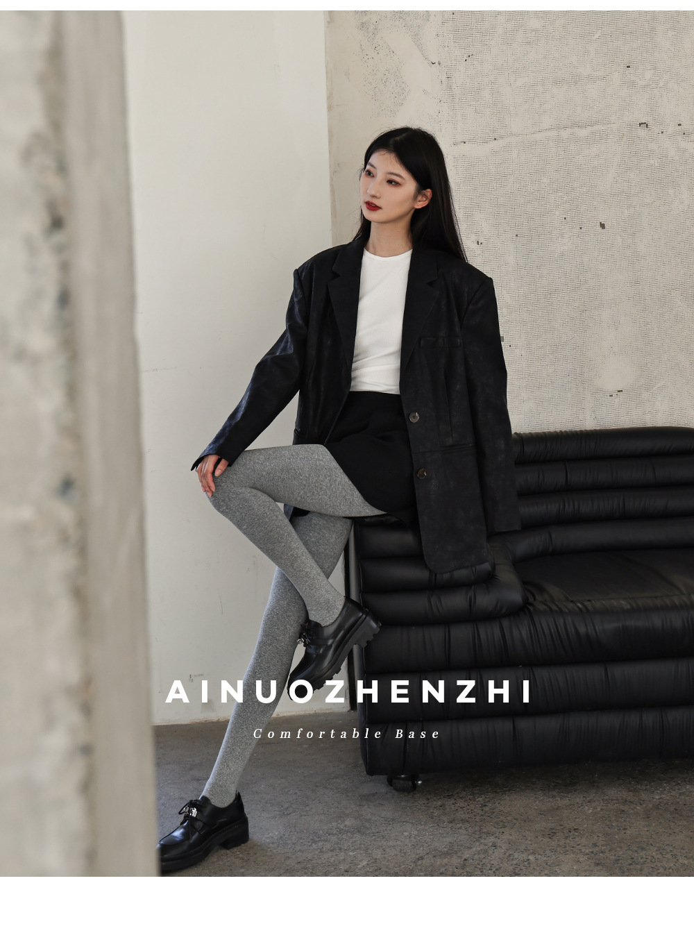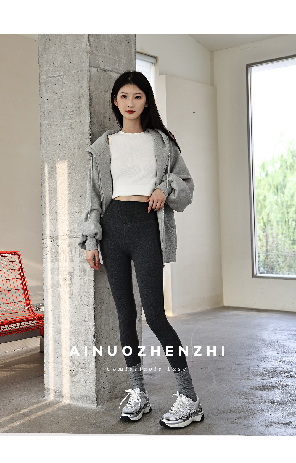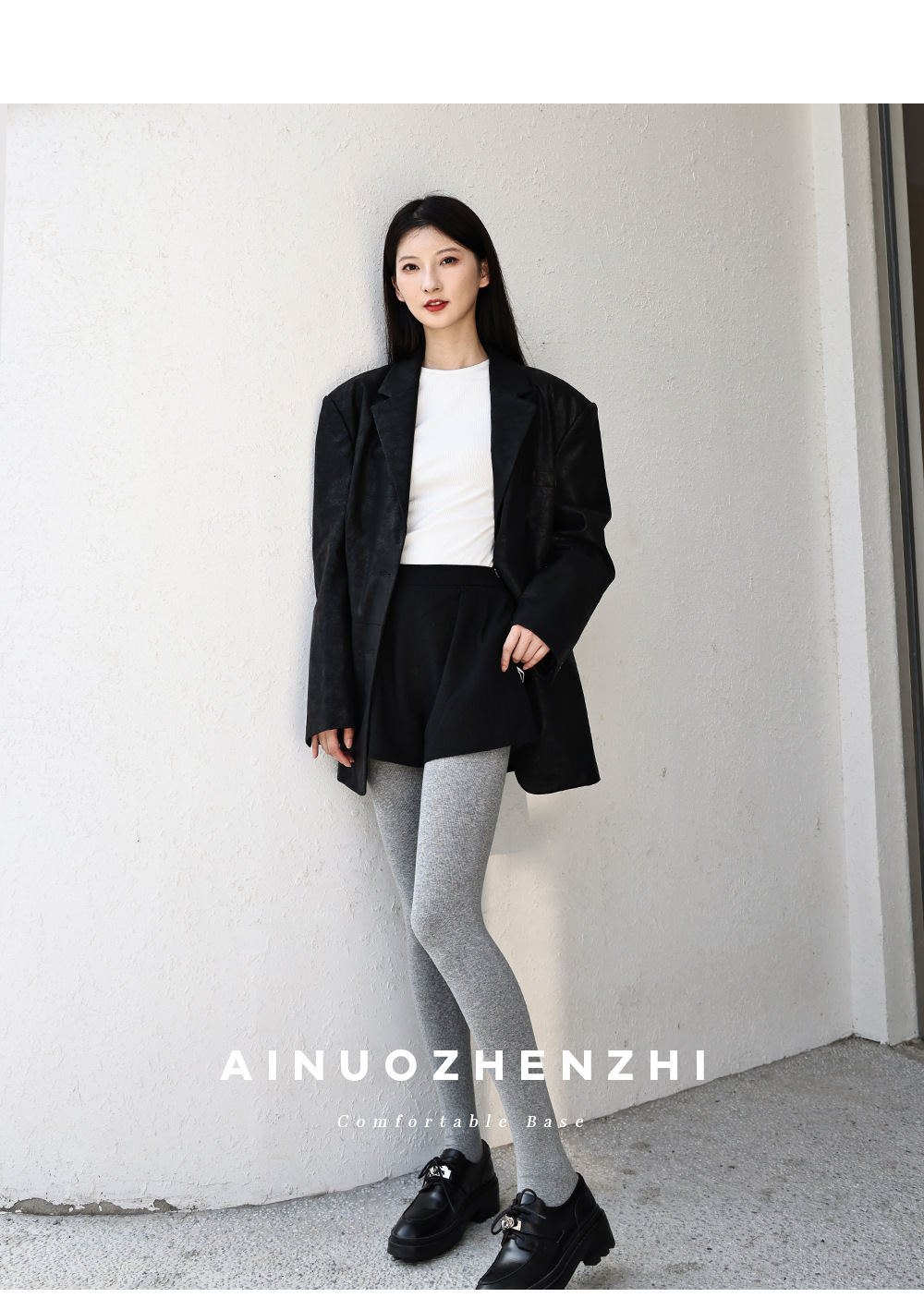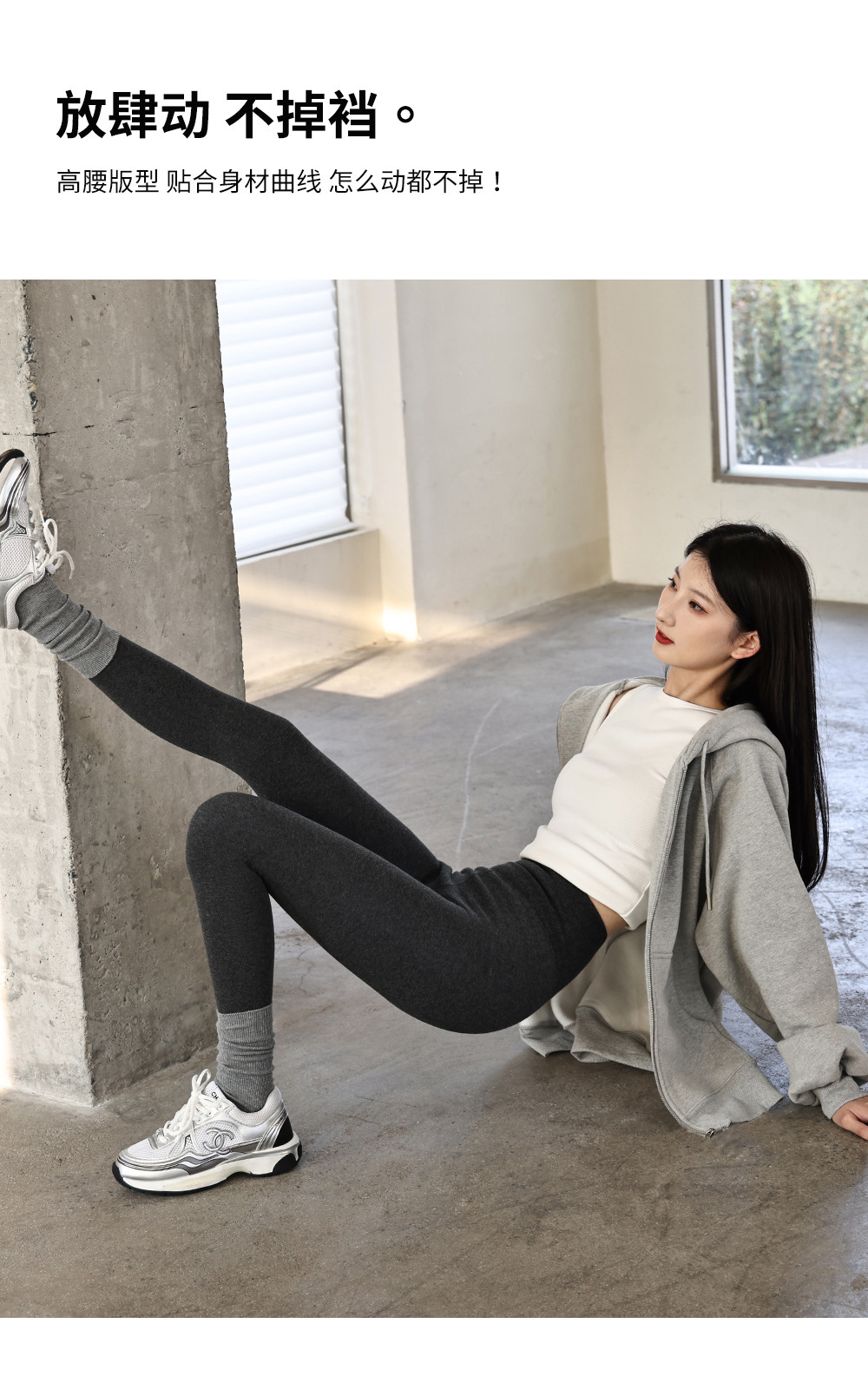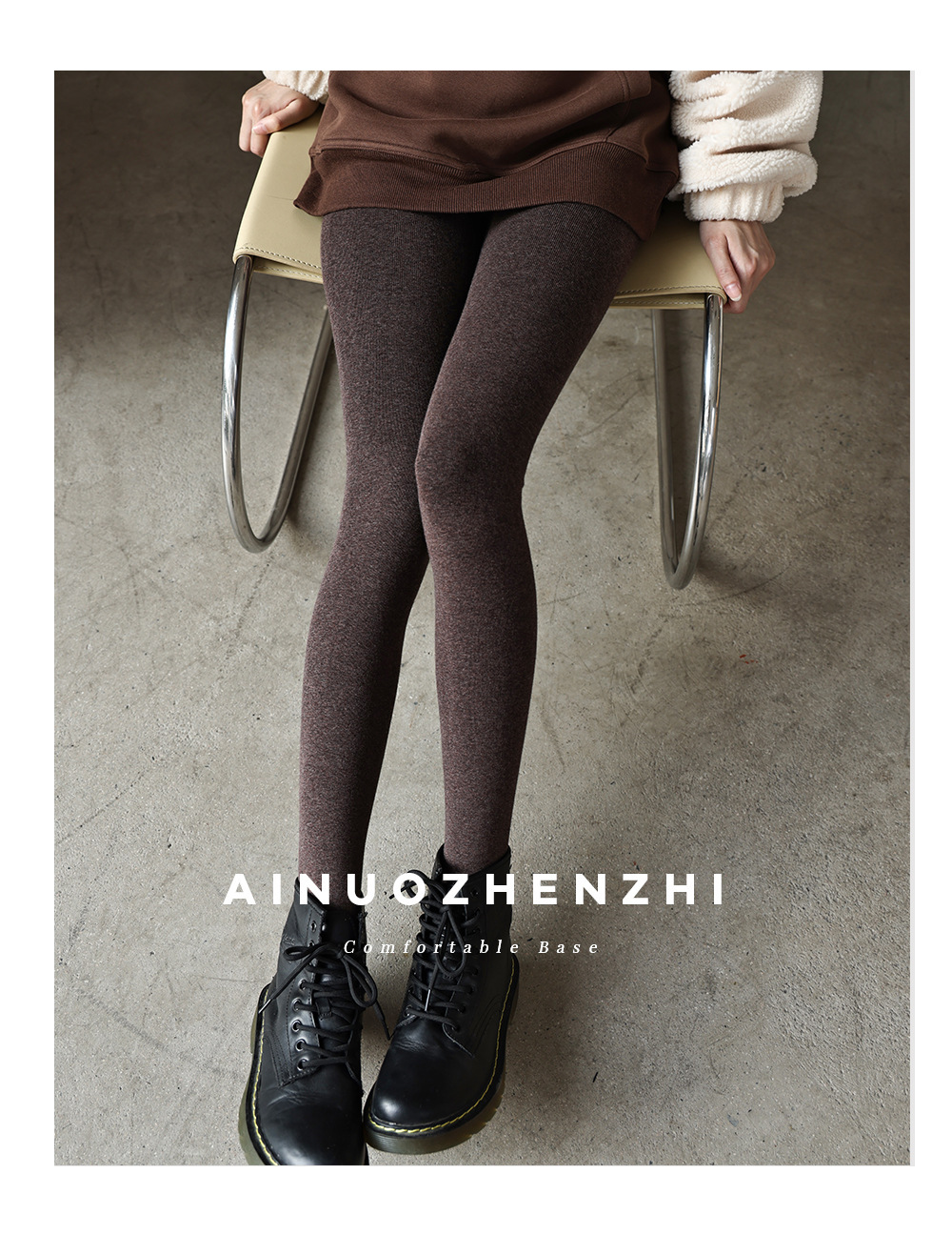 秋冬加绒打底连裤袜女金棉显瘦微压外穿加厚保暖浅灰色春秋连脚袜