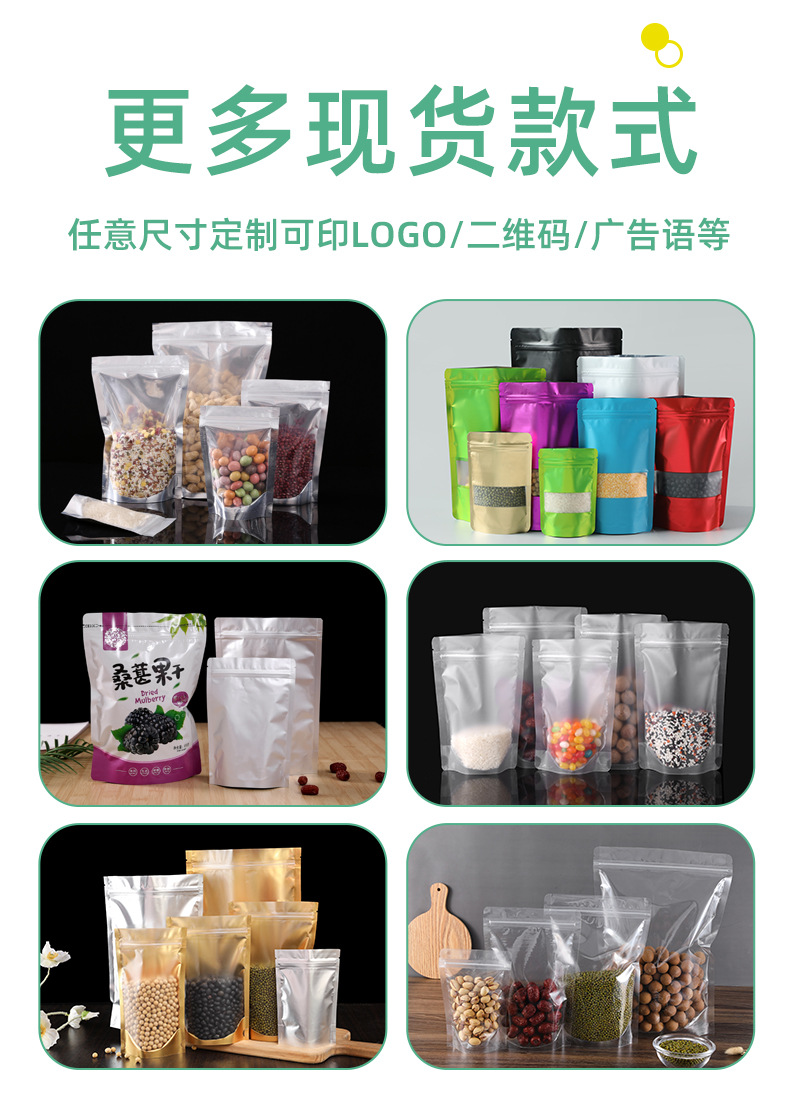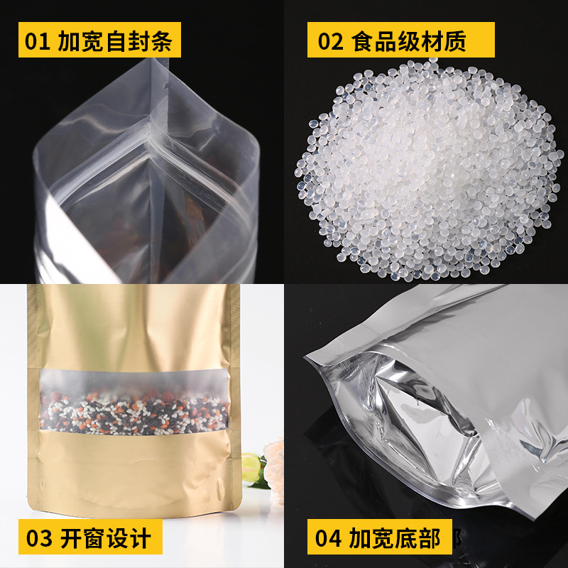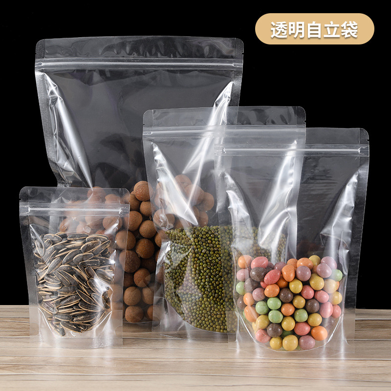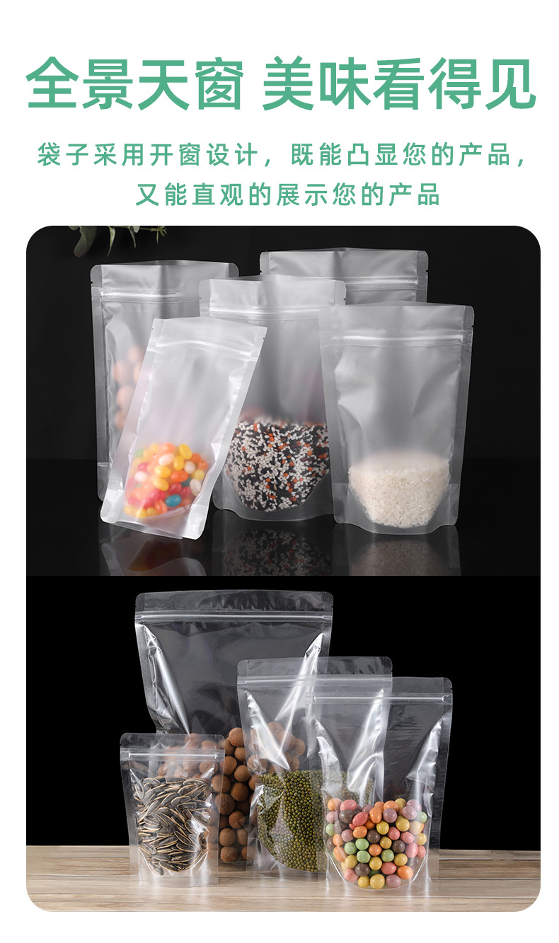 加厚透明自立自封袋零食干果五谷杂粮花茶密封开窗食品包装自立袋