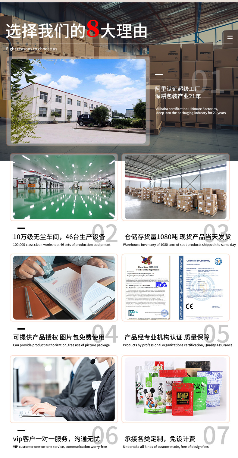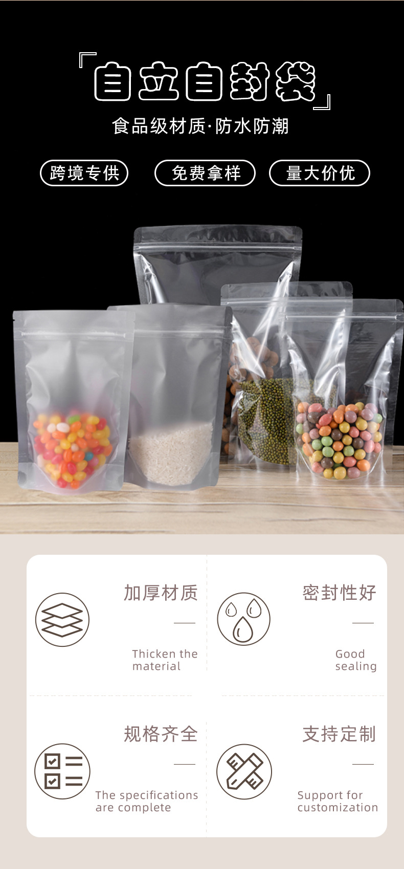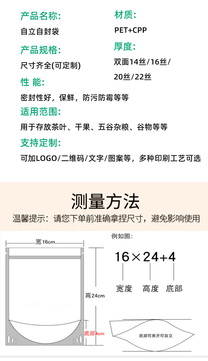 加厚透明自立自封袋零食干果五谷杂粮花茶密封开窗食品包装自立袋