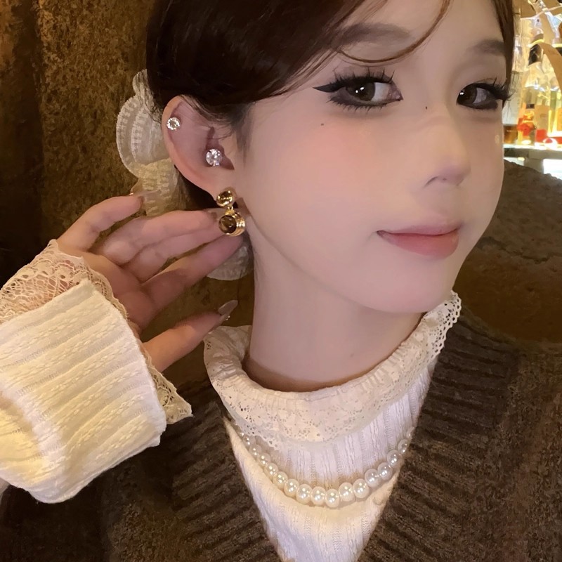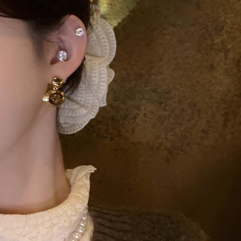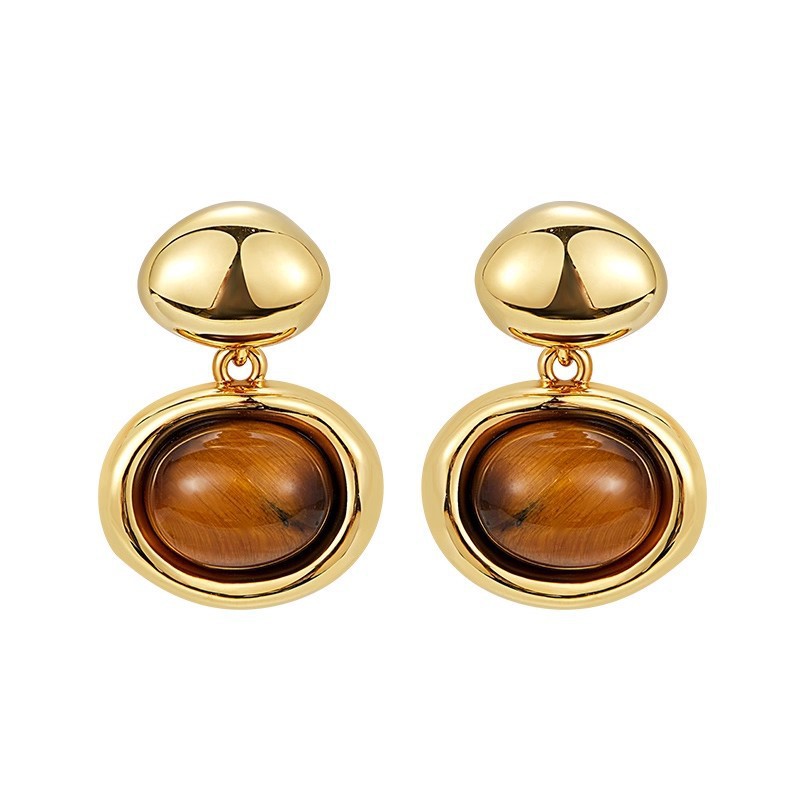 饰品耳环美拉德复古天然石耳饰波西米亚虎眼石耳钉爆款高级感耳环