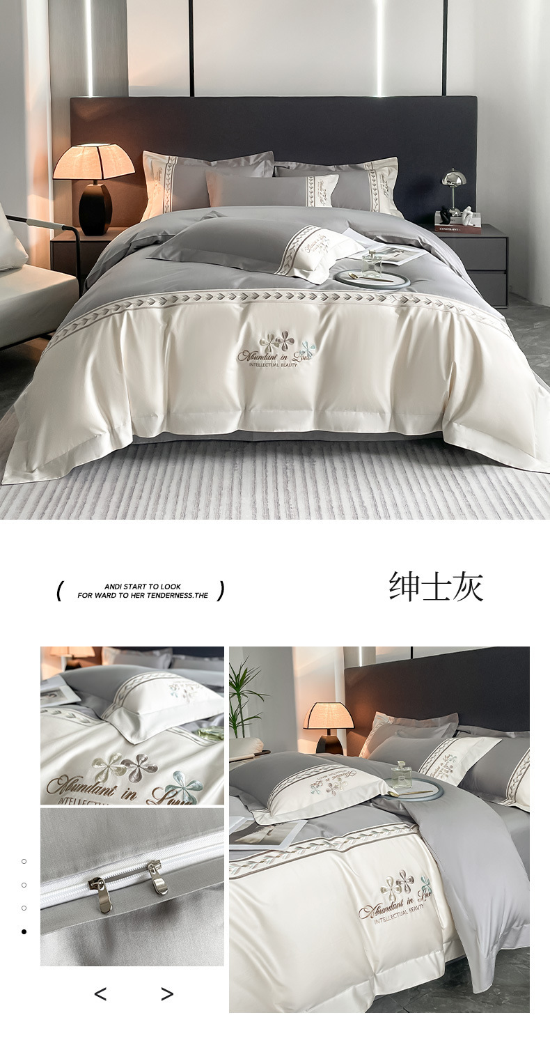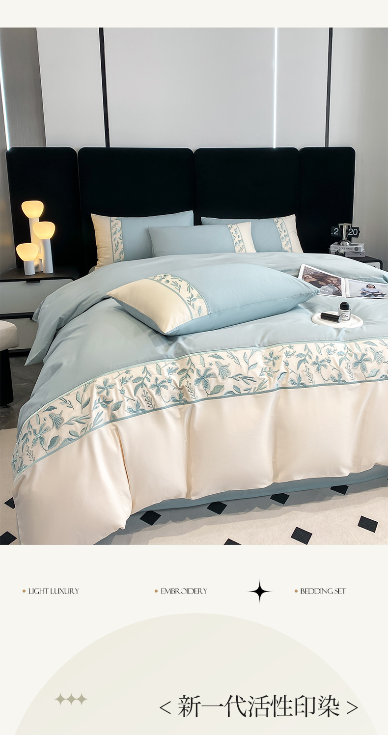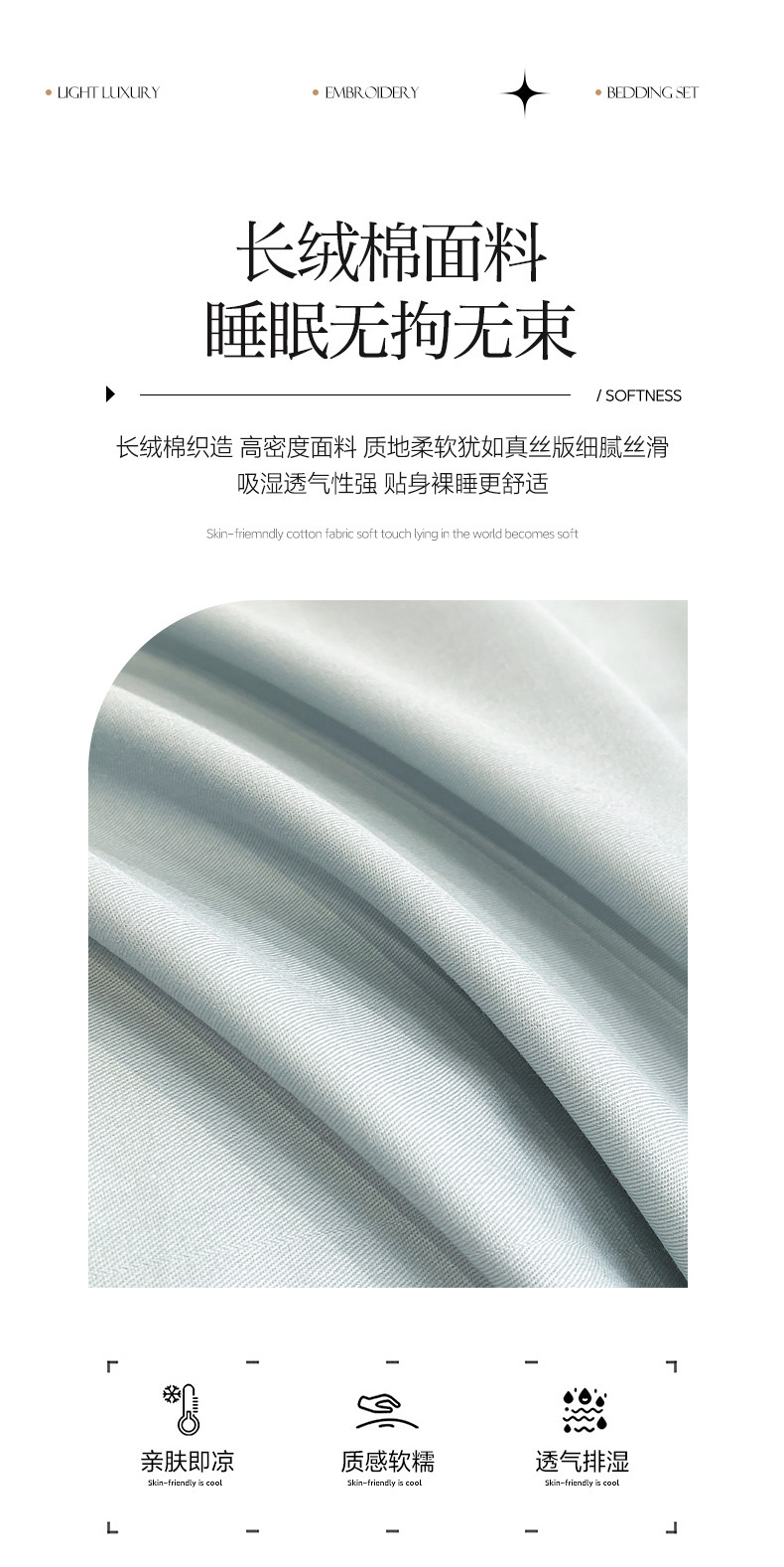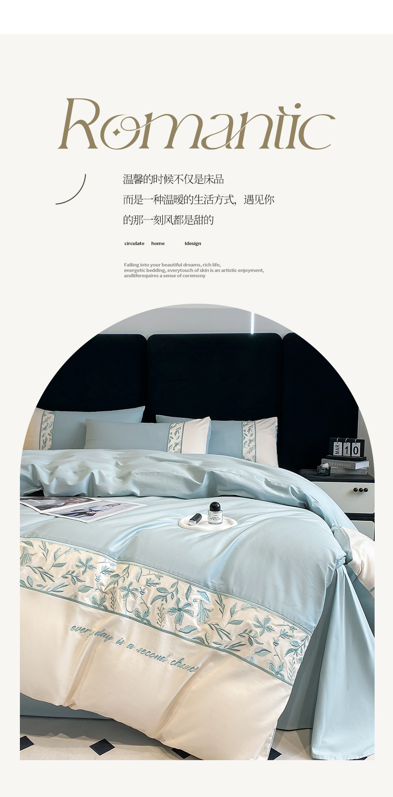 轻奢100支长绒棉四件套高级感纯棉床单被套全棉刺绣四季床上用品4