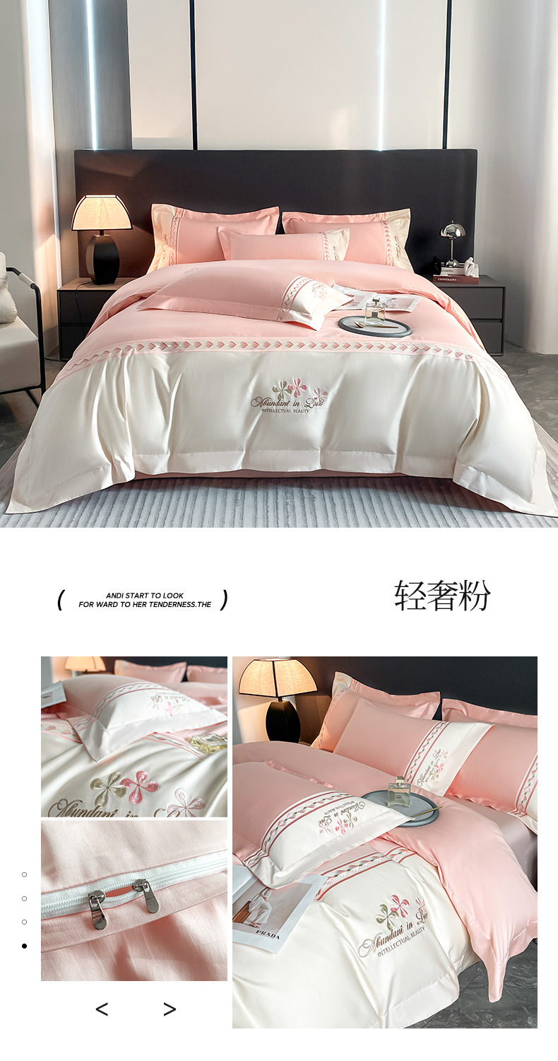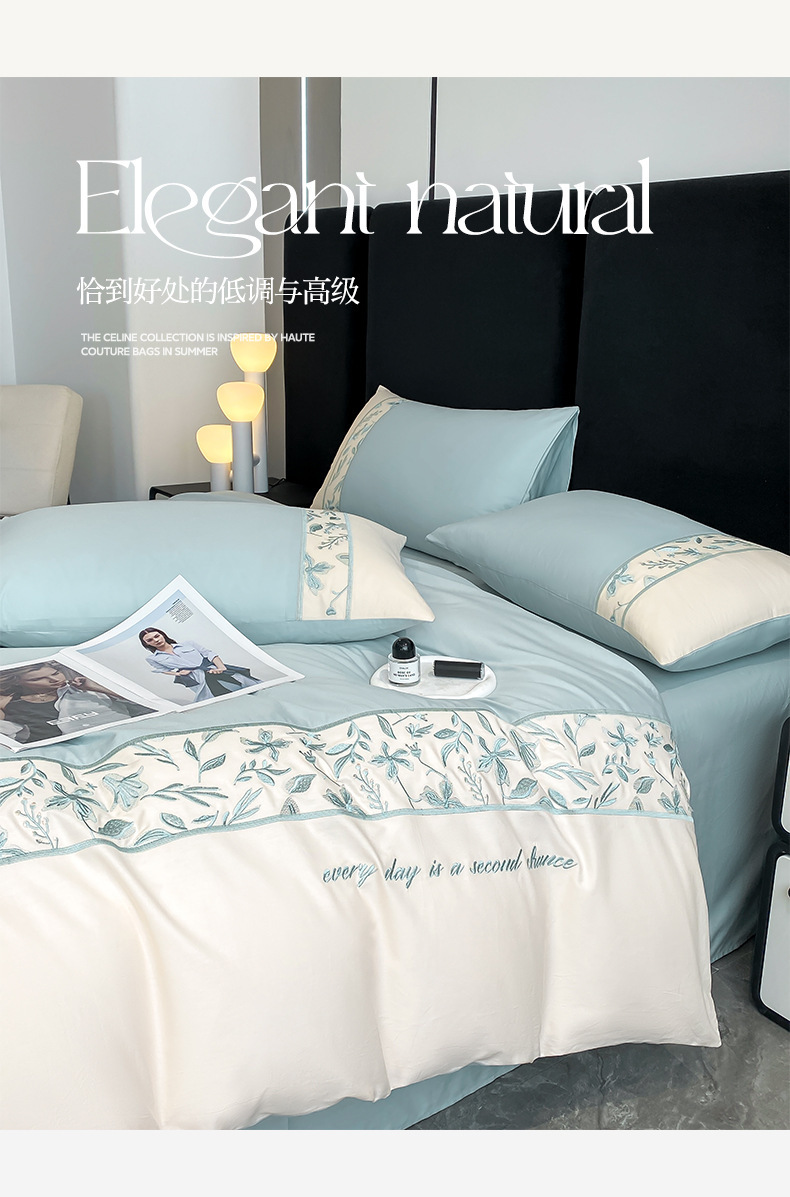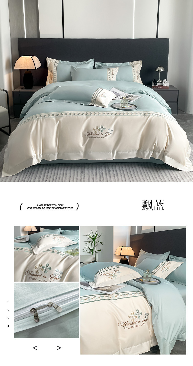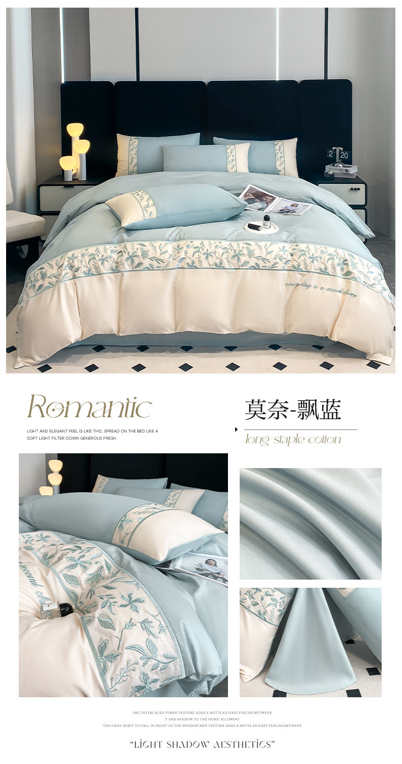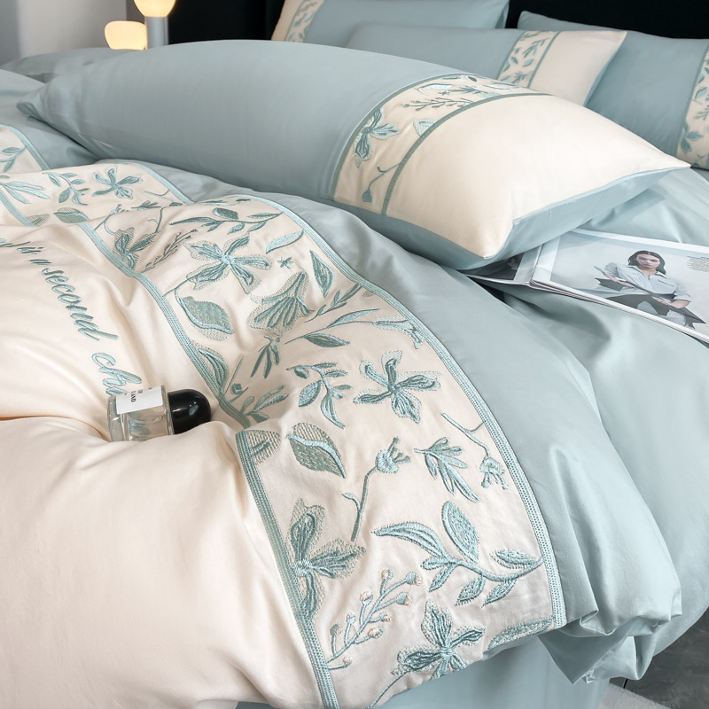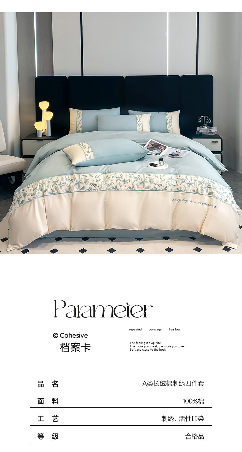 轻奢100支长绒棉四件套高级感纯棉床单被套全棉刺绣四季床上用品4
