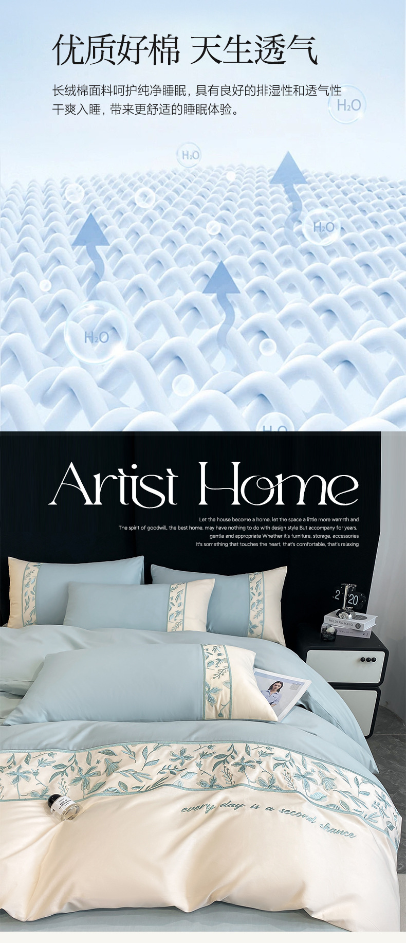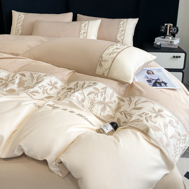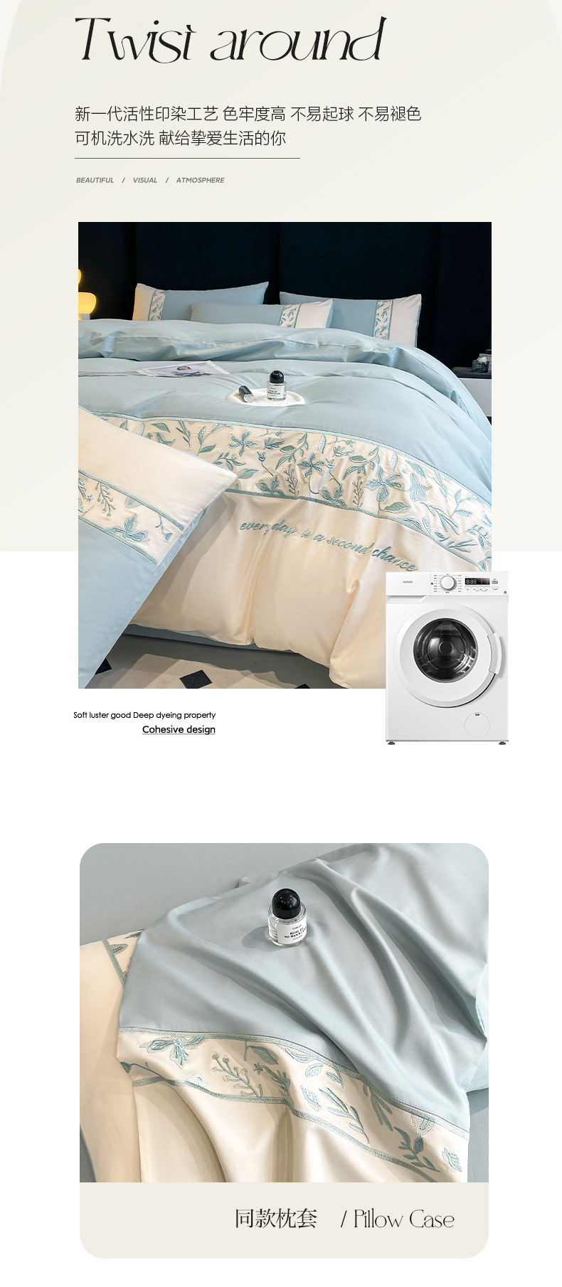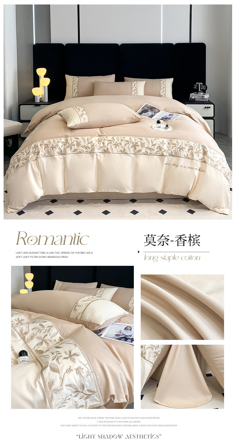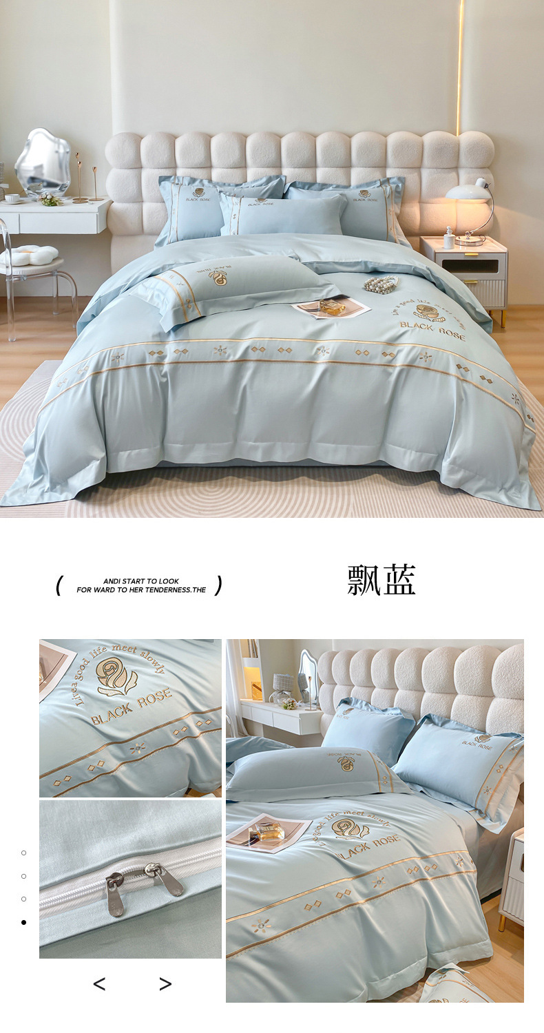 轻奢100支长绒棉四件套高级感纯棉床单被套全棉刺绣四季床上用品4