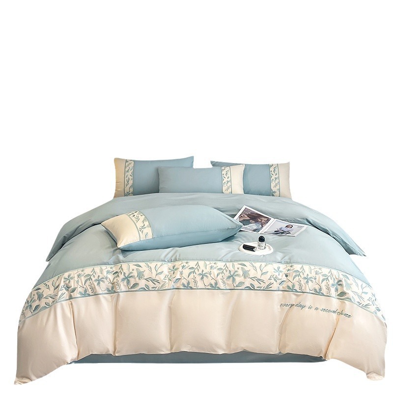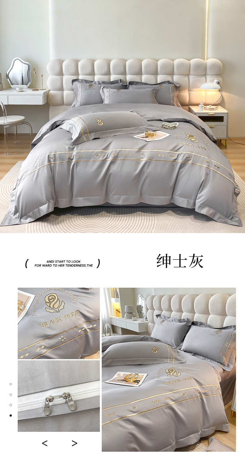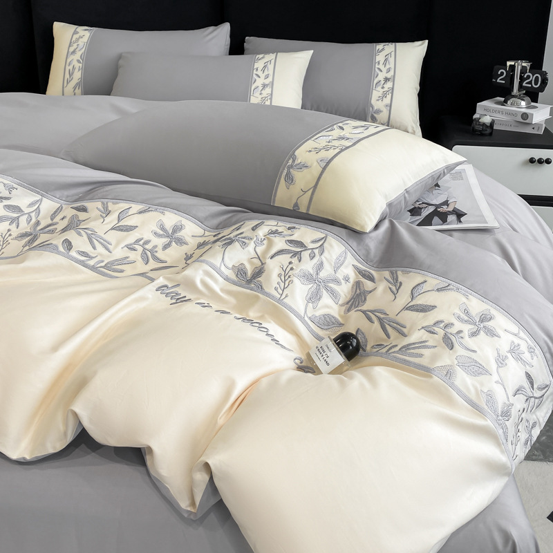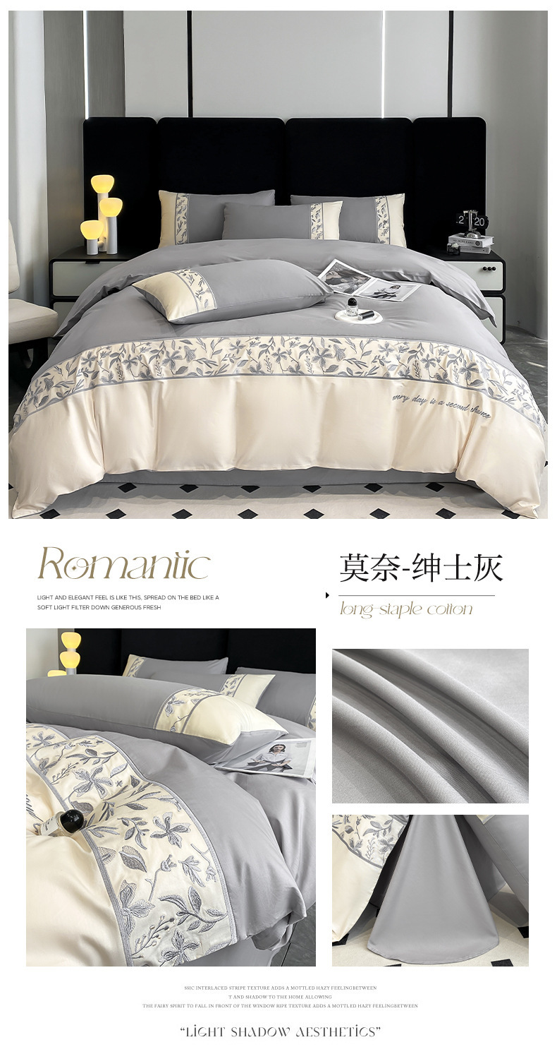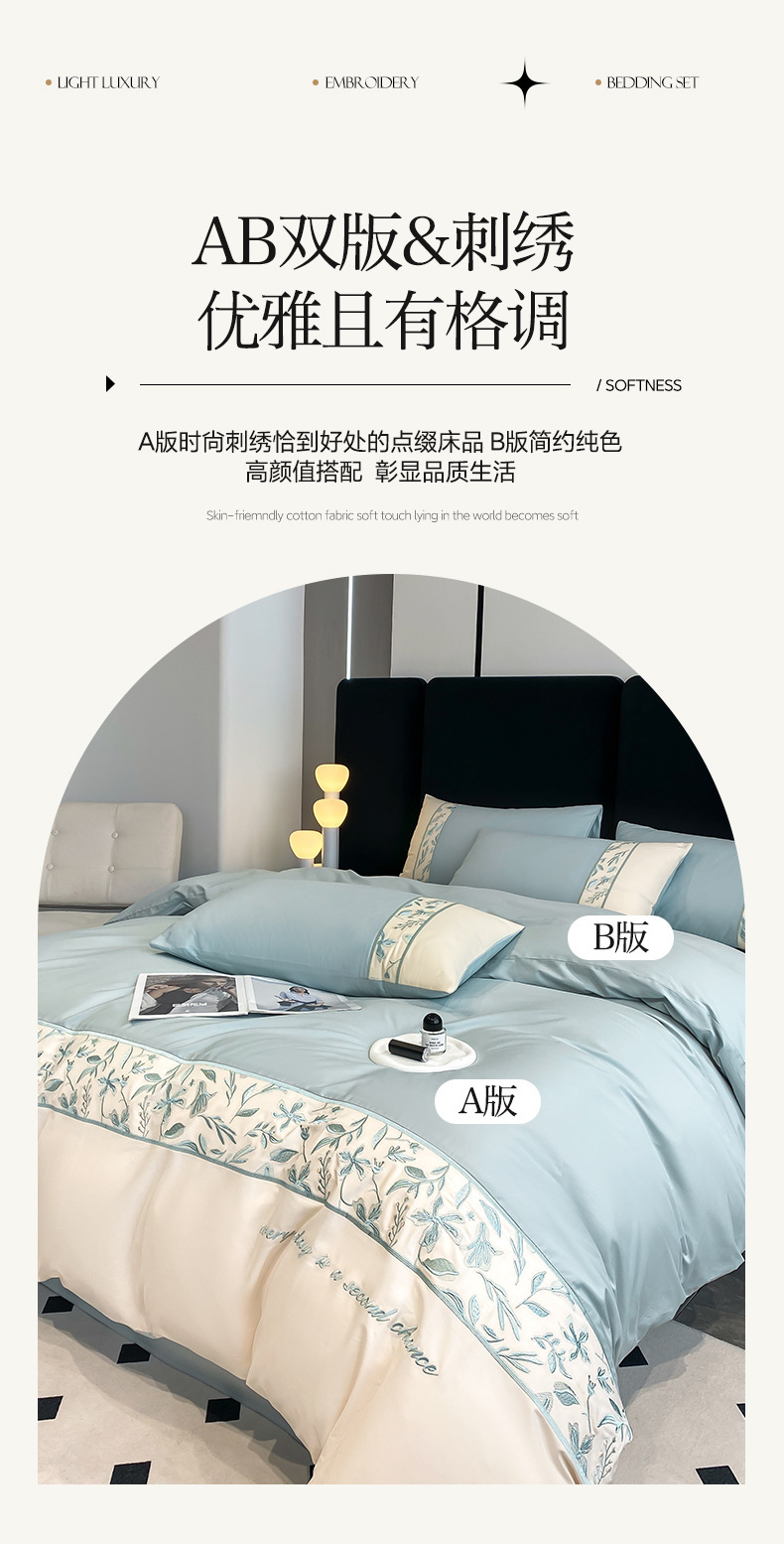 轻奢100支长绒棉四件套高级感纯棉床单被套全棉刺绣四季床上用品4