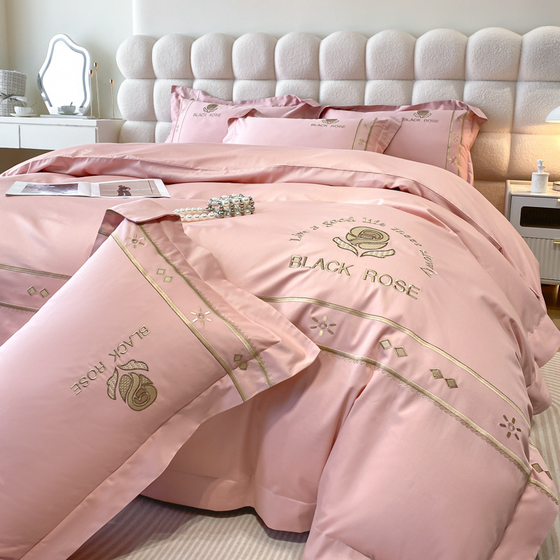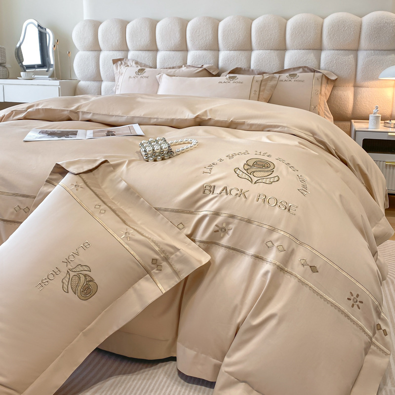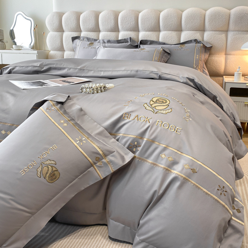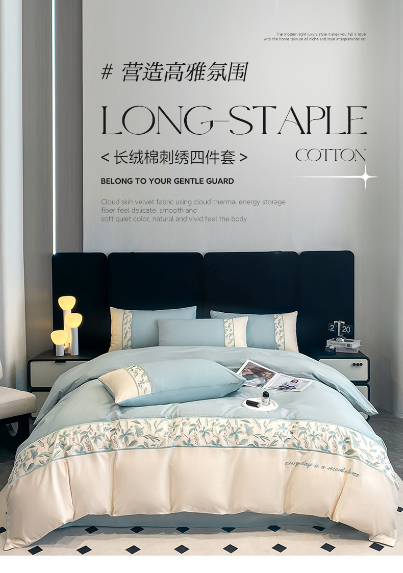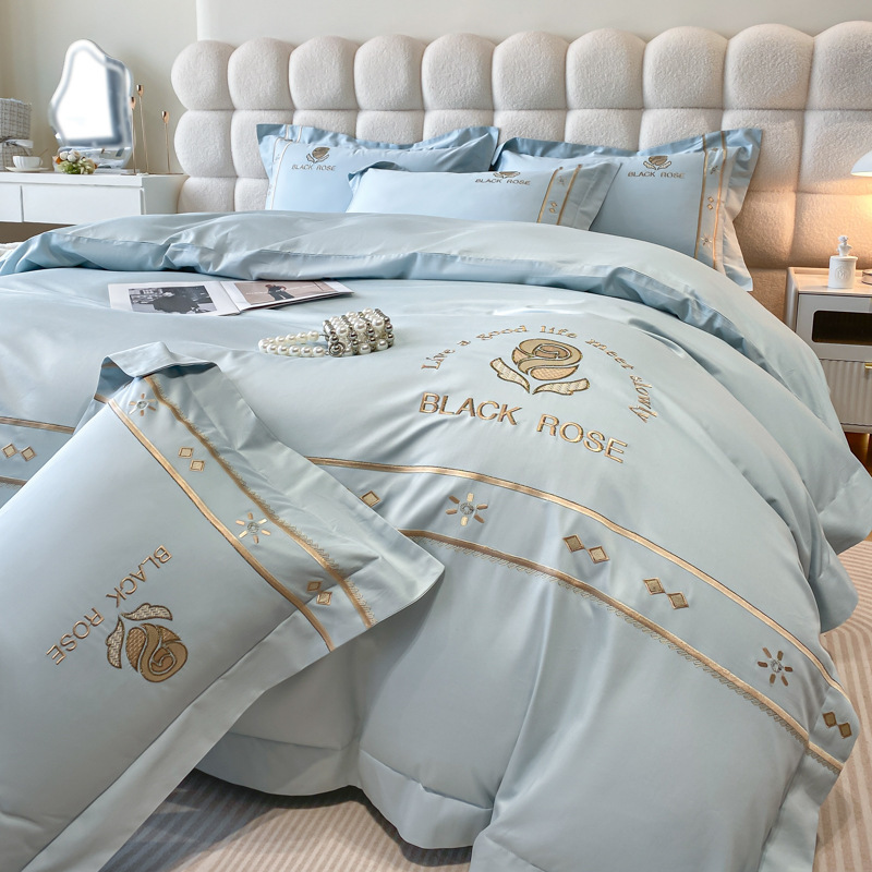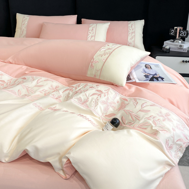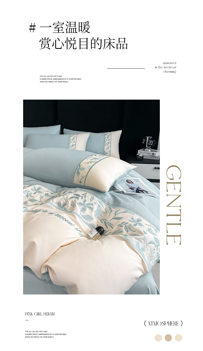 轻奢100支长绒棉四件套高级感纯棉床单被套全棉刺绣四季床上用品4