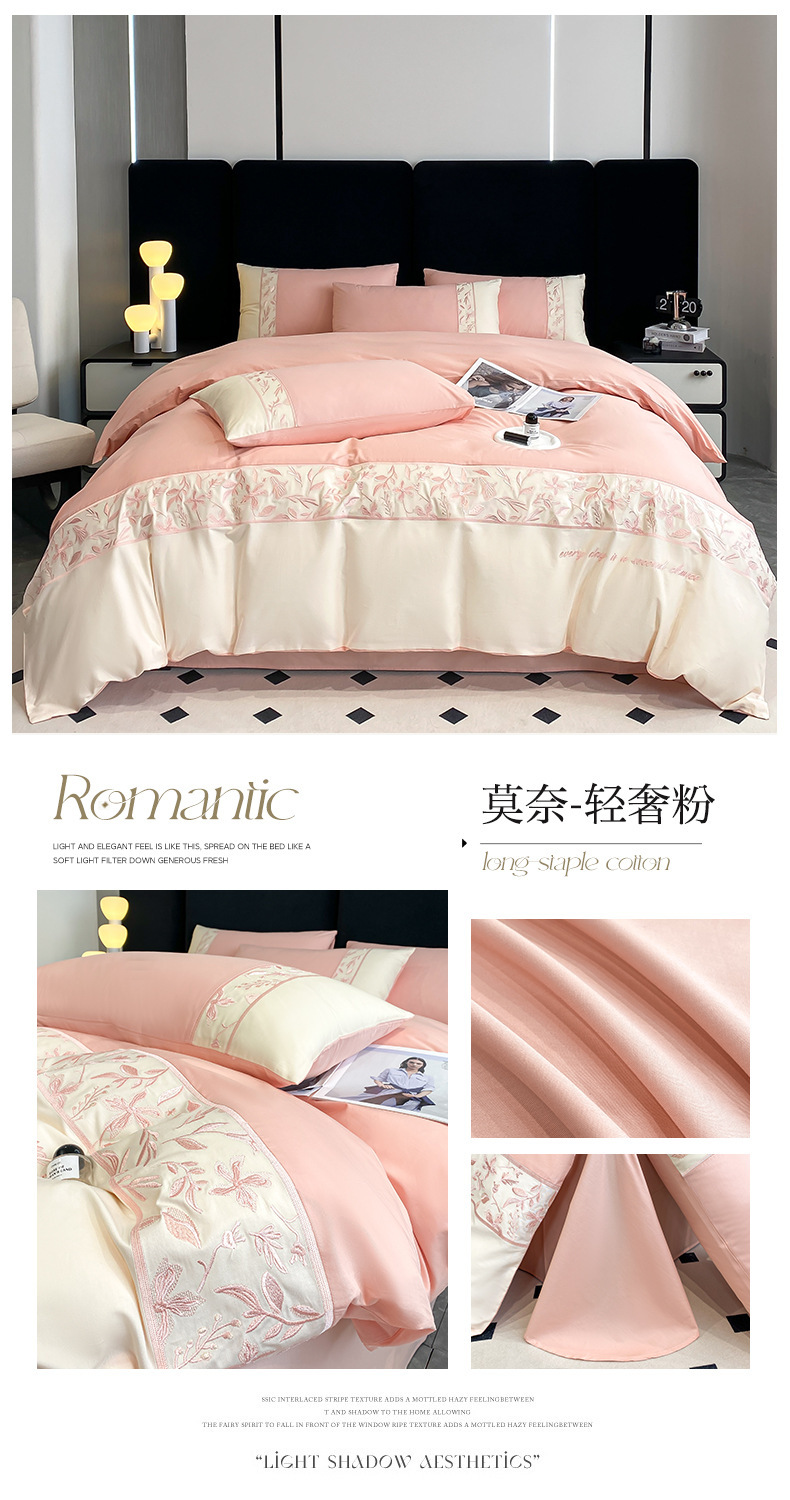 | 1.8m fitted sheet quilt cover plus-sized four-piece set (recommended with 220 * 240cm duvet insert)(1.8m床笠款被套加大四件套(建议搭配220*240cm被芯)) | USD $61.24 | 888 set available |
